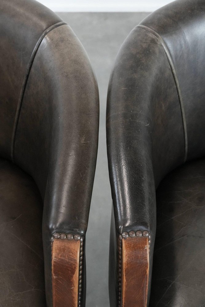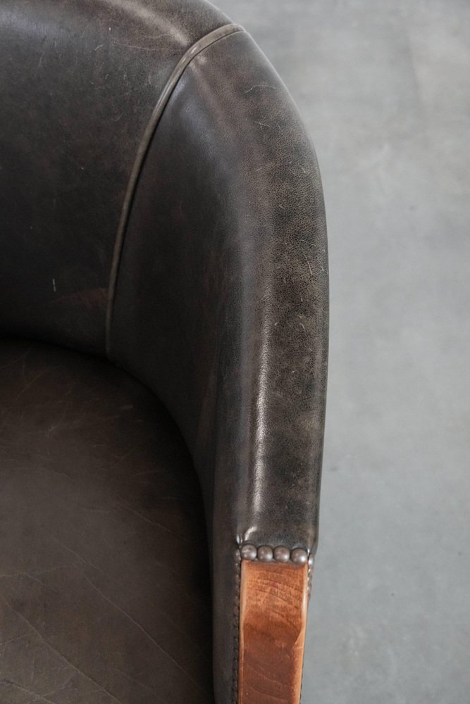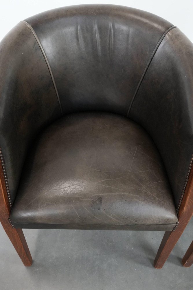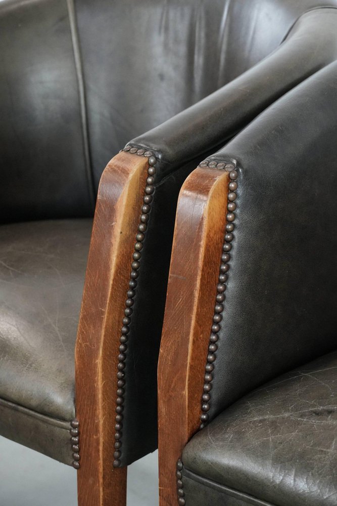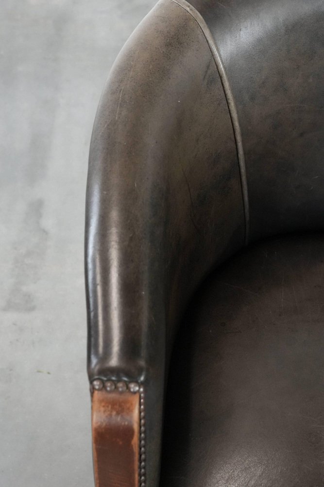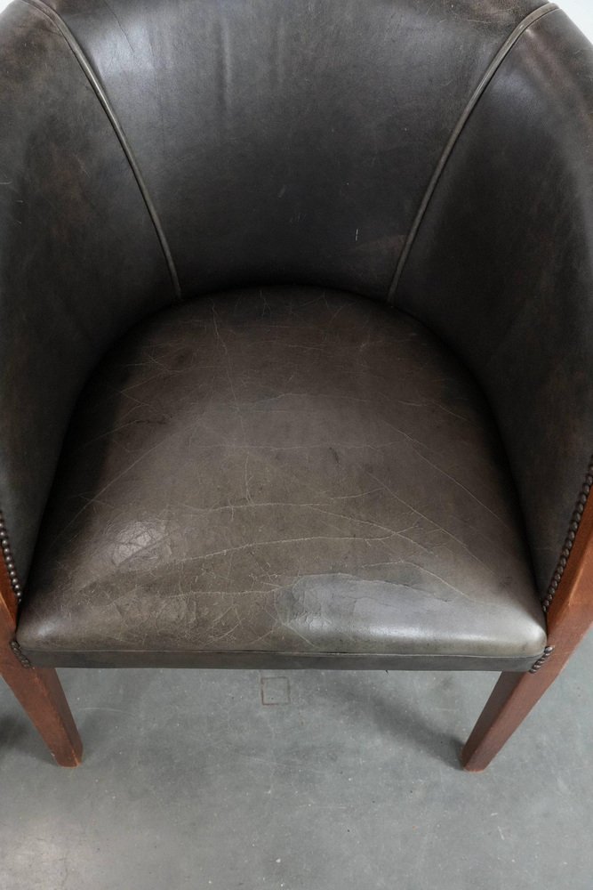 This characterful set of two cowhide tub chairs/side chairs is finished with decorative nails and can easily be placed in both classic and modern interiors. They are perfect not only in a home environment, but also in an office or hospitality setting, for example. They are multifunctional, partly due to their modest size and higher seat height. This makes them suitable as side chairs, office chairs, or dining chairs. Due to responsible use, they have sustained normal wear and tear. Structurally, they are in good condition and ready for immediate use. Where will you place them? Please note: The dimensions stated in our advertisement are the leading dimensions. Photos are part of the . Dimensions: Height: 80 cm, Width: 64 cm, Depth: 65 cm, Seat height: 49 cm, Seat depth: 48 cm