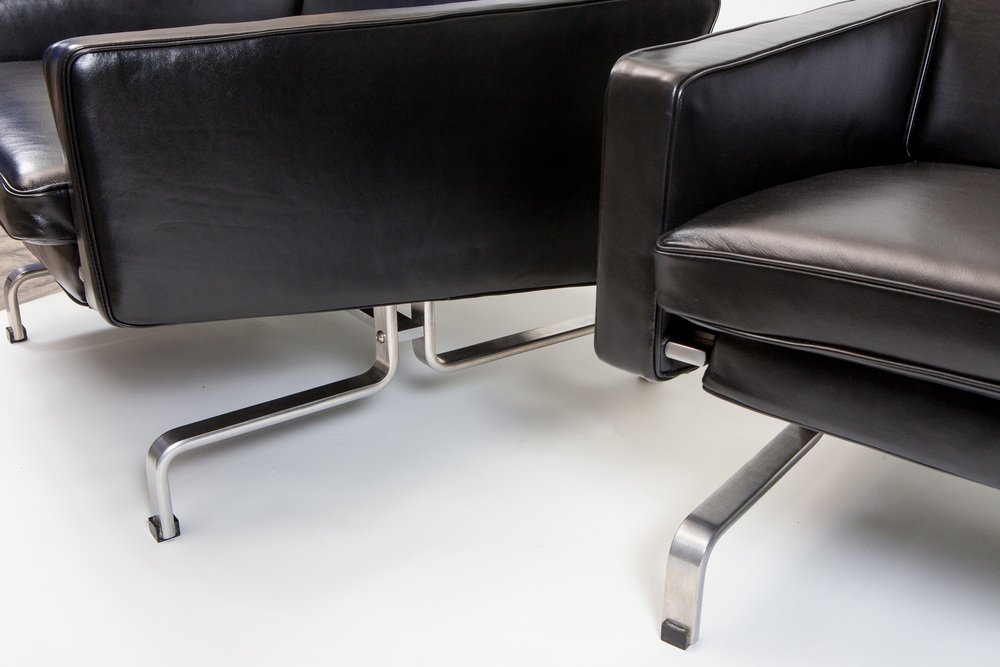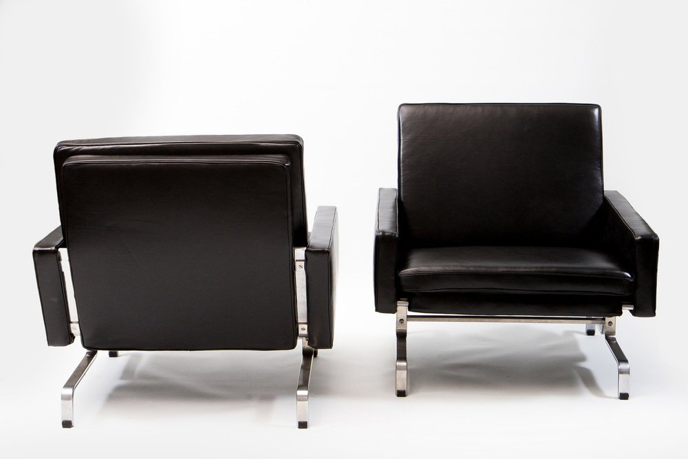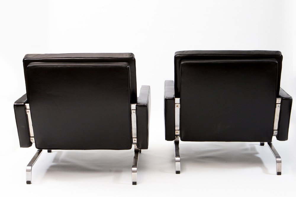 Sedie in pelle nera con struttura in acciaio di Ikea, inizio XXI secolo, set di 2