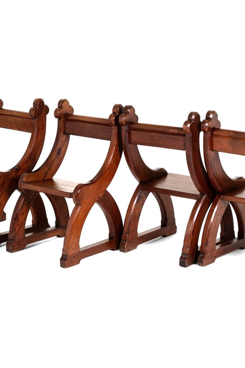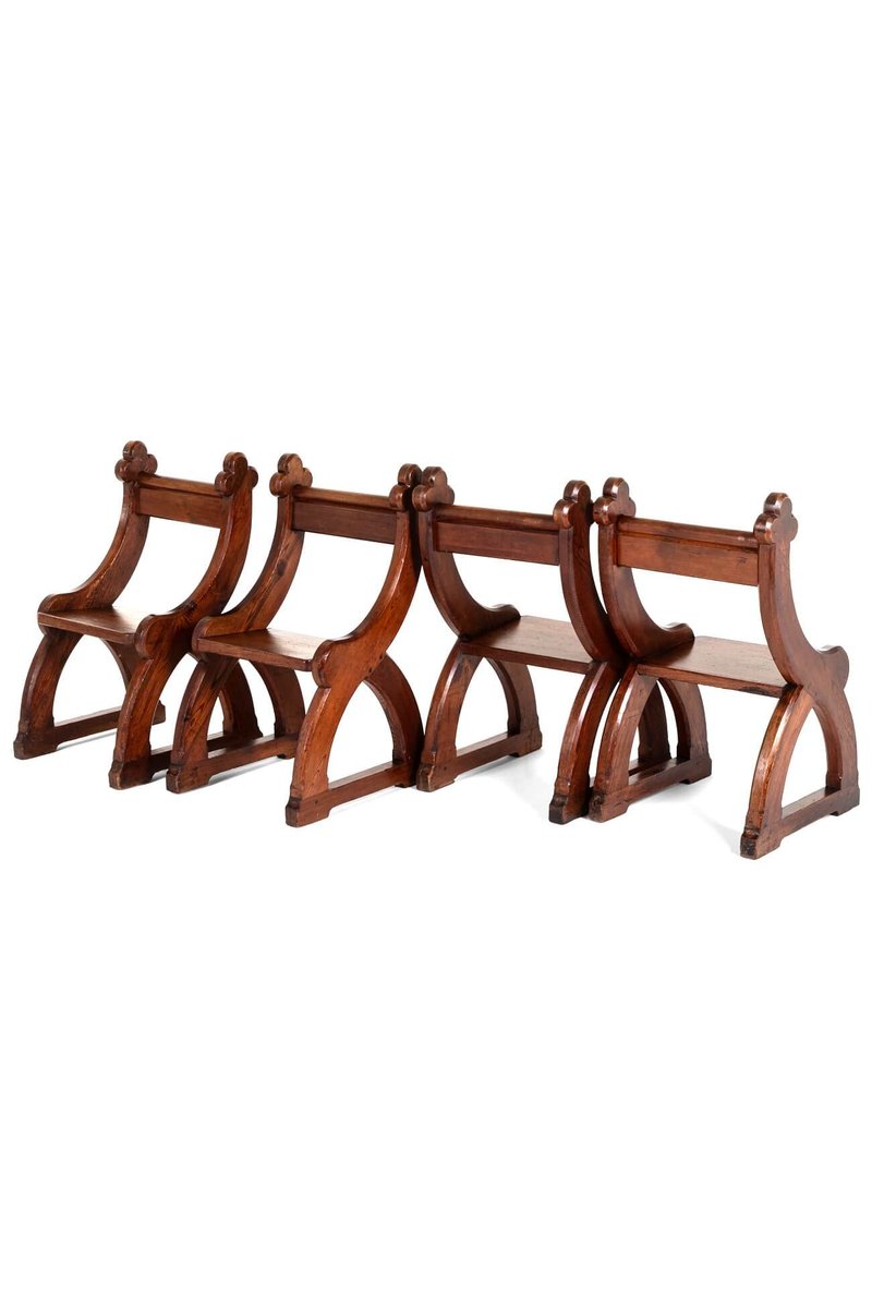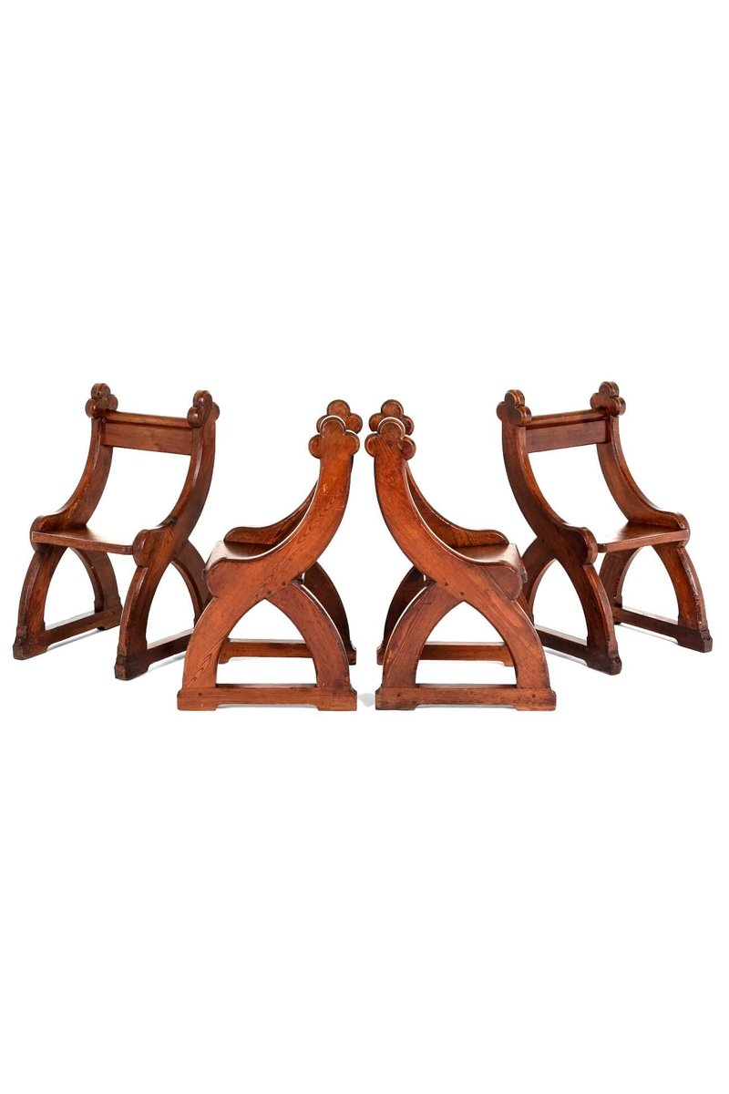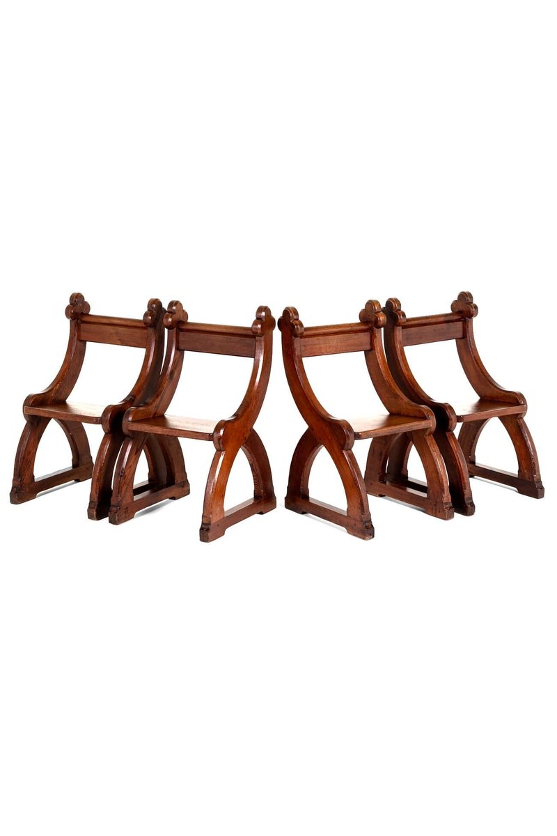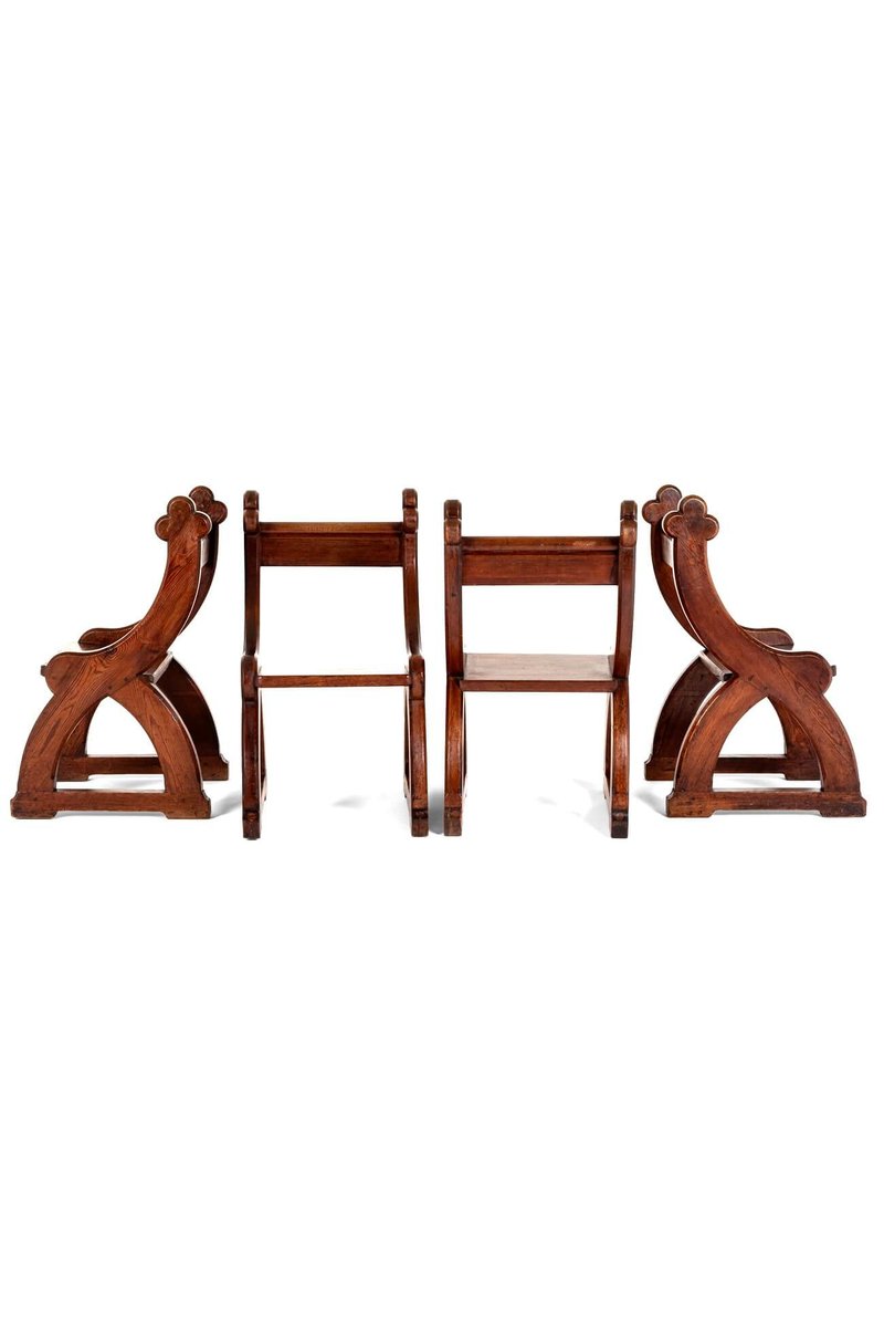 Poltrone revival in stile gotico, set di 4