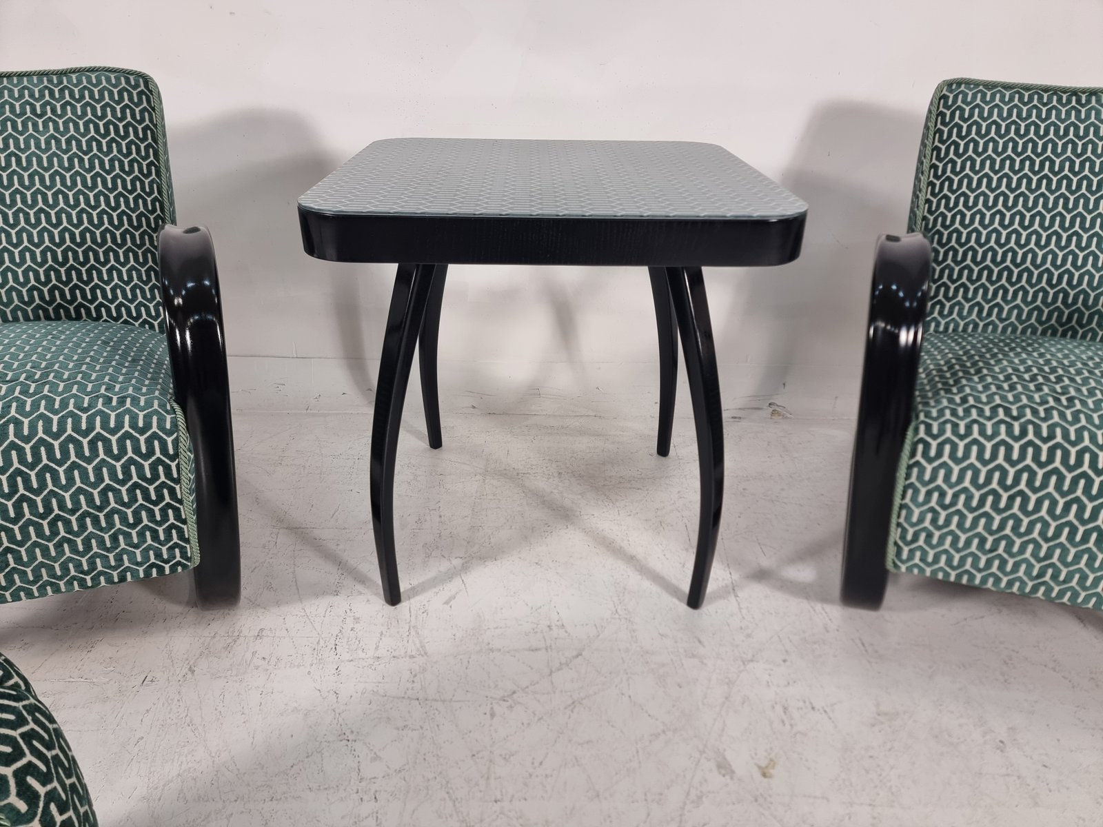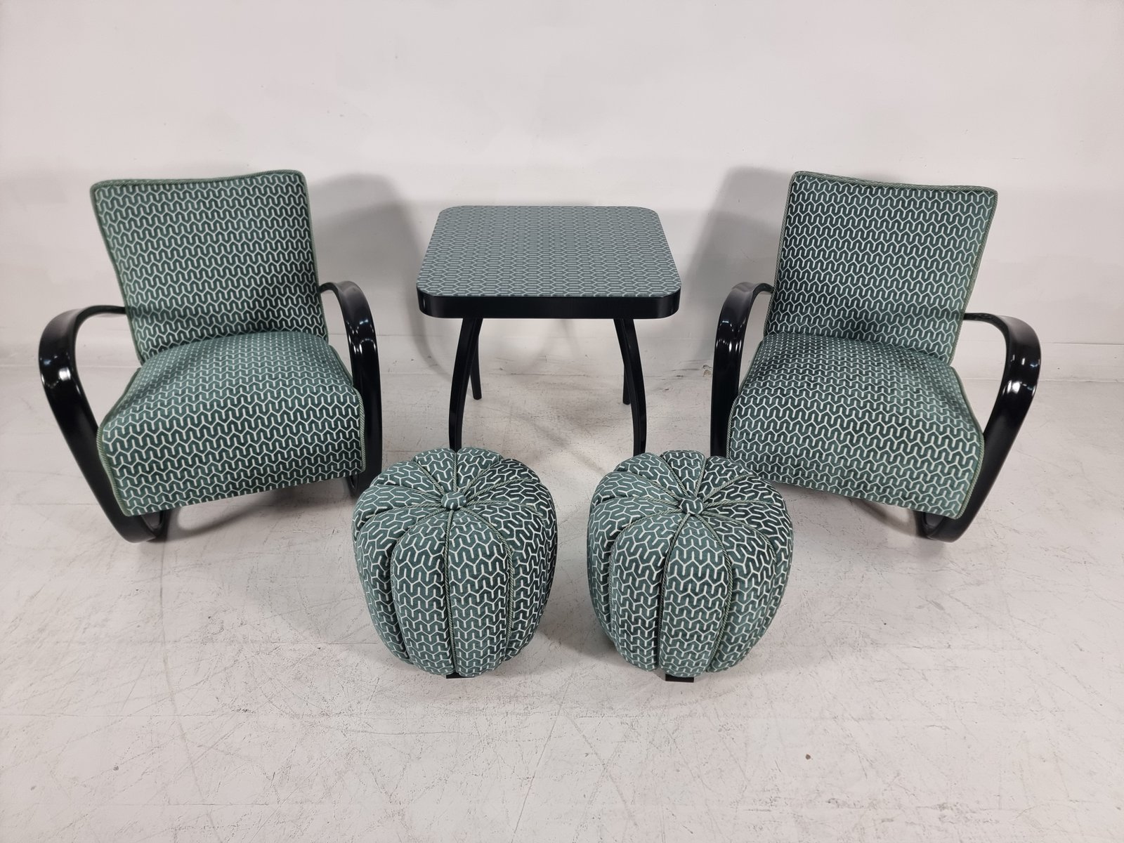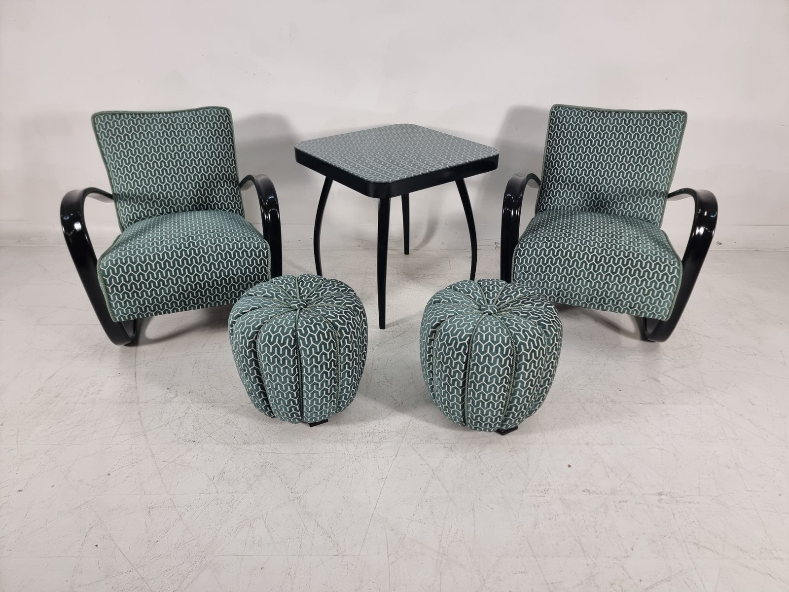 Altri design di Halabala includono la poltrona H-269 (all'inizio degli anni '30) - probabilmente il più famoso design ceco, facile da riconoscere per i suoi esagerati braccioli curvi; il tavolino da caffè a ragno H-370 (anni '30); e la poltrona regolabile H-70 (anni '30), solo per nominarne alcuni. Come i suoi contemporanei scandinavi Alvar Aalto (1898-1976) e Bruno Mathsson (1907-1988), Halabala utilizza legno piegato nella maggior parte dei suoi design di sedie.