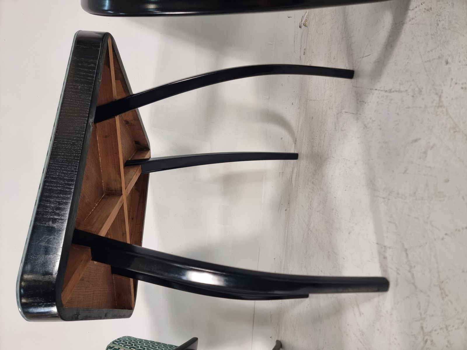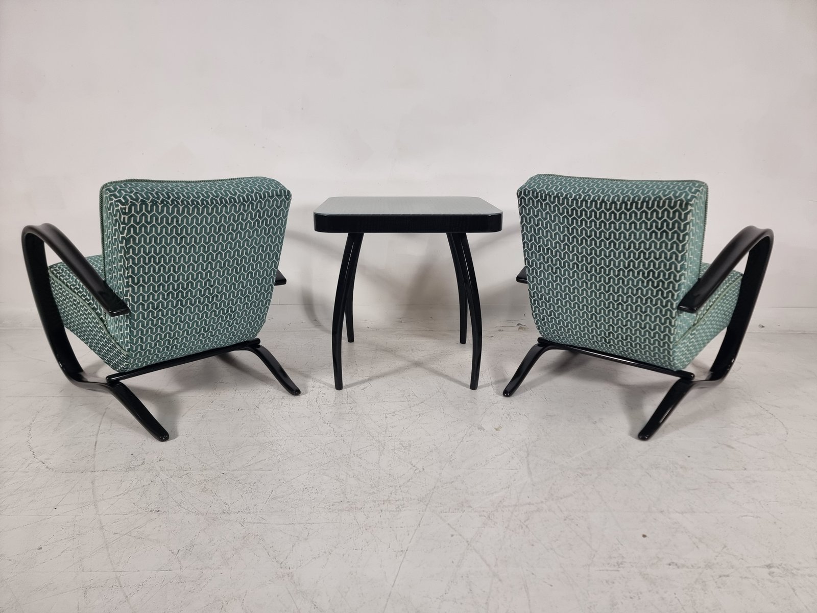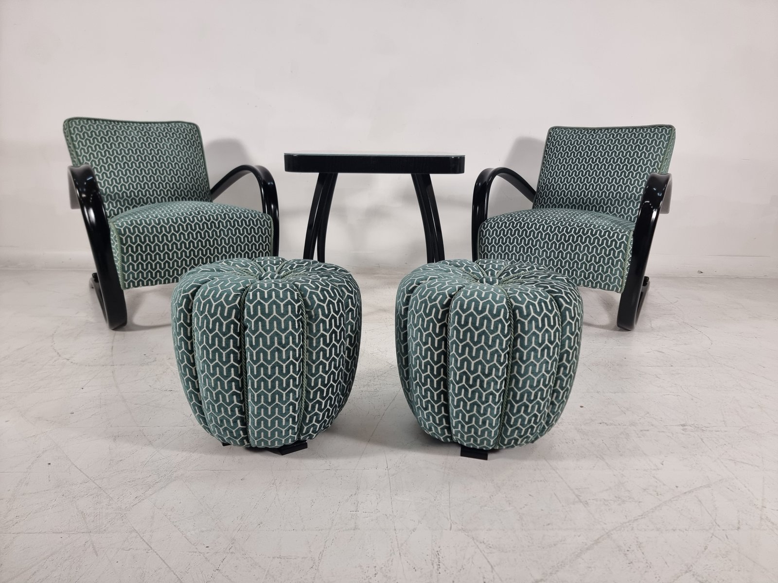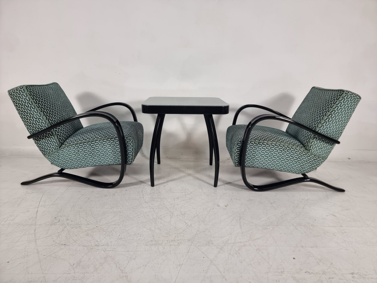 Altri design di Halabala includono la poltrona H-269 (all'inizio degli anni '30) - probabilmente il più famoso design ceco, facile da riconoscere per i suoi esagerati braccioli curvi; il tavolino da caffè a ragno H-370 (anni '30); e la poltrona regolabile H-70 (anni '30), solo per nominarne alcuni. Come i suoi contemporanei scandinavi Alvar Aalto (1898-1976) e Bruno Mathsson (1907-1988), Halabala utilizza legno piegato nella maggior parte dei suoi design di sedie.