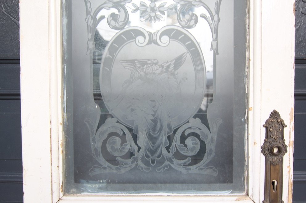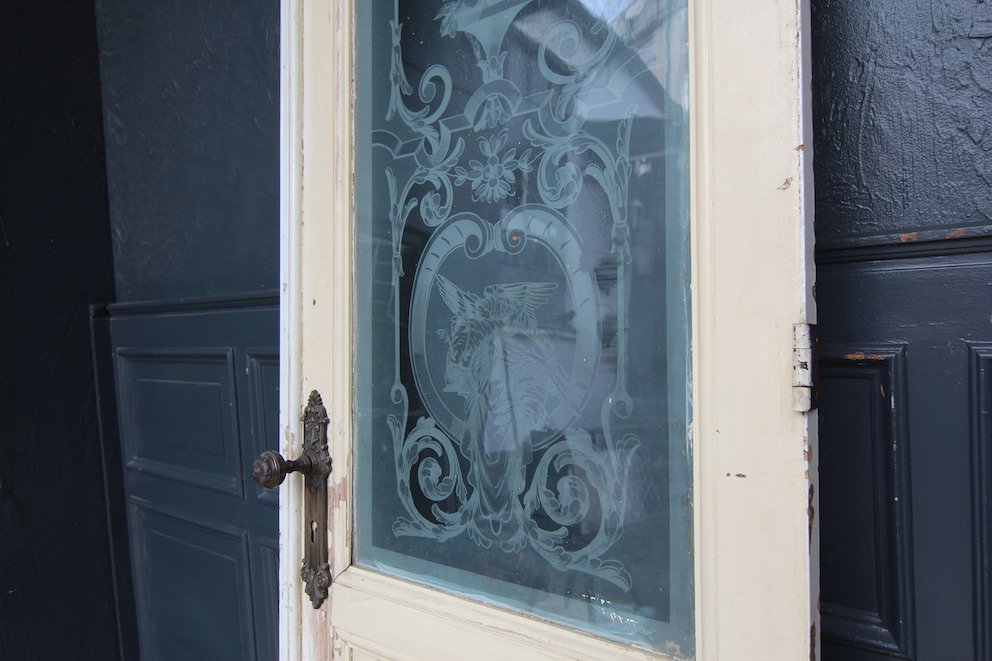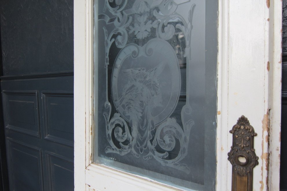 Porta Art Nouveau con vetro inciso, fine XIX secolo