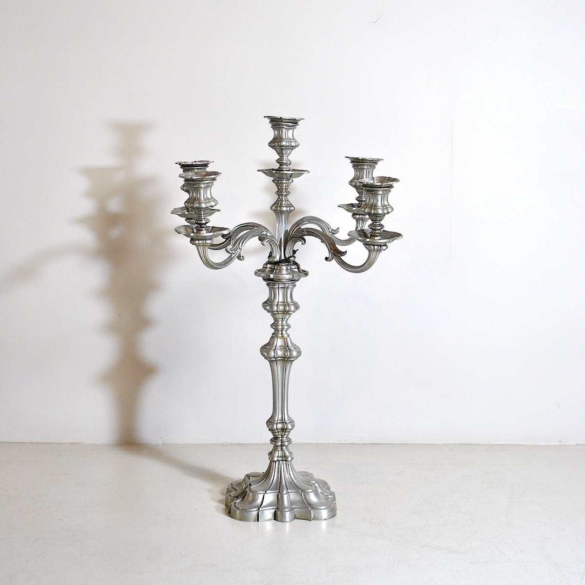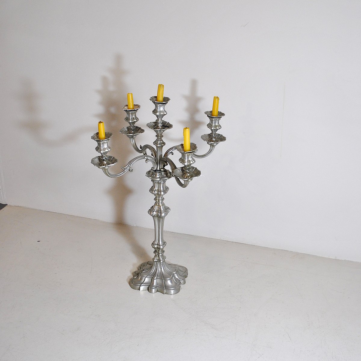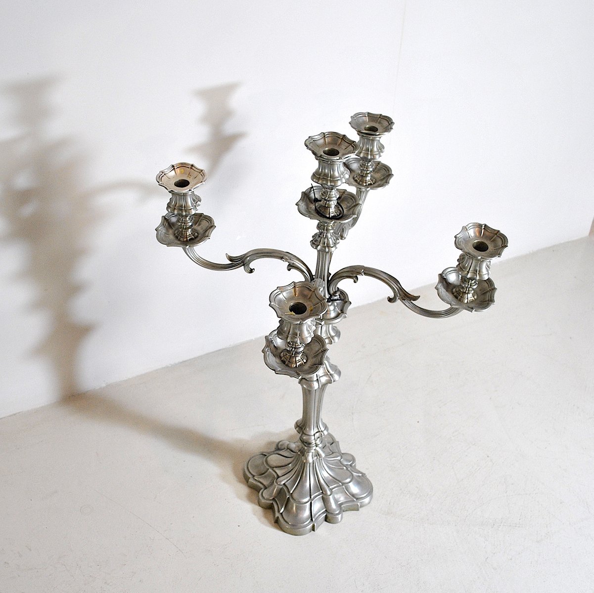 Portacandela in peltro a 5 braccia, anni '40