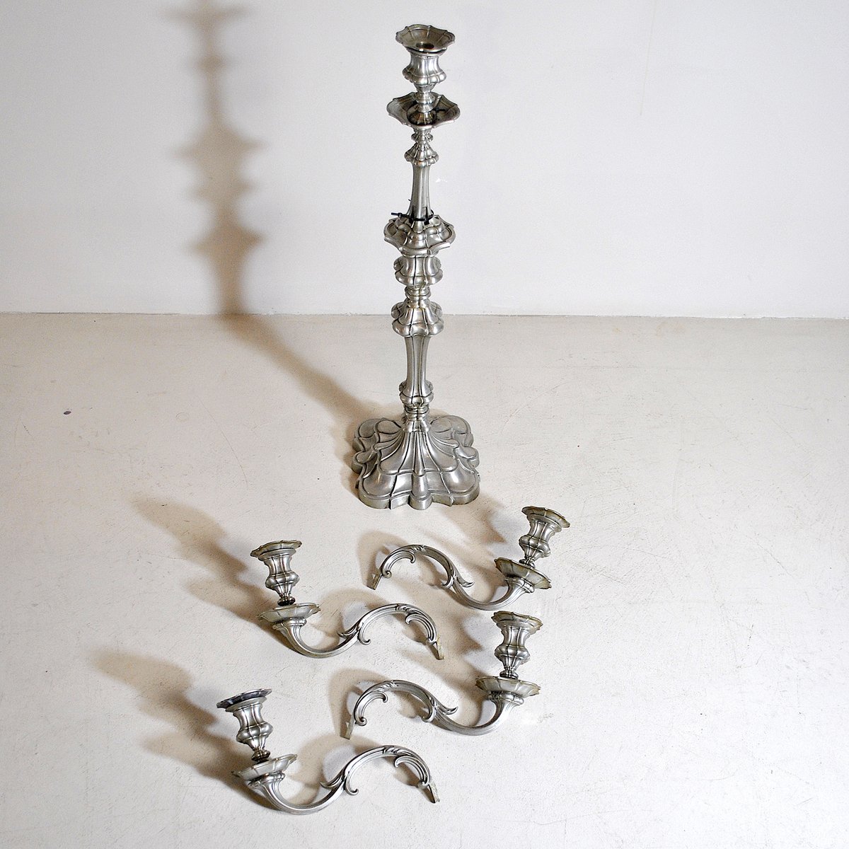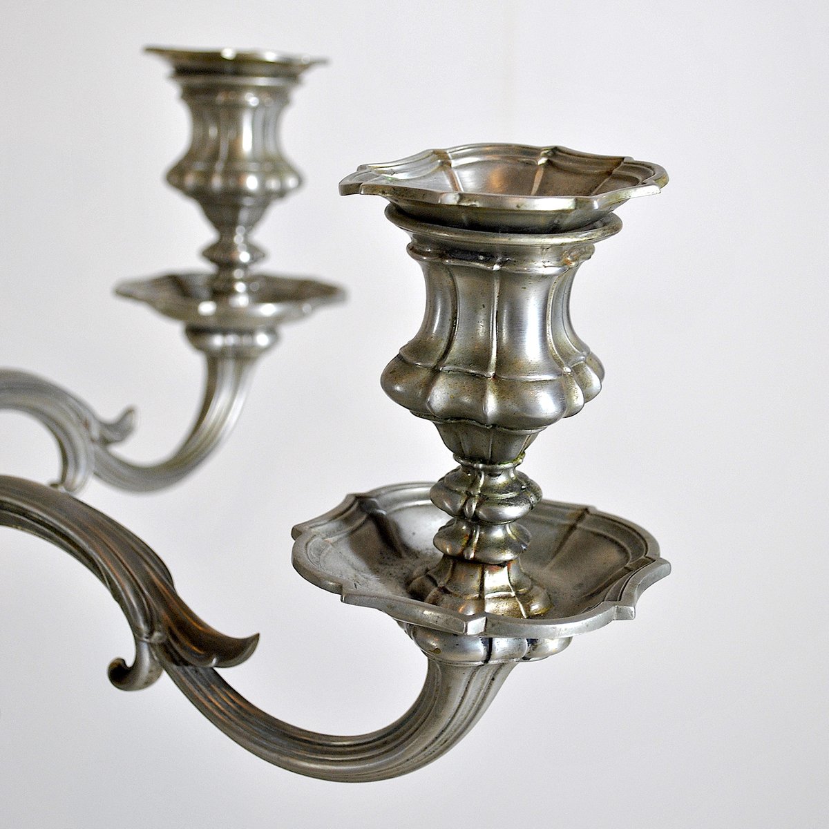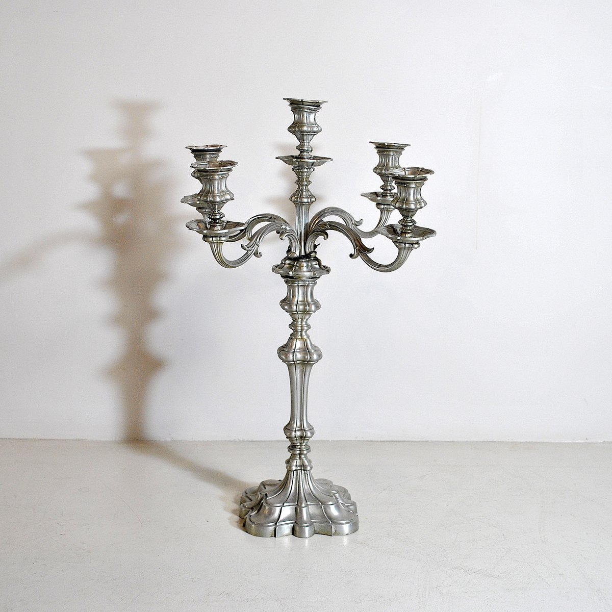 Portacandela in peltro a 5 braccia, anni '40