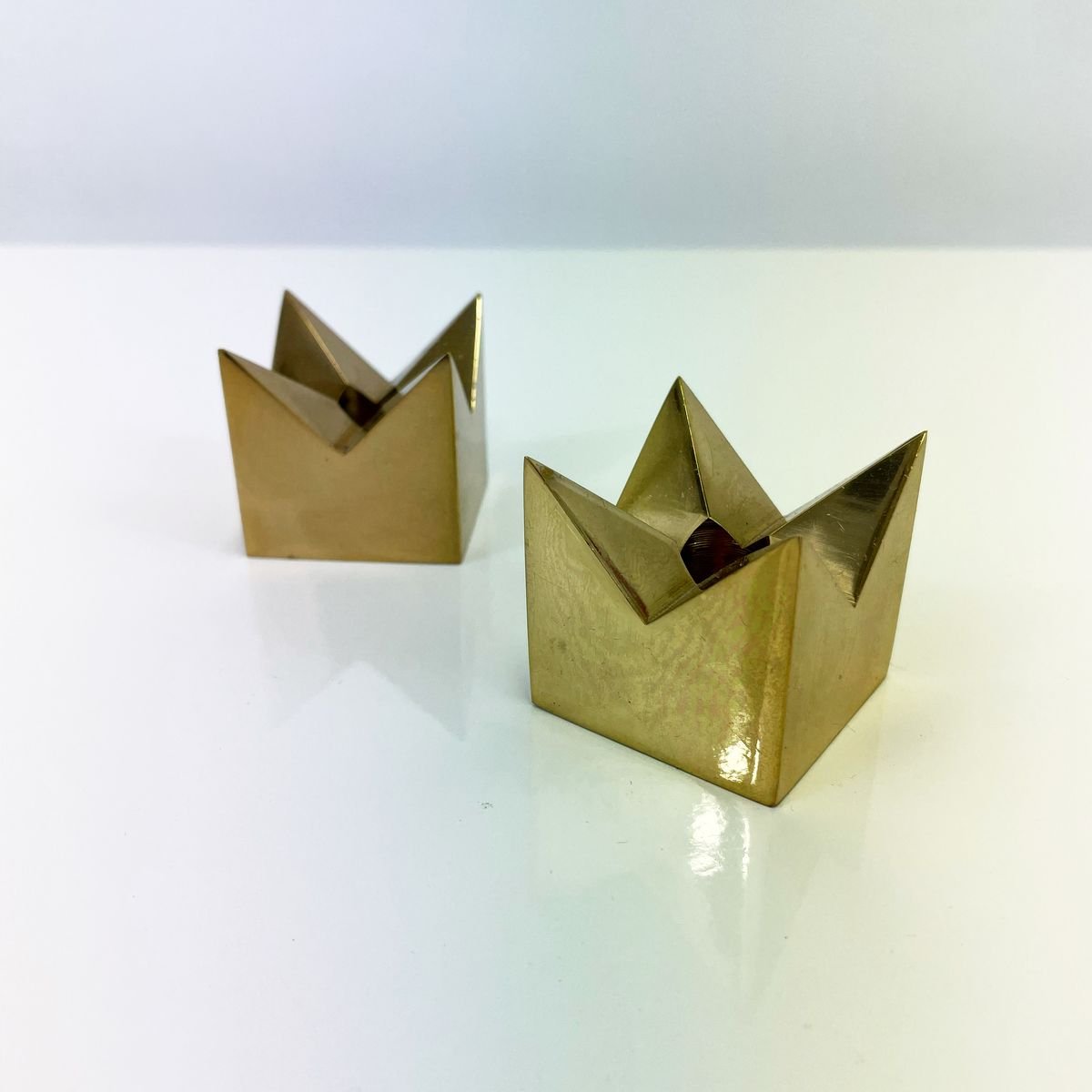 Portacandela Krona in ottone di Pierre Forssell per Skultuna, anni '60, set di 2
