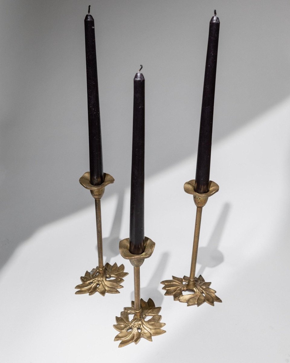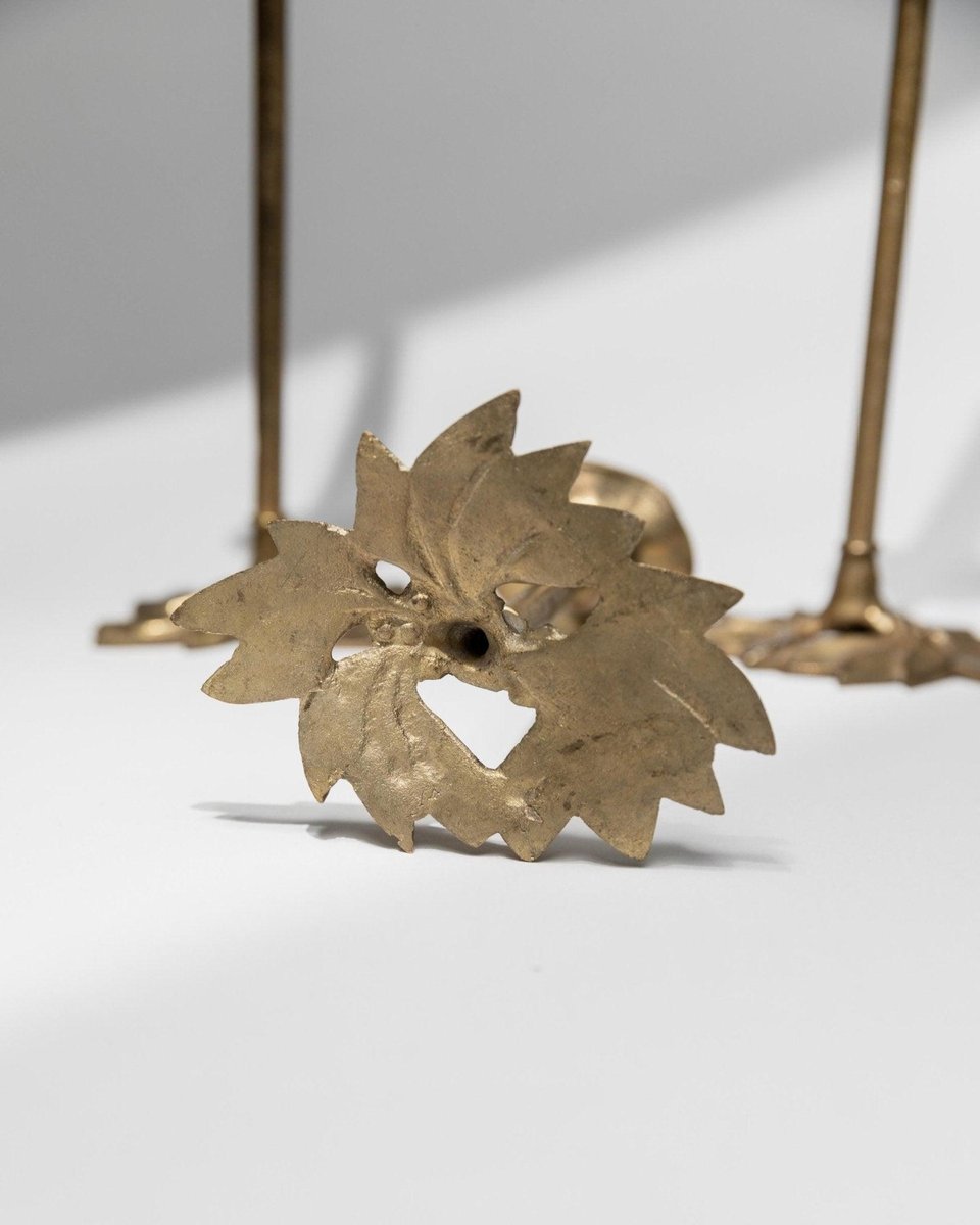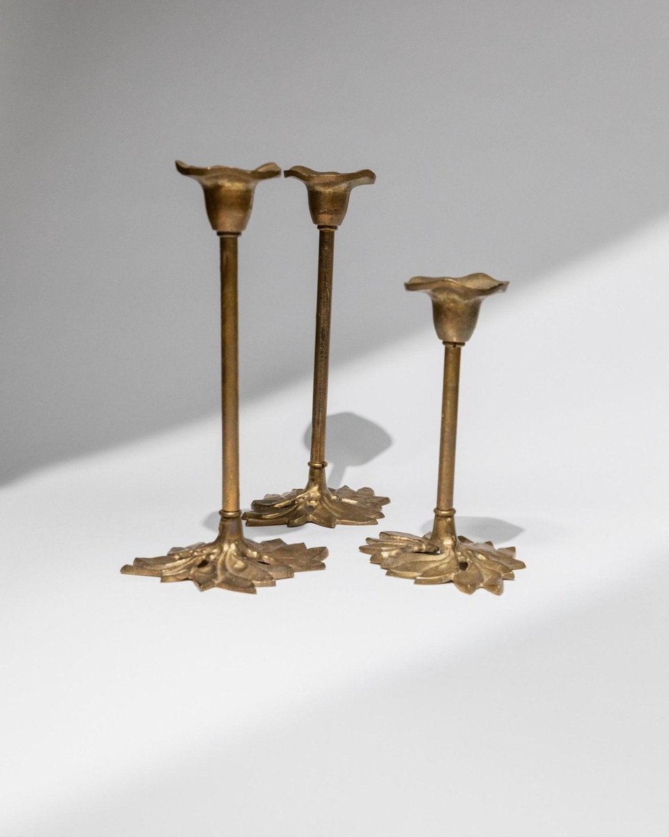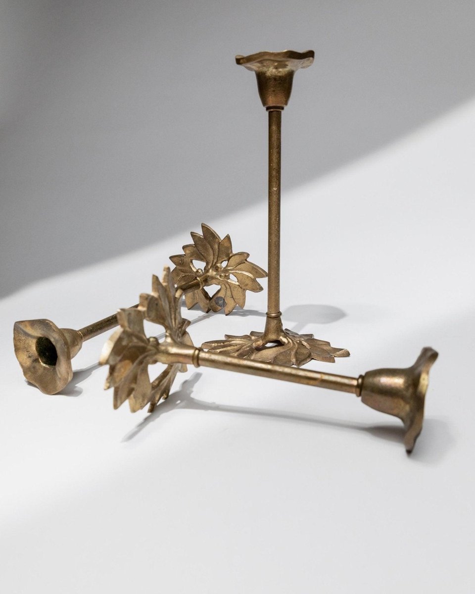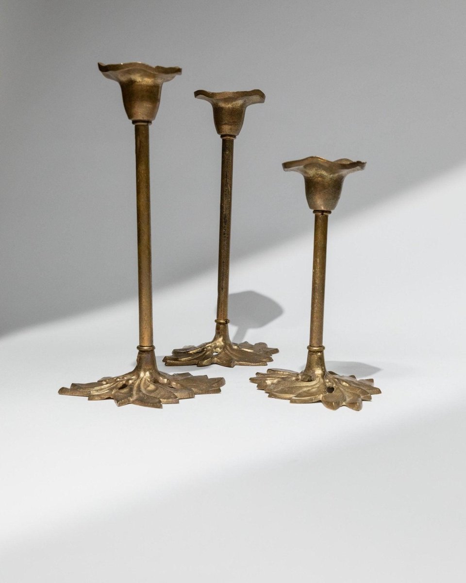 Portacandele Art Nouveau a forma di foglia in ottone, Italia, anni '40, set di 3