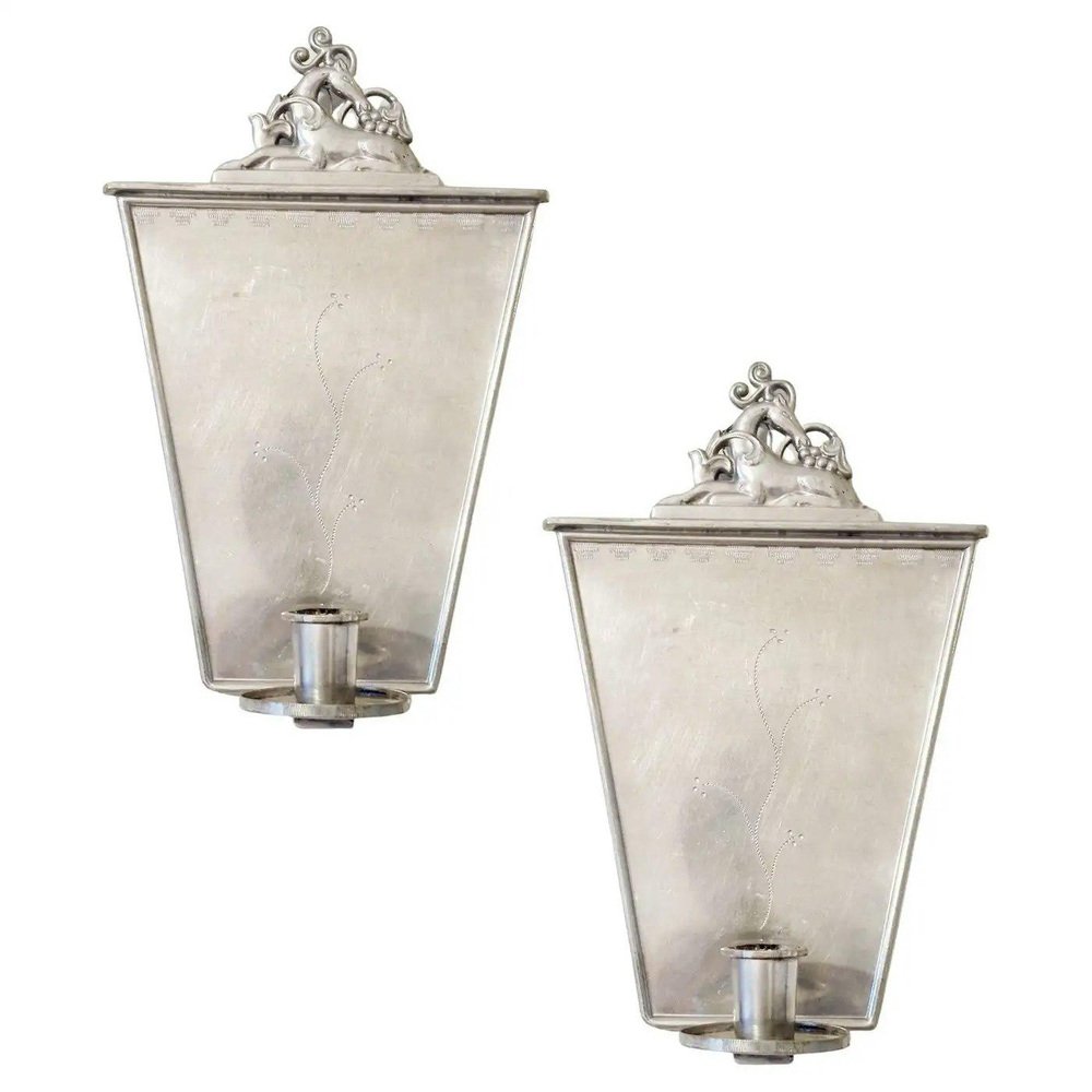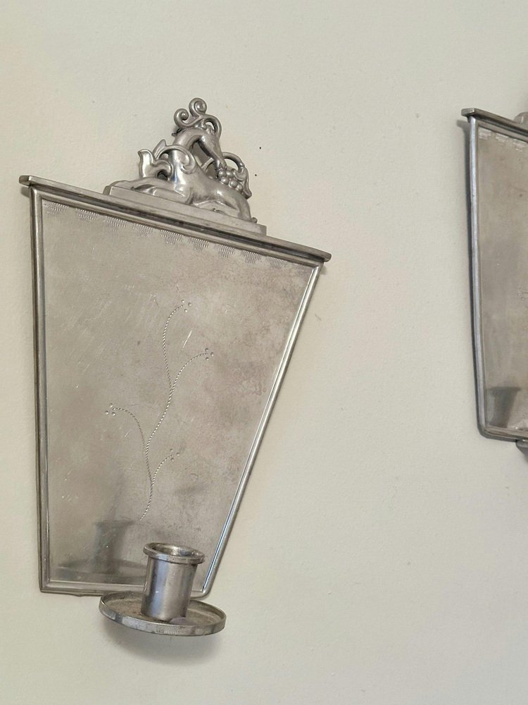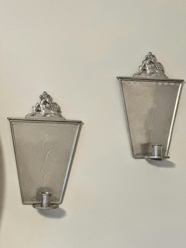 Portacandele Grace in peltro di CG Hallberg, Svezia, anni '20, set di 2