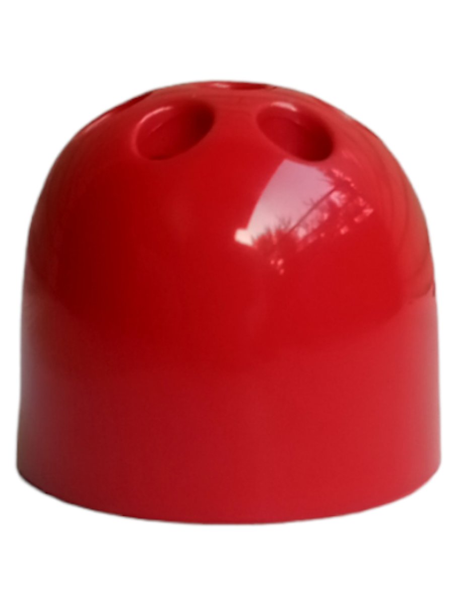 Realizzato in plastica rossa lucida, questo accessorio da scrivania si distingue per la sua estetica futuristica e per la sua influenza sul design italiano del Mid-Century Modern. La sua forma ergonomica e il colore vivace lo rendono un oggetto decorativo perfetto per le scrivanie in stile Pop Art, minimalista o autenticamente vintage.
