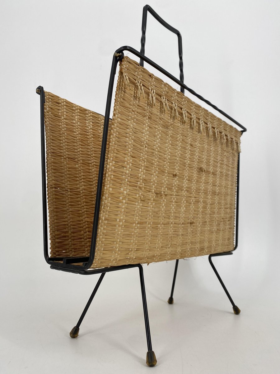 Portariviste Mid-Century moderno con elementi in vimini, Germania, anni '50