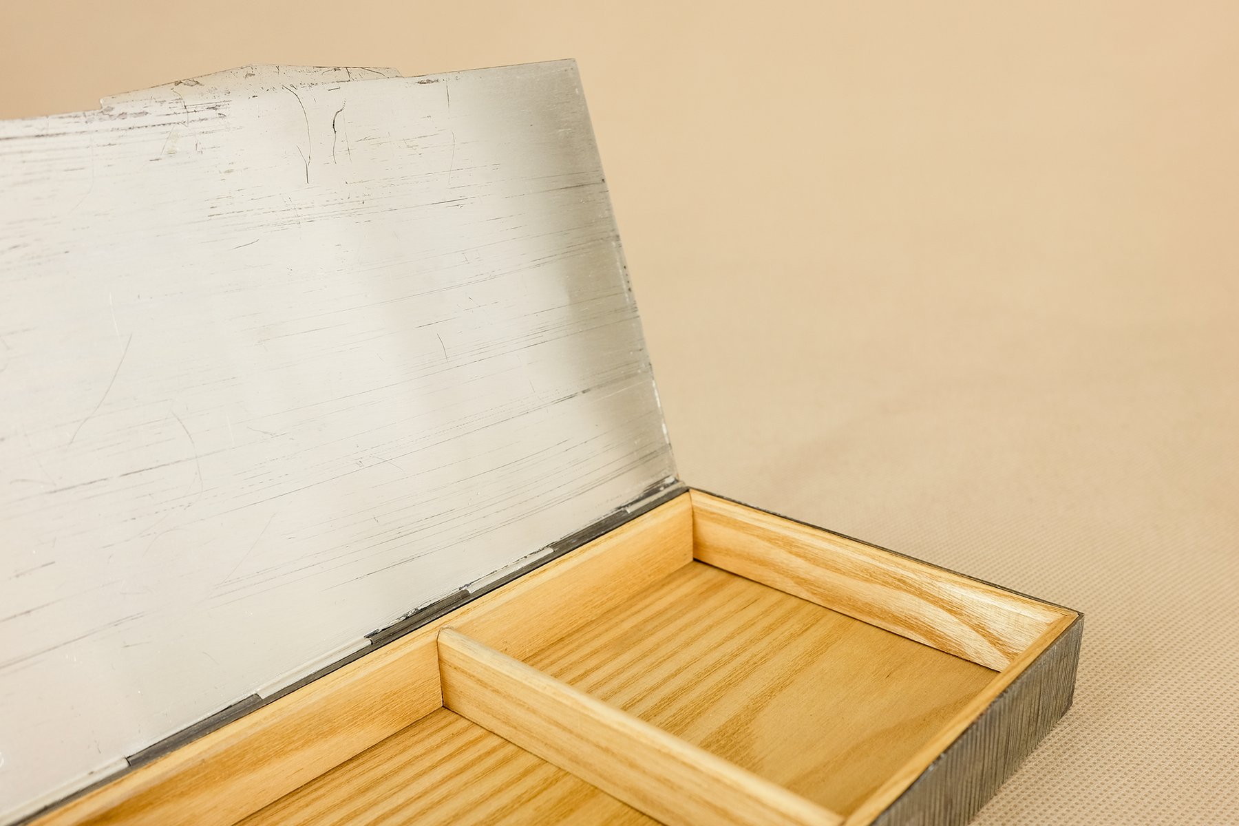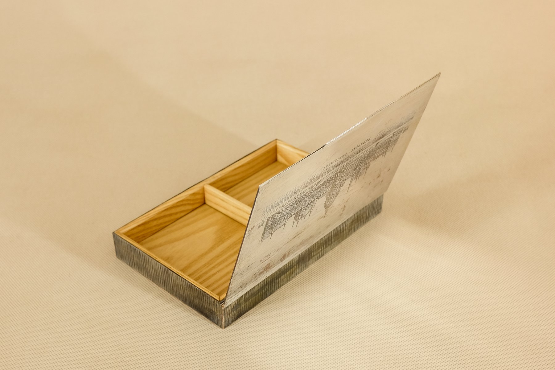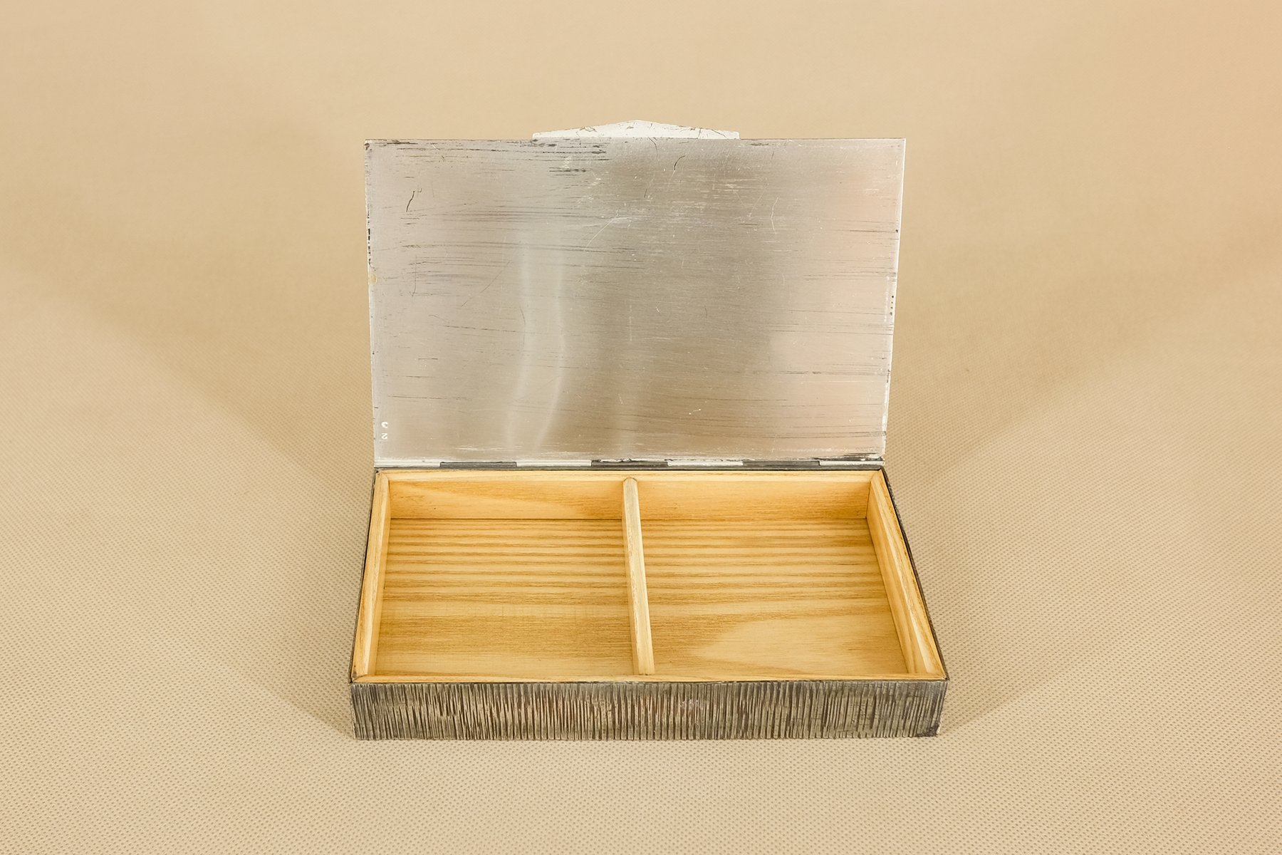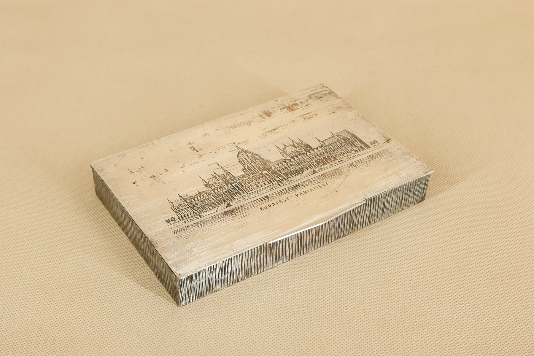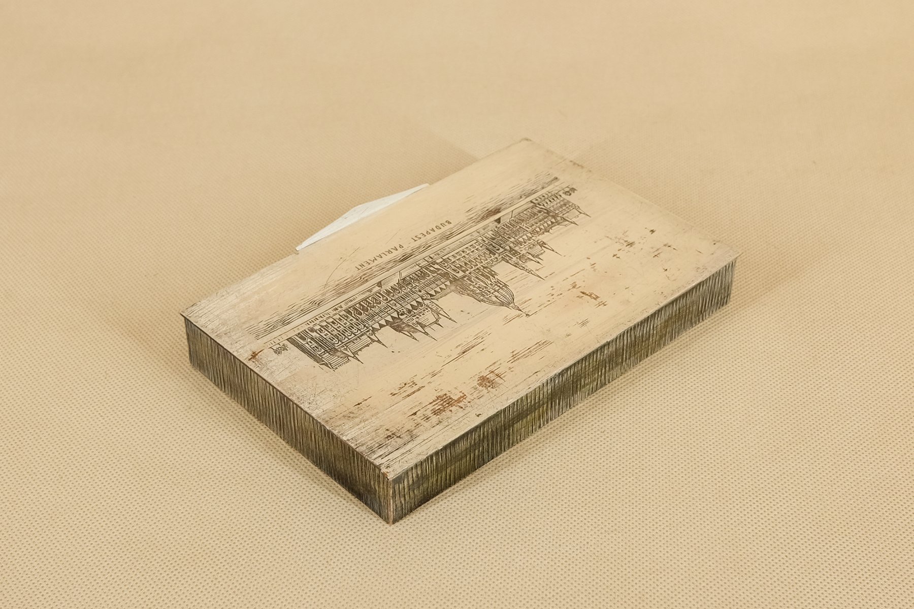 Portasigarette Mid-Century in metallo e legno di Budapest Parliament