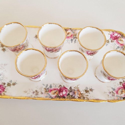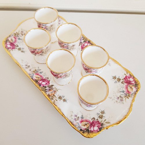 Portauovo vintage e sottopiatto Queen Anne, Inghilterra