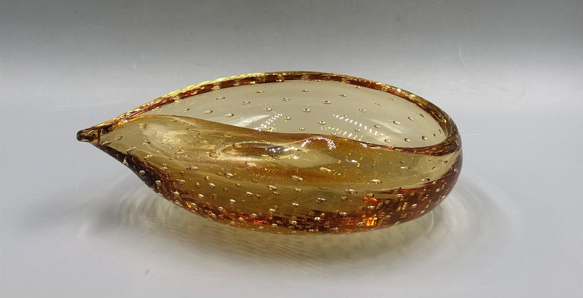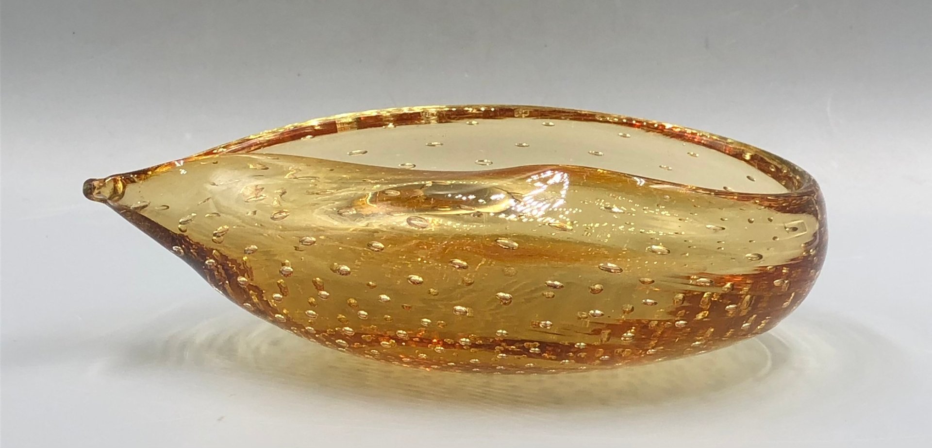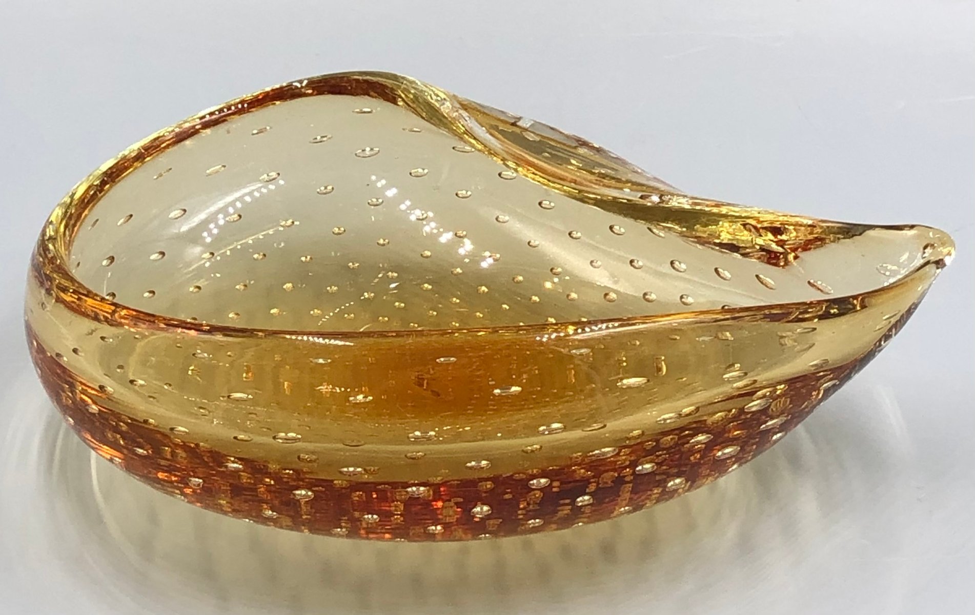 Un eccezionale oggetto da collezione che può essere utilizzato sia come accento decorativo che come posacenere funzionale, ideale per gli amanti del vetro di Murano e del design di metà secolo.