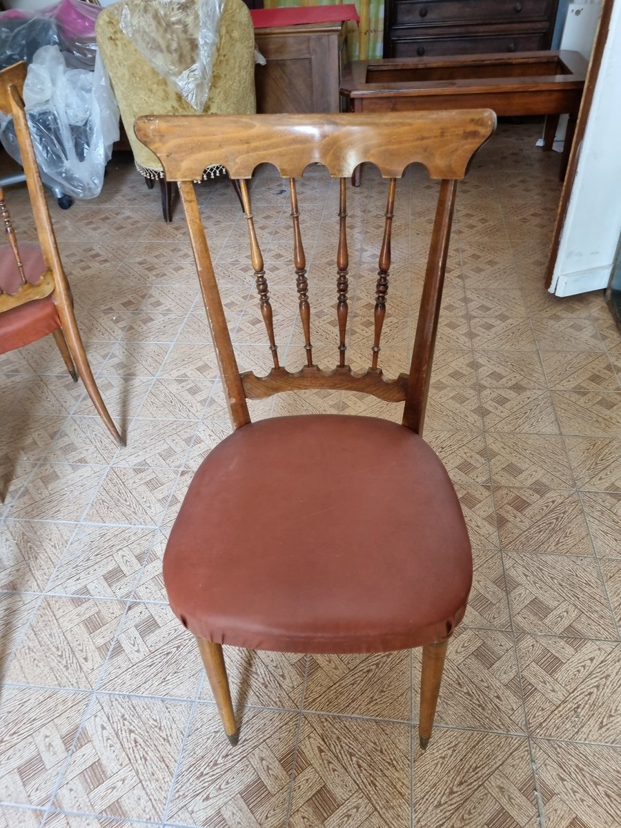 Quattro sedie in quercia con seduta in similpelle, 1952, set di 4