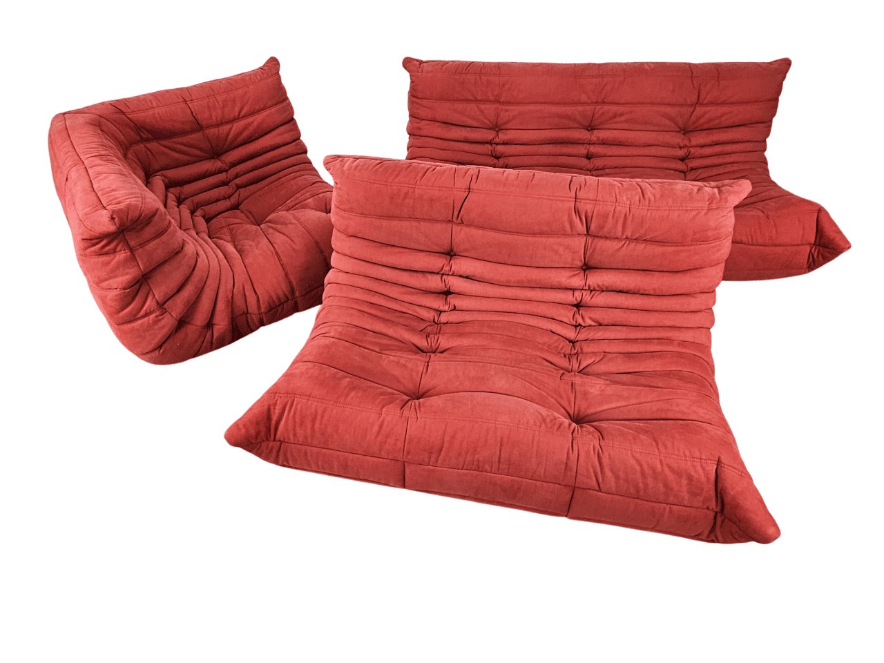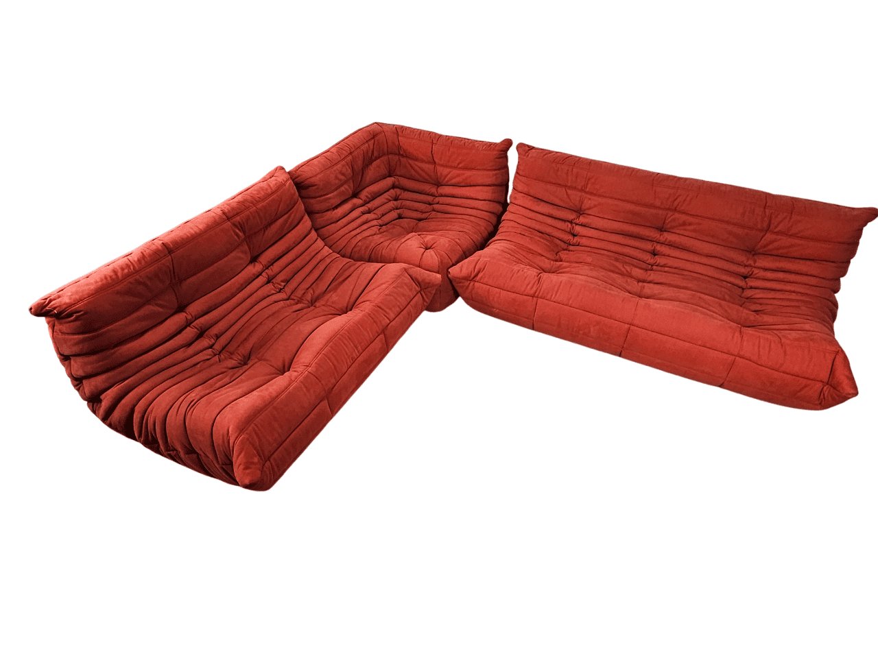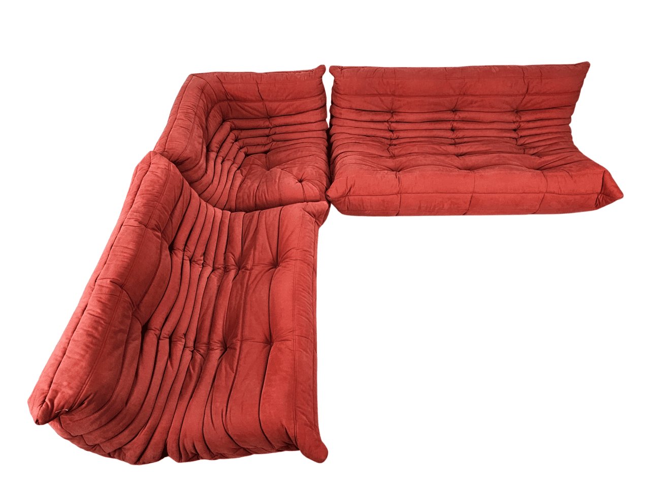Divano modulare Togo ad angolo rosso in tessuto di Michel Ducaroy per Ligne Roset, 1973, set di 3