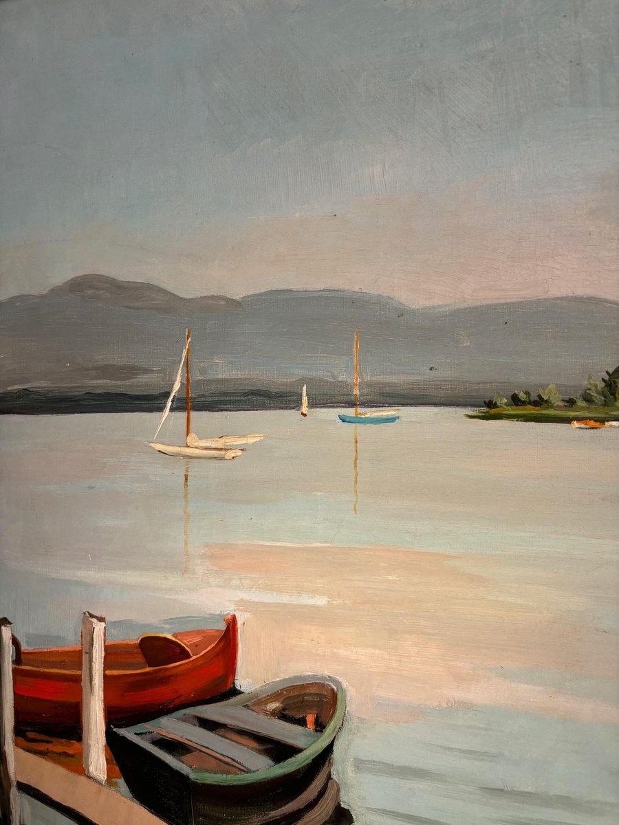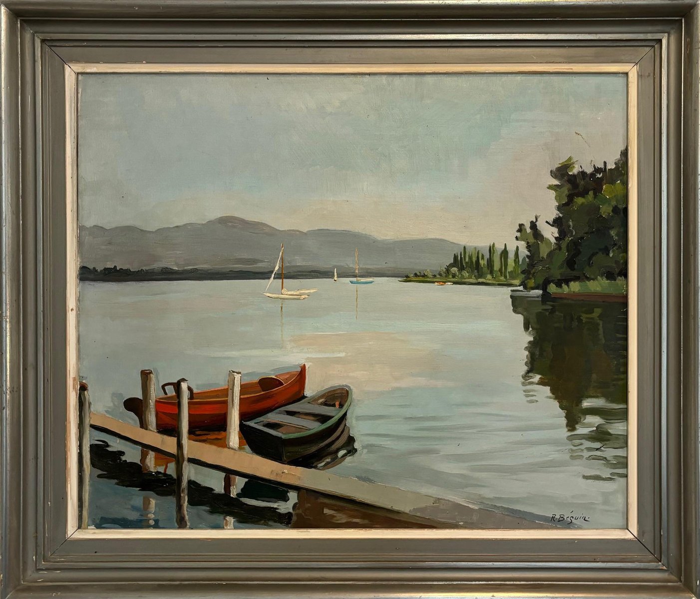 René Beguin, Barche sul lago Leman, Olio su tela