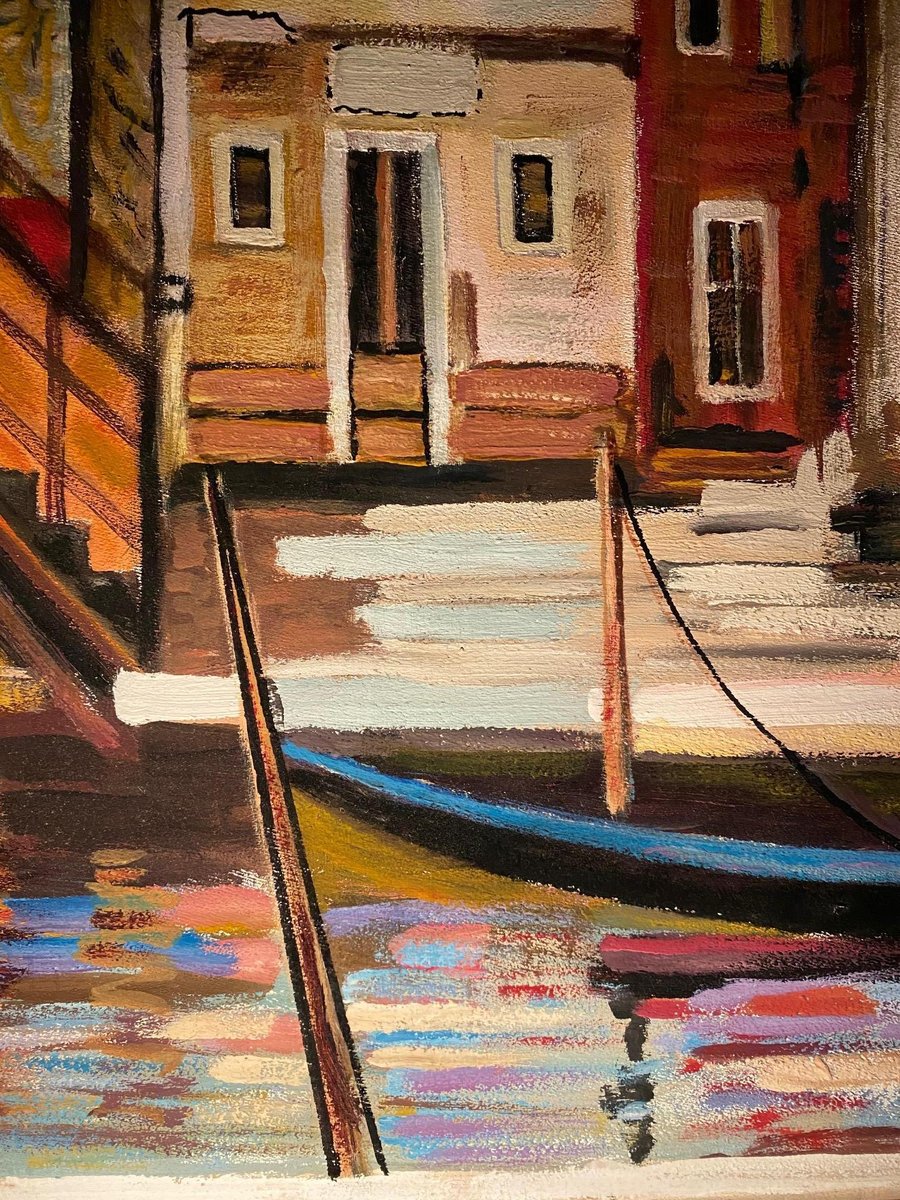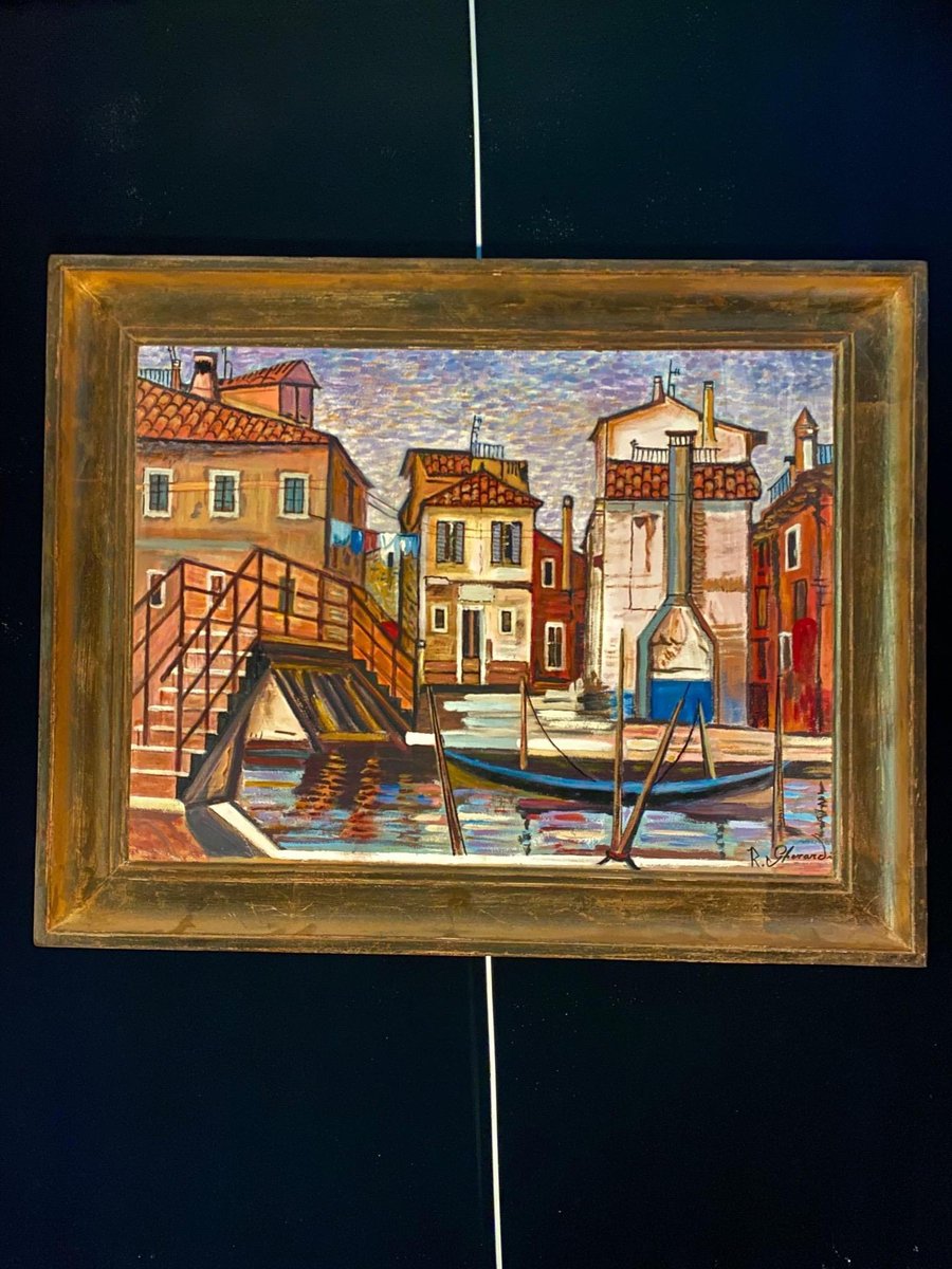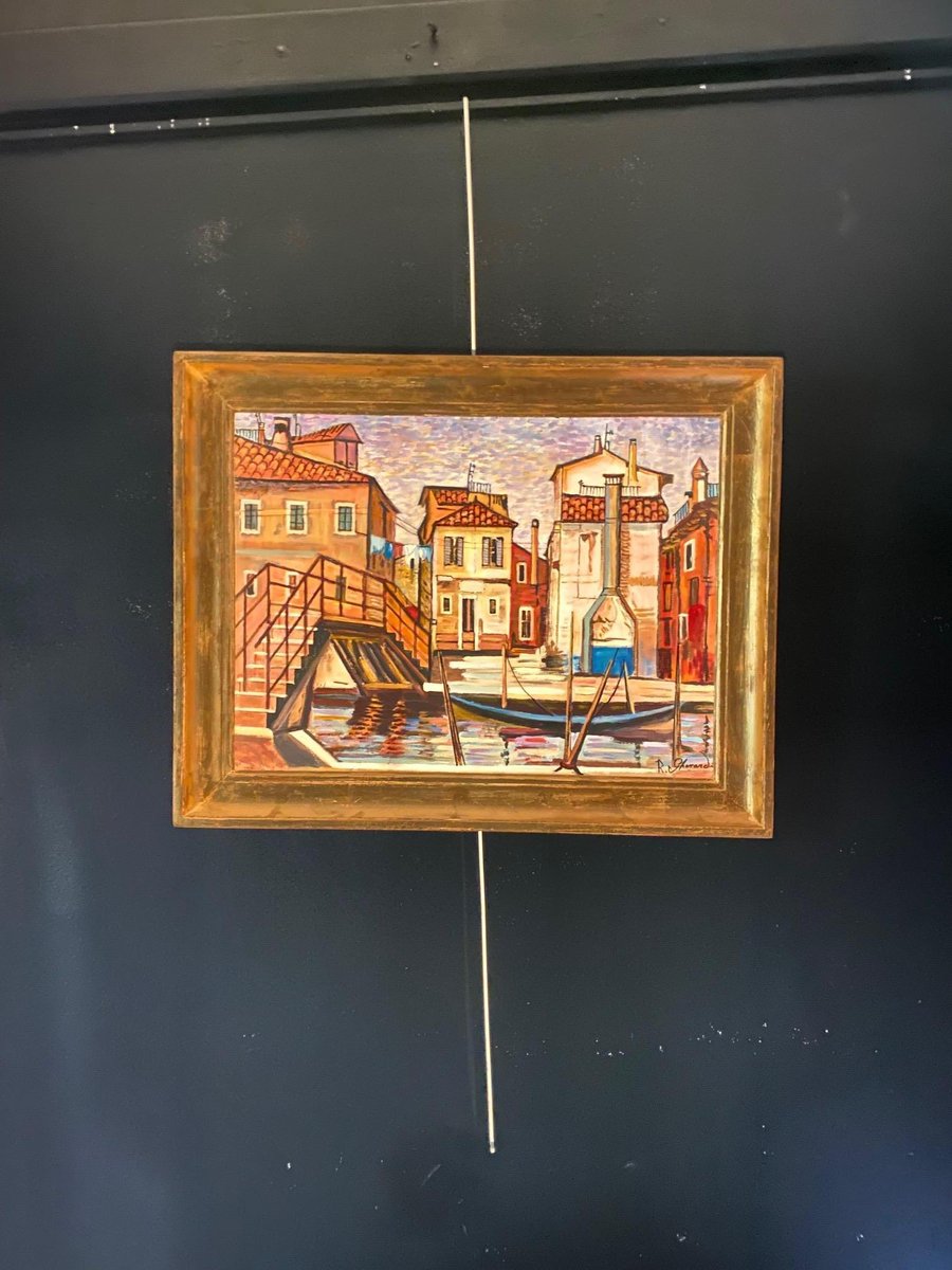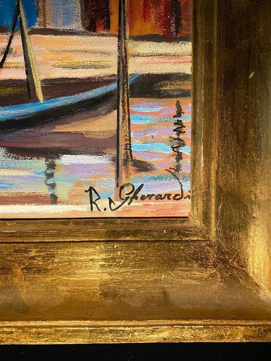 Roberto Gherardi, Venezia, le gondole, 1980, Olio su tela, Incorniciato