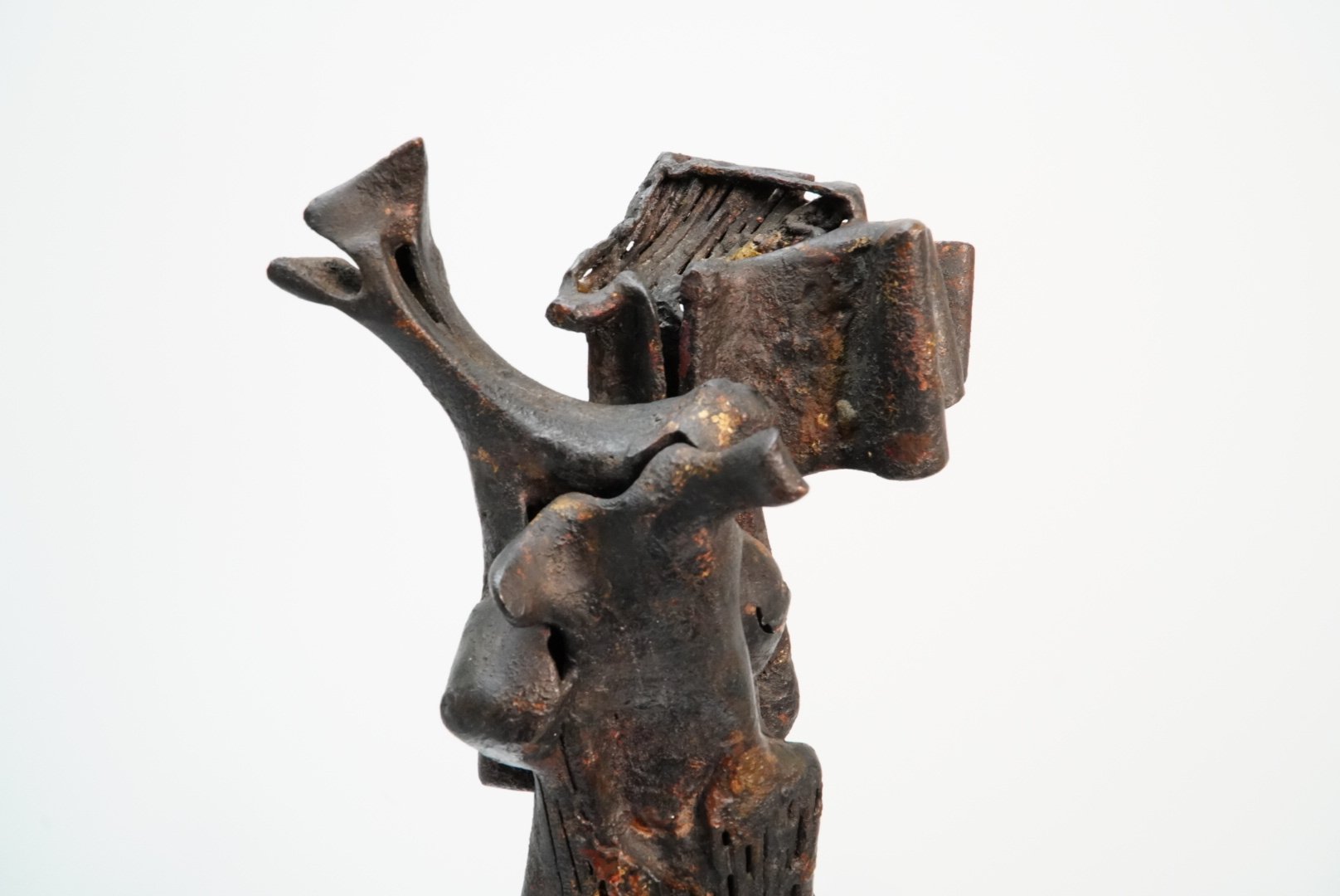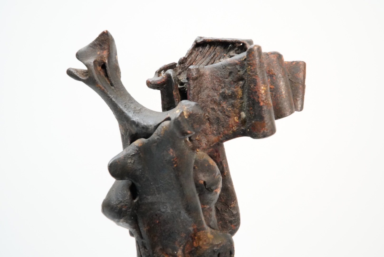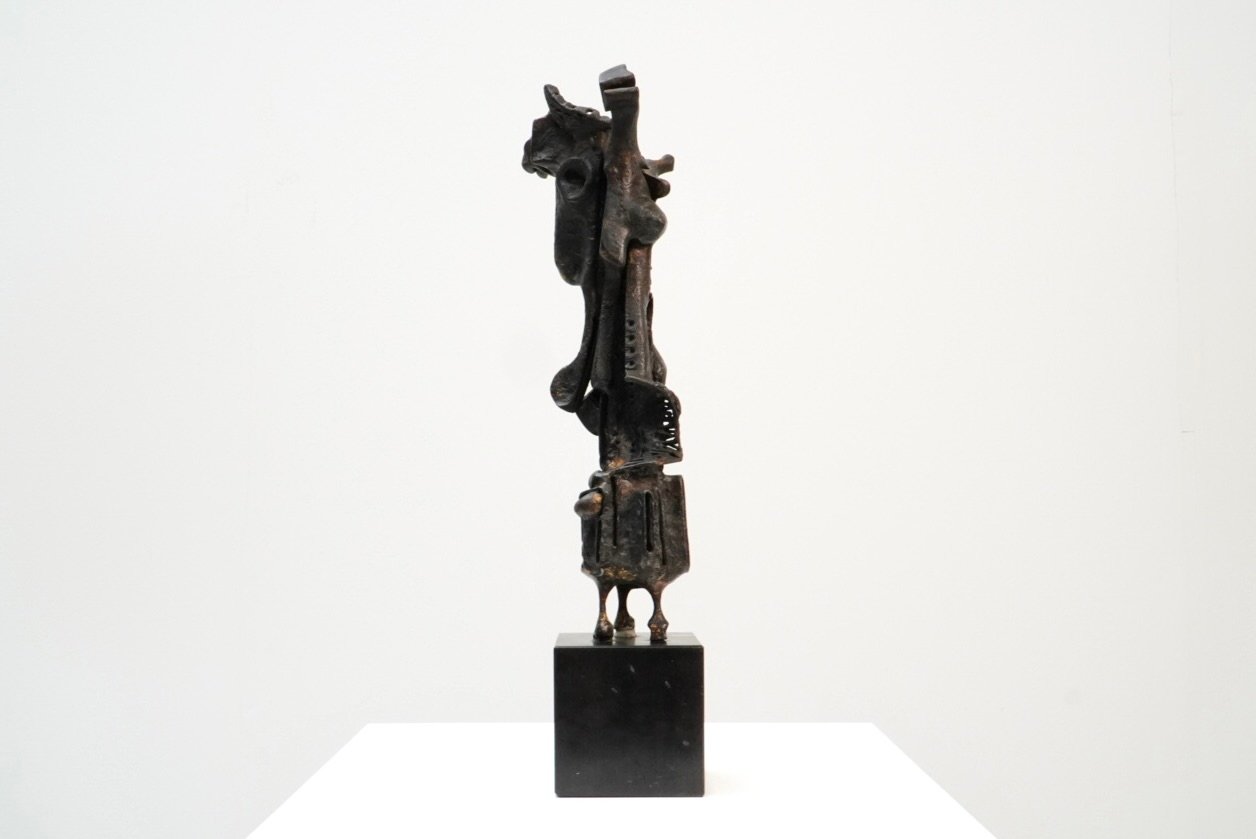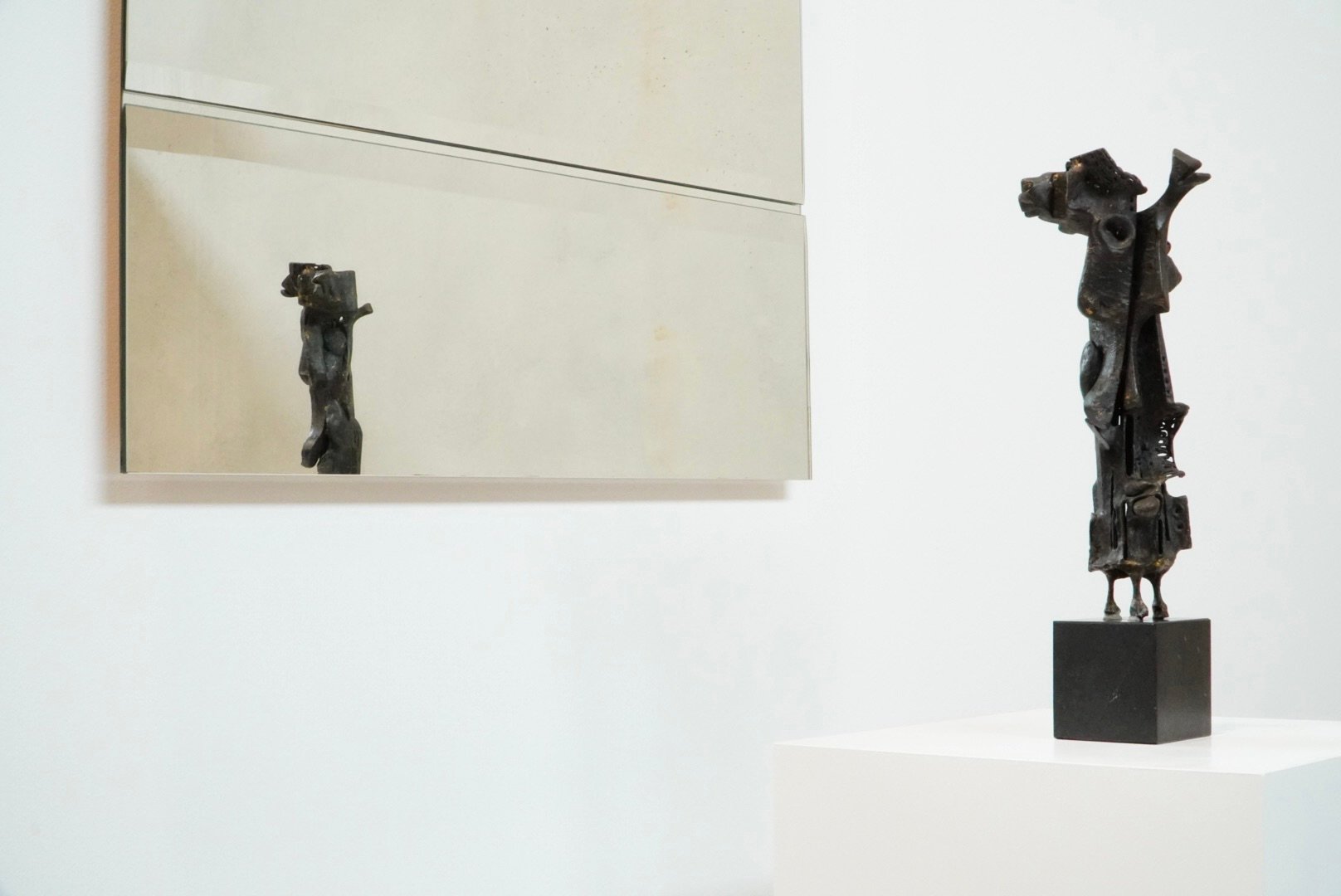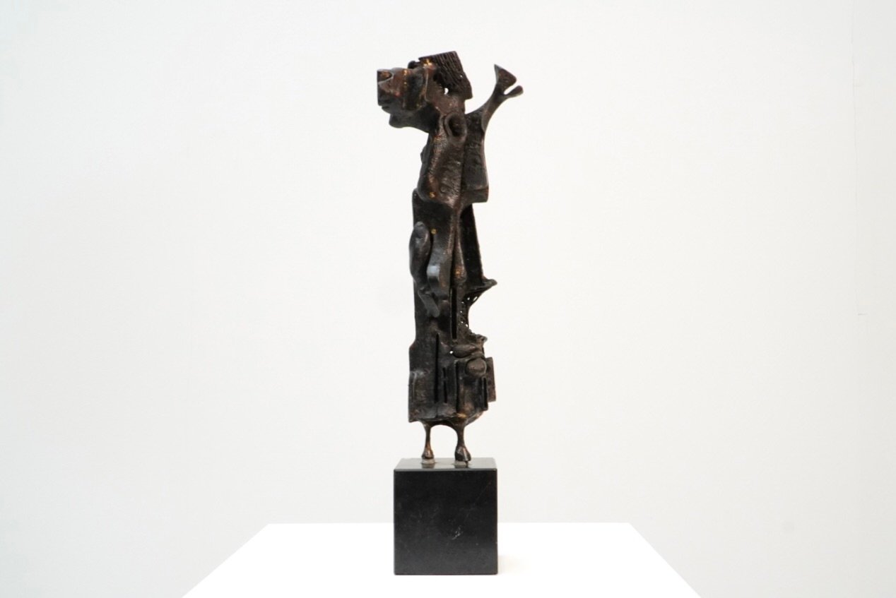 Roger Bonduel (1930-2019) was a leading figure in Belgium's post-war modernist and avant-garde art scene. He began his artistic journey with evening classes at the Academy in Tielt and later continued his studies at St. Lucas School in Ghent. During this time, he worked in his family's blacksmith shop in Tielt before eventually settling in St. Andries, Bruges. Though Bonduel started out as a painter, he gradually turned his focus toward sculpture, developing a passion for working with metals like iron and tin. His early creations were small figures that evolved into imaginative constructions of both human and animal forms, and eventually, he transitioned to more abstract work.