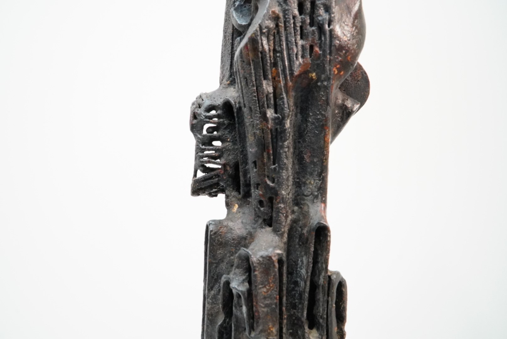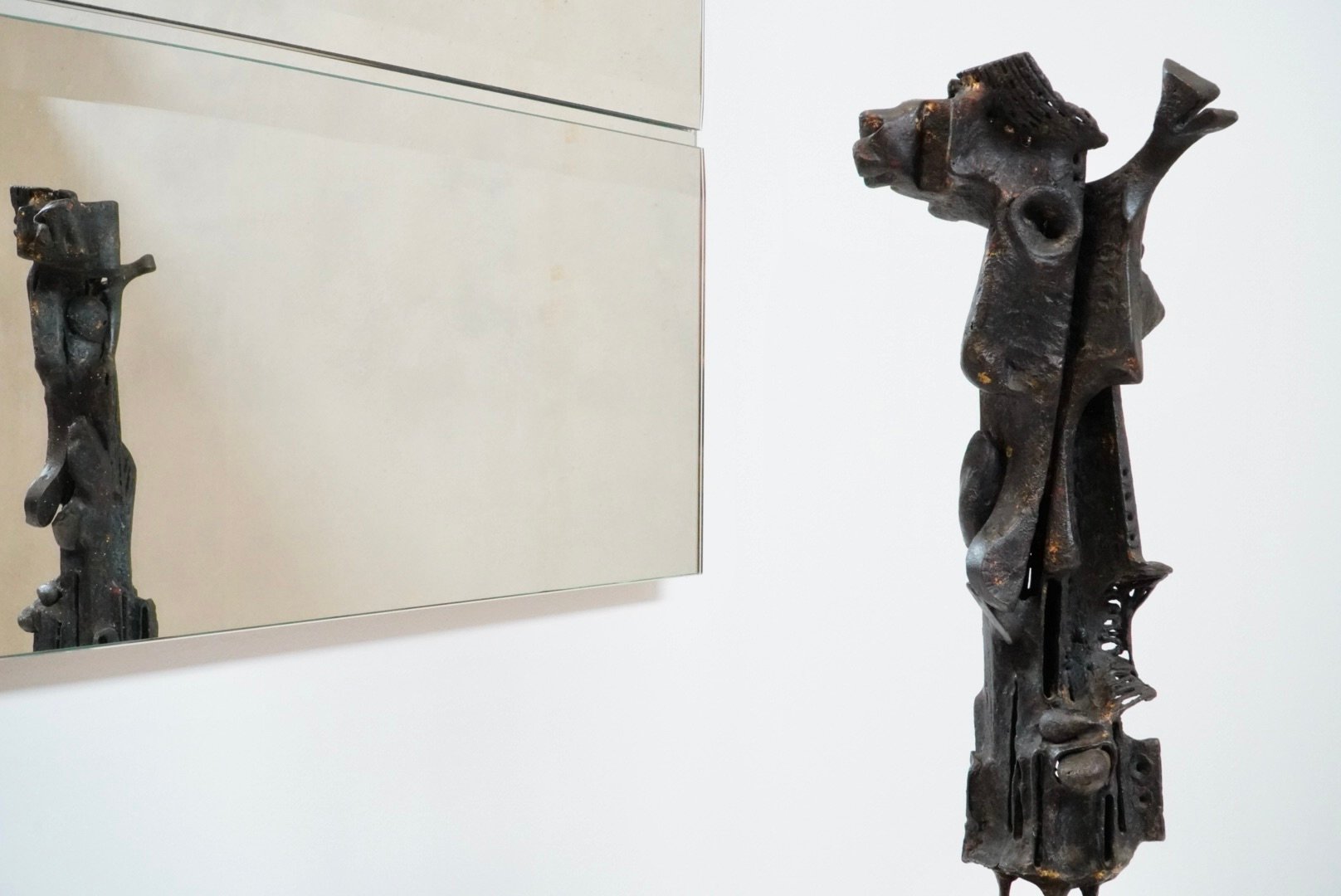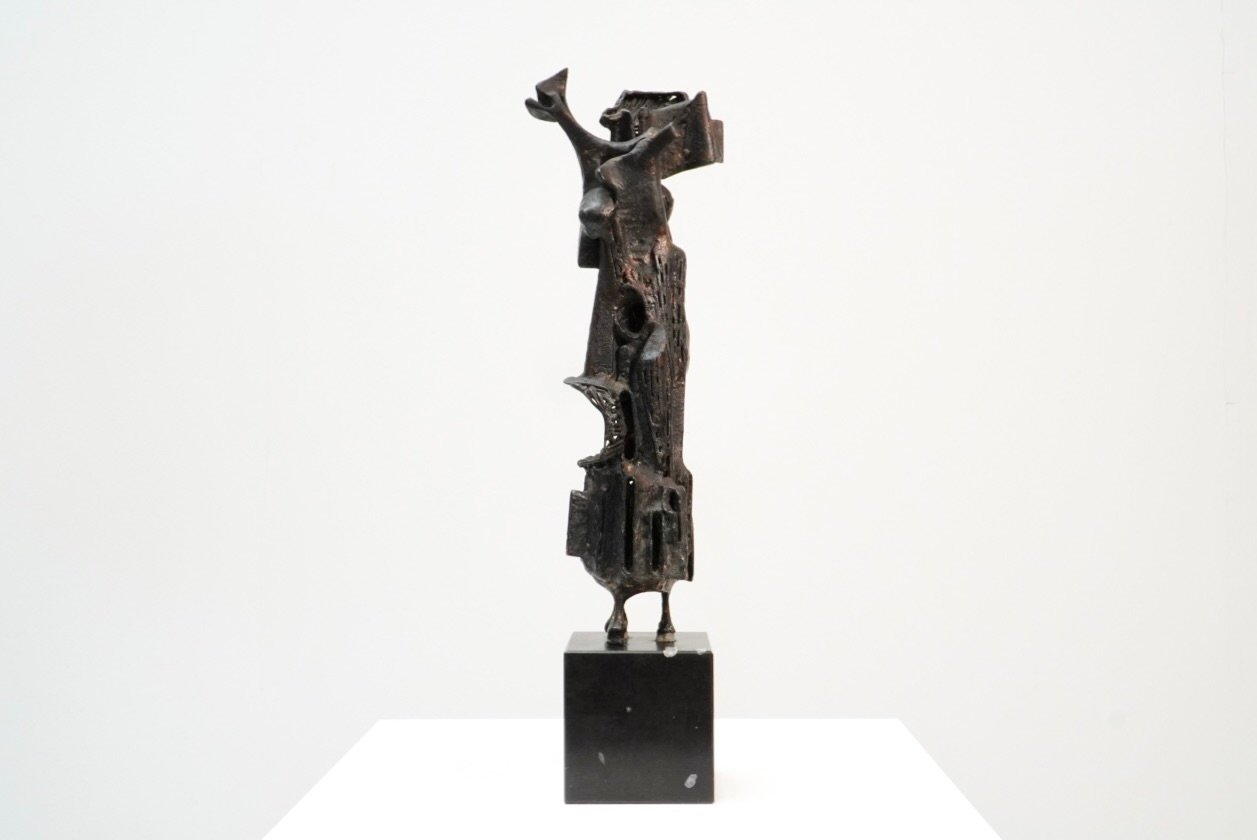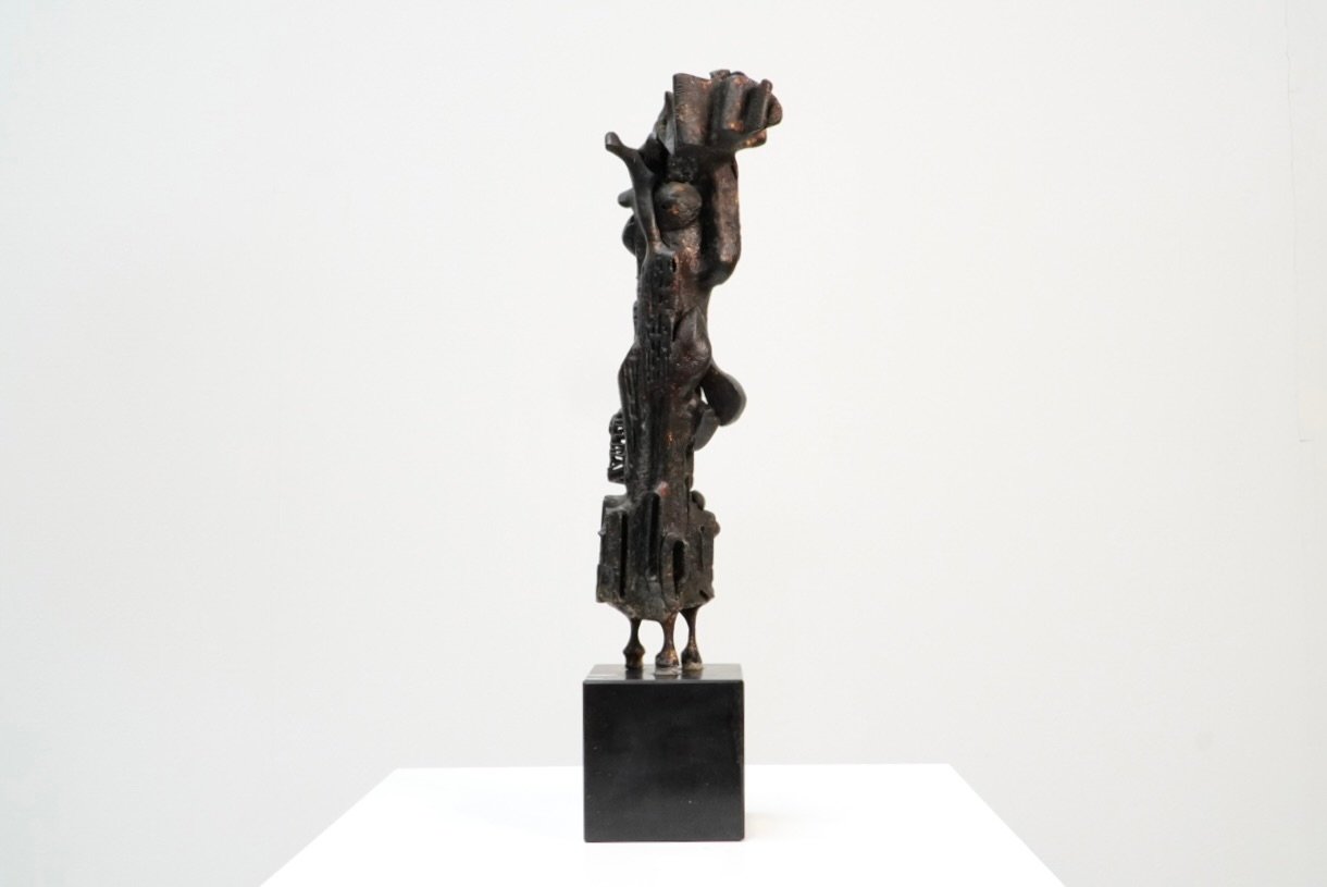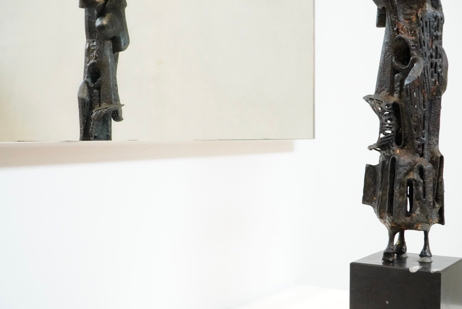 Roger Bonduel (1930-2019) è stato una figura di spicco della scena artistica modernista e d'avanguardia del Belgio del dopoguerra. Ha iniziato il suo percorso artistico con i corsi serali all'Accademia di Tielt e ha poi proseguito gli studi alla St. Lucas School di Gand. Durante questo periodo ha lavorato nella bottega di fabbro della sua famiglia a Tielt, prima di stabilirsi a St. Andries, Bruges. Pur avendo iniziato come pittore, Bonduel si è gradualmente orientato verso la scultura, sviluppando una passione per la lavorazione di metalli come il ferro e lo stagno. Le sue prime creazioni erano piccole figure che si sono evolute in costruzioni fantasiose di forme umane e animali, per poi passare a lavori più astratti.