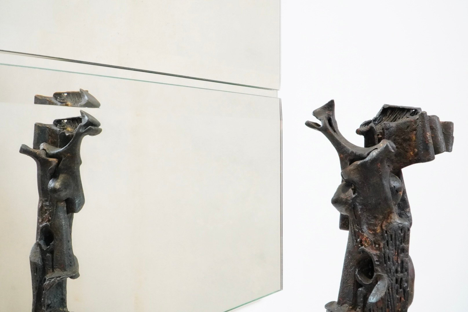 Bonduel was celebrated multiple times in Belgium and his works were featured in major exhibitions, including The Arts of Belgium 1920-1960 in New York and the World Expo in Montreal. He primarily worked with nickel, copper, steel, and bronze, with his artistic range spanning from figurative to fully abstract. His work is defined by a relentless pursuit of balance between technical precision and aesthetic beauty. Bonduel's creative collaborations with modernist architect Paul Felix and glass artist Michel Martens revolutionized church architecture in Belgium. Their partnership reached its peak with the creation of Bonduel's iconic home in 1959, a true reflection of his innovative spirit.