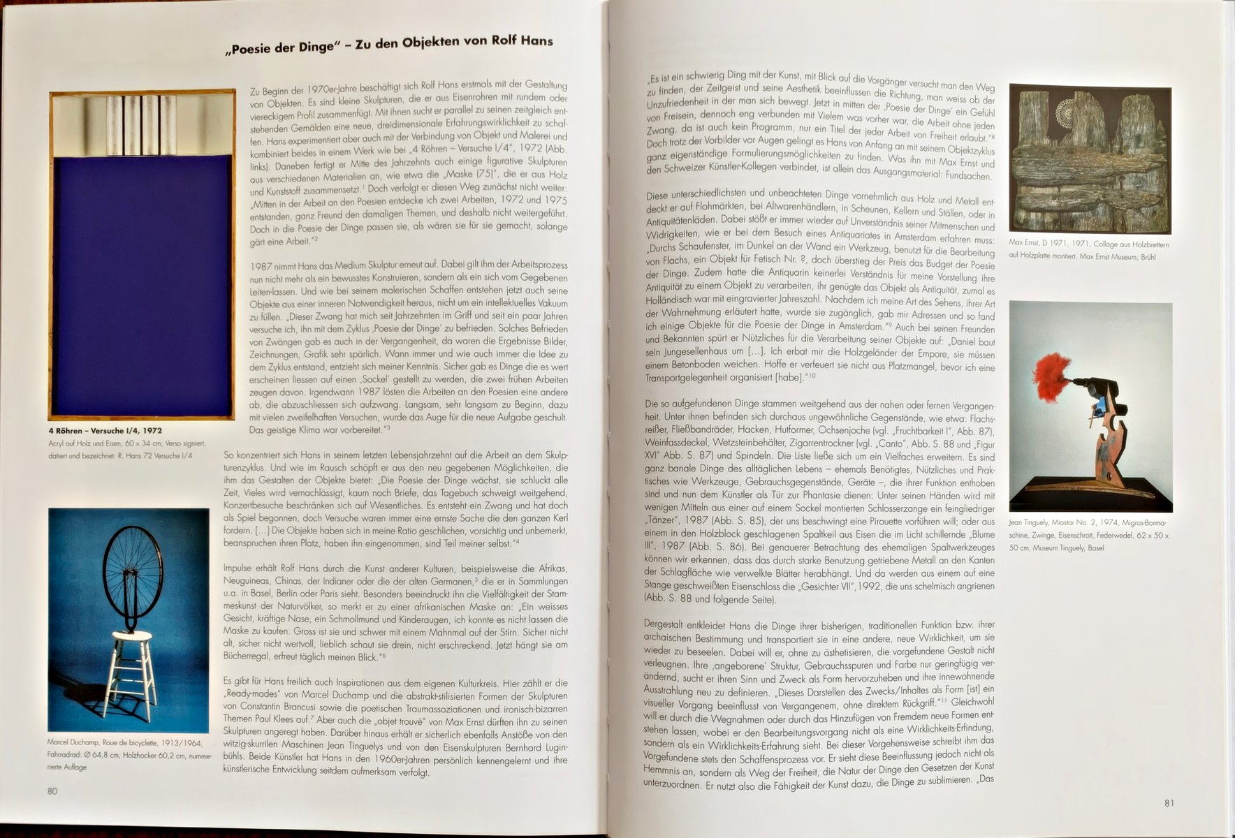 Ma nonostante i modelli di ruolo in mente, Hans riesce fin dall'inizio con il suo ciclo di oggetti a trovare opzioni di formulazione molto indipendenti. Ciò che lo collega a Max Ernst, Brancusi, Duchamp è solo il materiale di partenza: I fondi.