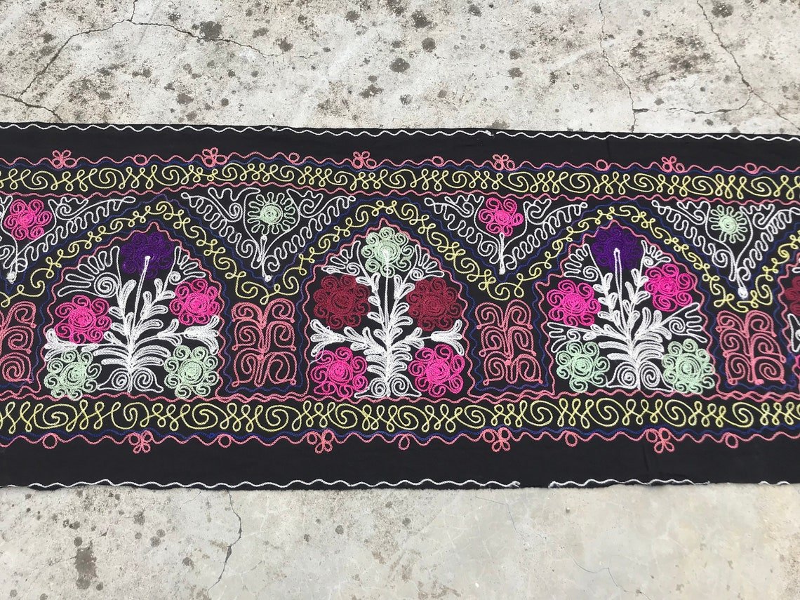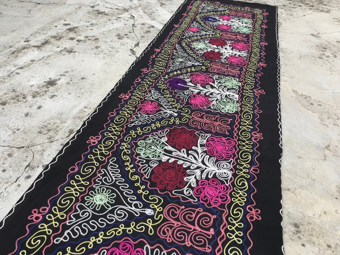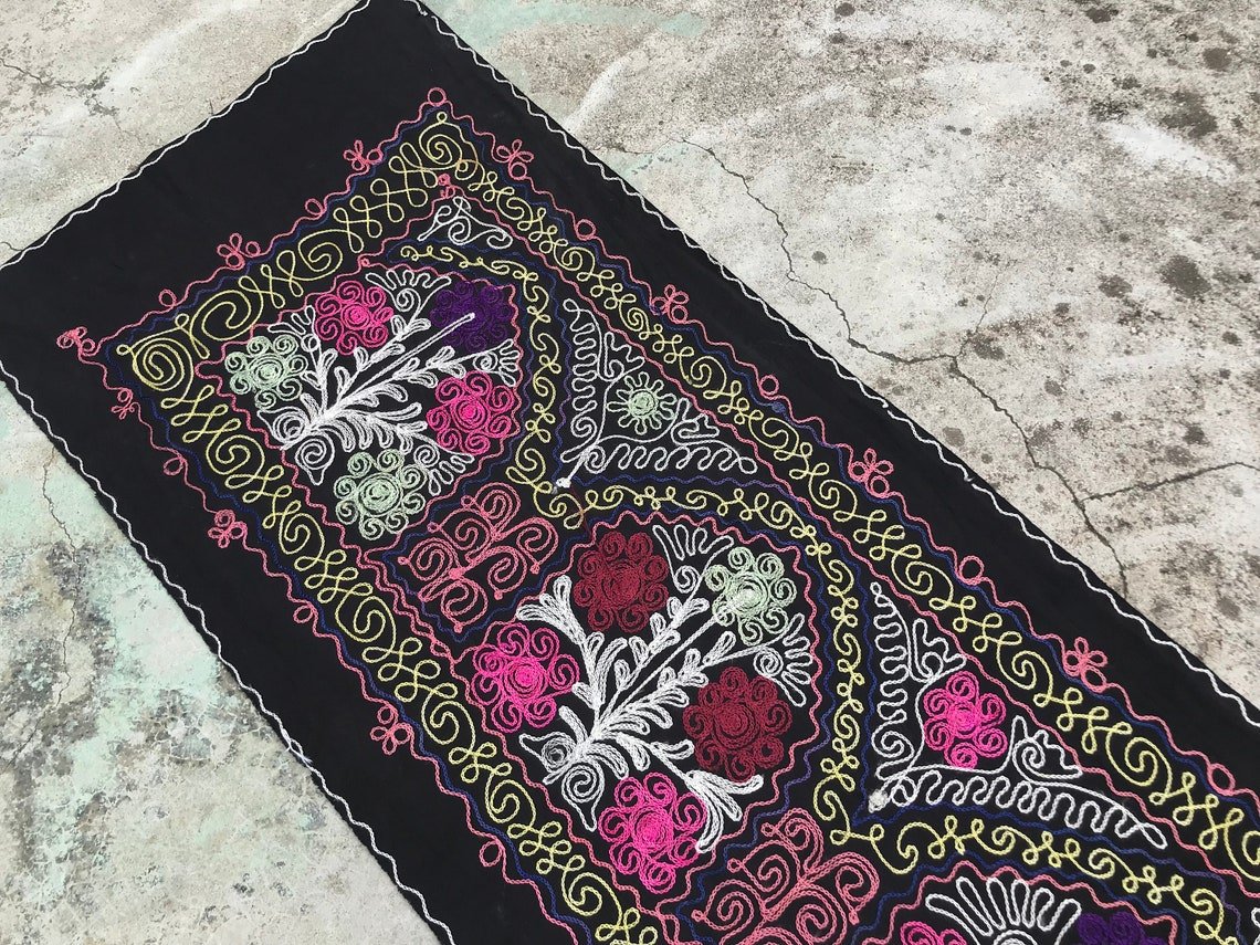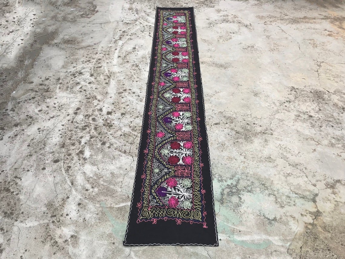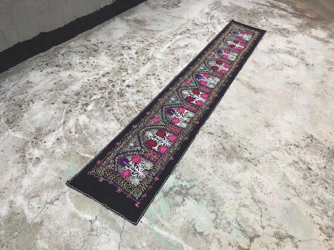 Runner da tavola nero con motivo tribale, anni '80