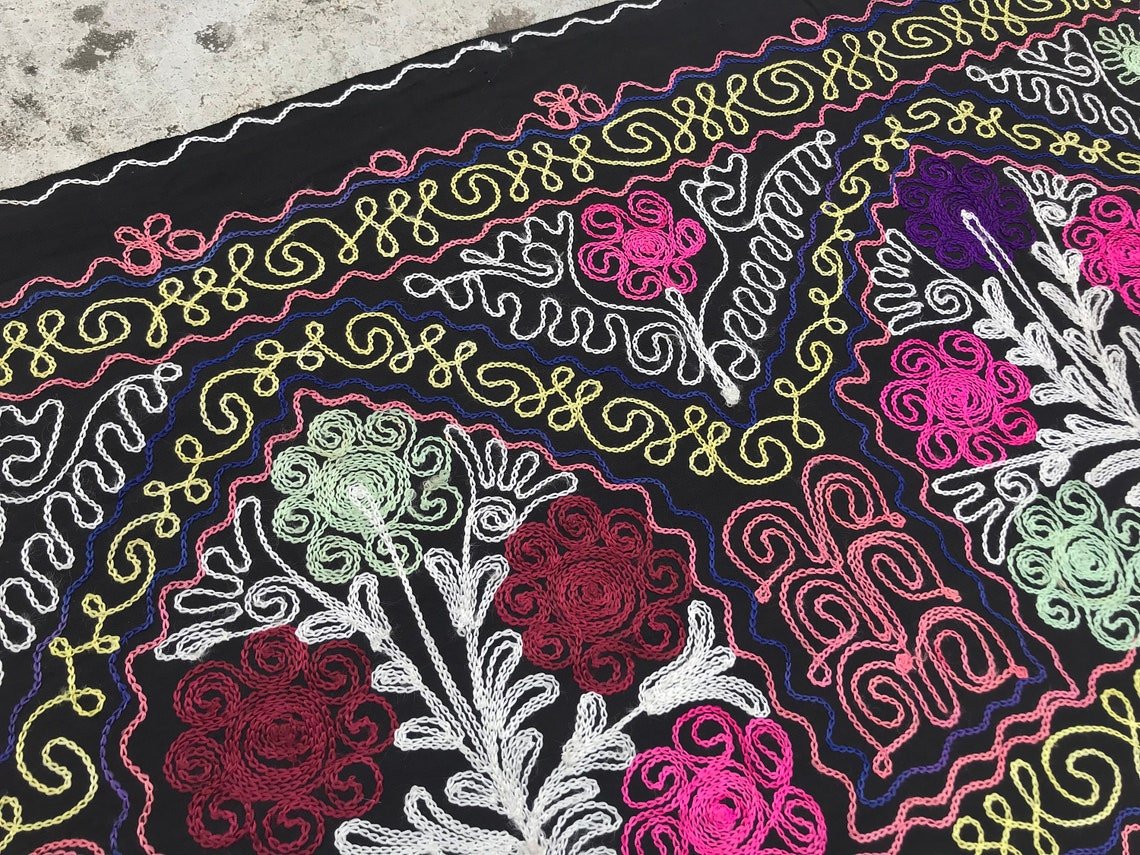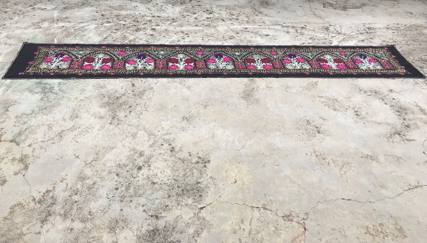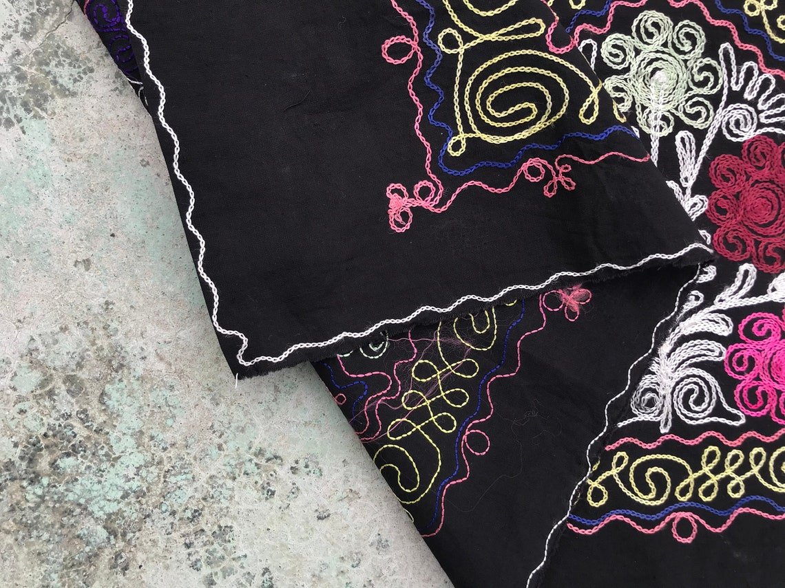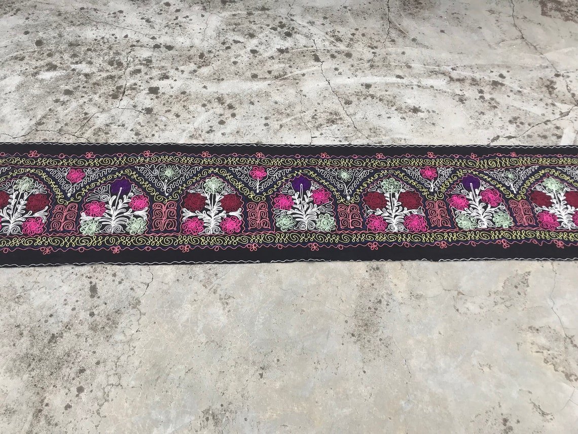 Runner da tavola nero con motivo tribale, anni '80