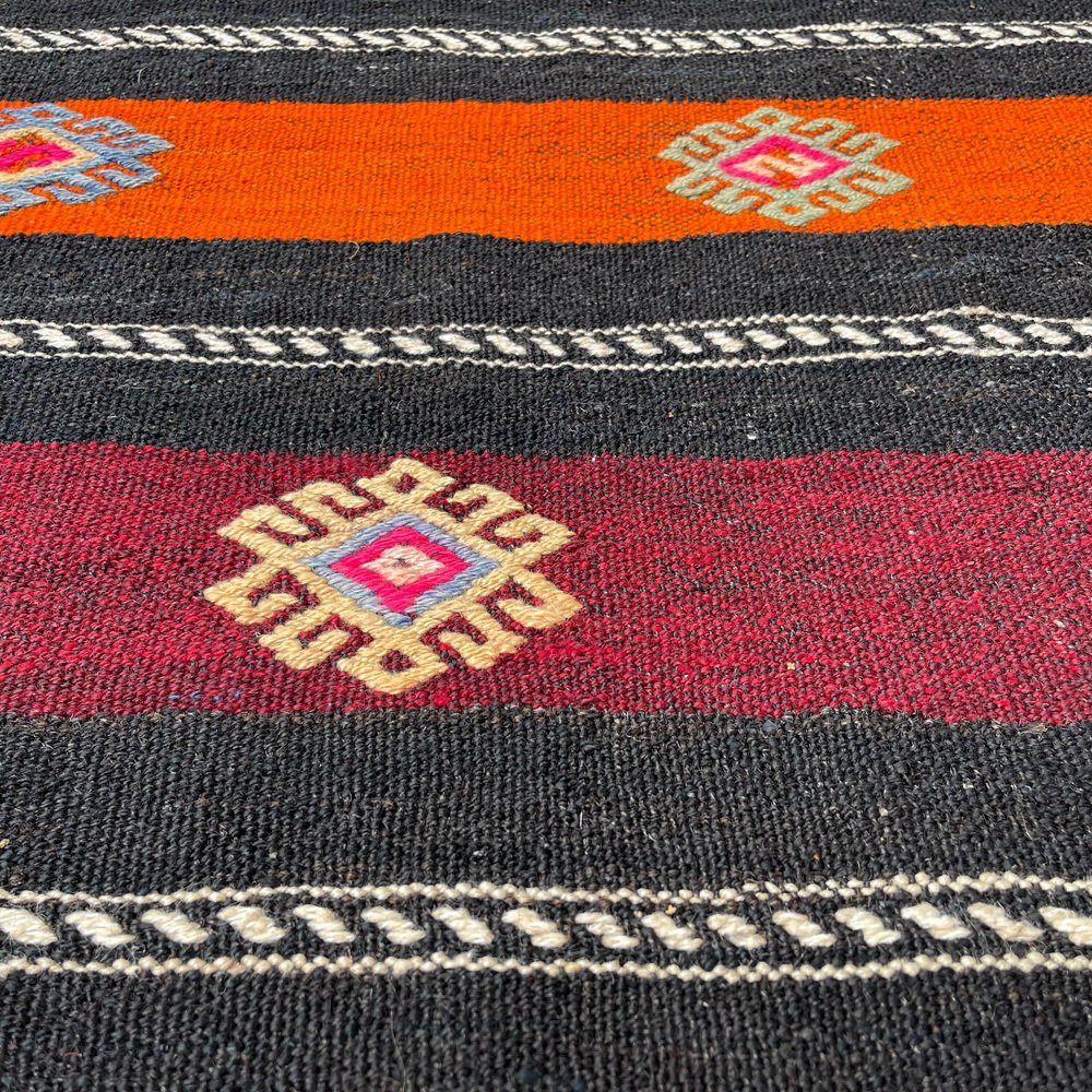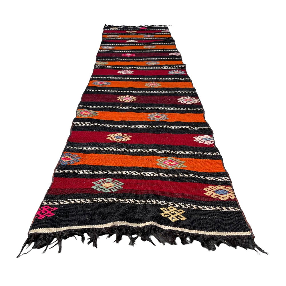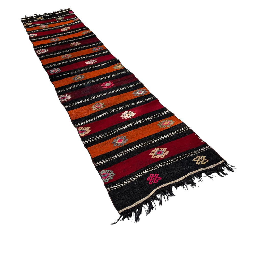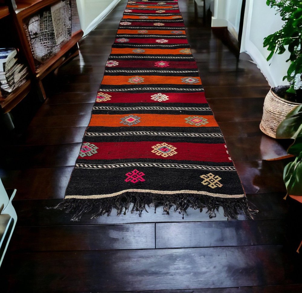 Questo tradizionale tappeto kilim turco, noto anche come kilim turco anatolico vintage, è un pezzo straordinario che misura 290 per 68 centimetri. Questo tappeto fatto a mano è realizzato con materiali di alta qualità, tra cui cotone e lana, per garantire un'eccellente durata e un uso prolungato. Il tappeto viene spedito da una piccola azienda in Germania, che ne garantisce l'arrivo in perfette condizioni. Il tappeto, che risale agli anni '60, aggiungerà carattere e fascino a qualsiasi stanza e la sua lavorazione artigianale non mancherà di stupire. Le dimensioni del tappeto sono 68 centimetri di larghezza e 290 centimetri di lunghezza, il che lo rende perfetto per stanze di medie e grandi dimensioni. I colori tenui e sfumati del tappeto Kilim sono tinti naturalmente, creando una bella tonalità che si sposa bene con diverse palette di colori. La qualità dei materiali e la lavorazione artigianale garantiscono che il tappeto resista alla prova del tempo e mantenga la sua bellezza e praticità per gli anni a venire. Questo tradizionale tappeto turco Kilim è ideale per essere utilizzato in qualsiasi stanza e aggiungerà un tocco di eleganza e calore all'arredamento della vostra casa. I materiali durevoli del tappeto lo rendono perfetto per le aree ad alto traffico come soggiorni, sale da pranzo e persino camere da letto. Il venditore pulisce professionalmente tutti i tappeti prima della spedizione per garantire una pulizia ottimale e un piacere immediato per il cliente. Il venditore garantisce inoltre che la produzione di questo tappeto non ha comportato l'impiego di manodopera infantile, in quanto è stato prodotto in condizioni di lavoro eque e dignitose. Il venditore è coinvolto nell'iniziativa Care & Fair contro il lavoro minorile nel commercio dei tappeti, a dimostrazione del suo impegno verso pratiche di produzione etiche e responsabili. Acquistate subito questo tappeto Kilim tradizionale turco di straordinaria bellezza e aggiungete un tocco di eleganza e calore all'arredamento della vostra casa.
