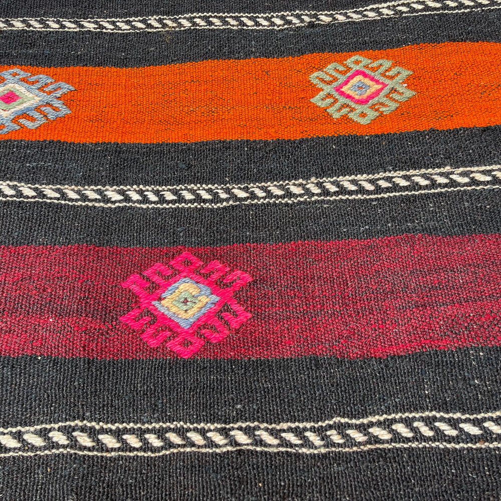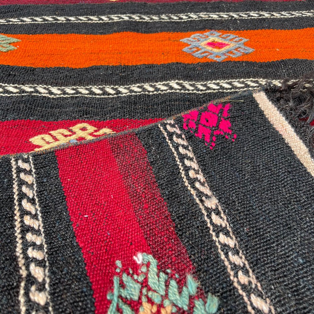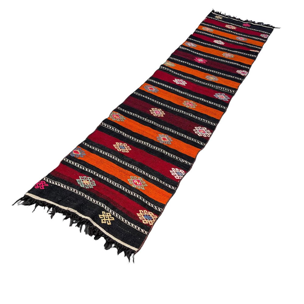 Questo tradizionale tappeto kilim turco, noto anche come kilim turco anatolico vintage, è un pezzo straordinario che misura 290 per 68 centimetri. Questo tappeto fatto a mano è realizzato con materiali di alta qualità, tra cui cotone e lana, per garantire un'eccellente durata e un uso prolungato. Il tappeto viene spedito da una piccola azienda in Germania, che ne garantisce l'arrivo in perfette condizioni. Il tappeto, che risale agli anni '60, aggiungerà carattere e fascino a qualsiasi stanza e la sua lavorazione artigianale non mancherà di stupire. Le dimensioni del tappeto sono 68 centimetri di larghezza e 290 centimetri di lunghezza, il che lo rende perfetto per stanze di medie e grandi dimensioni. I colori tenui e sfumati del tappeto Kilim sono tinti naturalmente, creando una bella tonalità che si sposa bene con diverse palette di colori. La qualità dei materiali e la lavorazione artigianale garantiscono che il tappeto resista alla prova del tempo e mantenga la sua bellezza e praticità per gli anni a venire. Questo tradizionale tappeto turco Kilim è ideale per essere utilizzato in qualsiasi stanza e aggiungerà un tocco di eleganza e calore all'arredamento della vostra casa. I materiali durevoli del tappeto lo rendono perfetto per le aree ad alto traffico come soggiorni, sale da pranzo e persino camere da letto. Il venditore pulisce professionalmente tutti i tappeti prima della spedizione per garantire una pulizia ottimale e un piacere immediato per il cliente. Il venditore garantisce inoltre che la produzione di questo tappeto non ha comportato l'impiego di manodopera infantile, in quanto è stato prodotto in condizioni di lavoro eque e dignitose. Il venditore è coinvolto nell'iniziativa Care & Fair contro il lavoro minorile nel commercio dei tappeti, a dimostrazione del suo impegno verso pratiche di produzione etiche e responsabili. Acquistate subito questo tappeto Kilim tradizionale turco di straordinaria bellezza e aggiungete un tocco di eleganza e calore all'arredamento della vostra casa.
