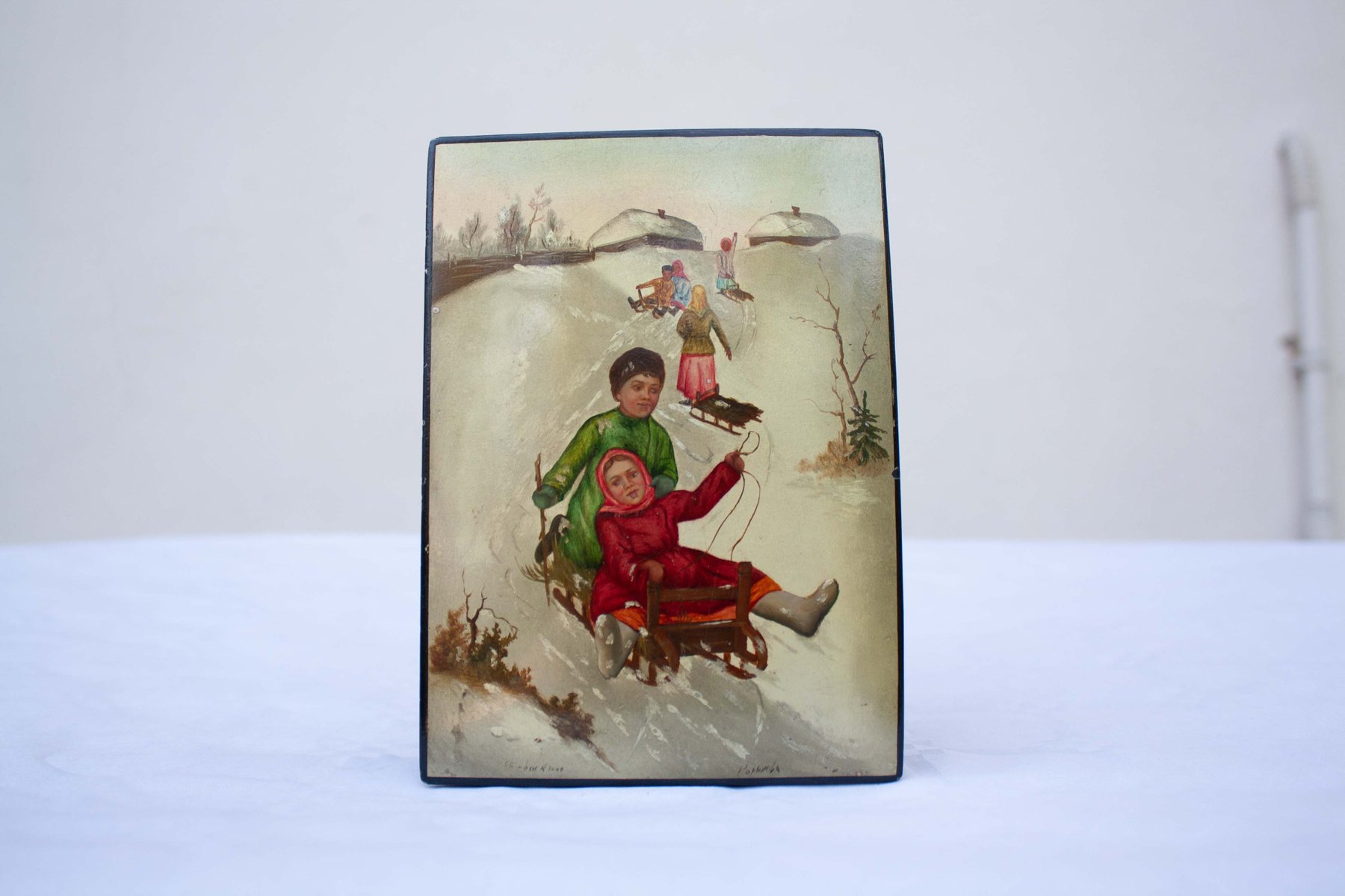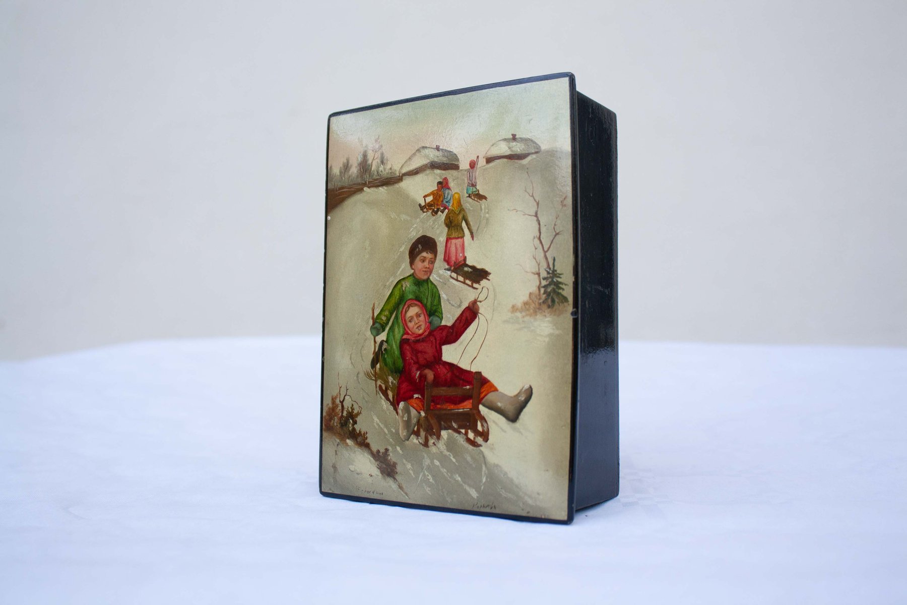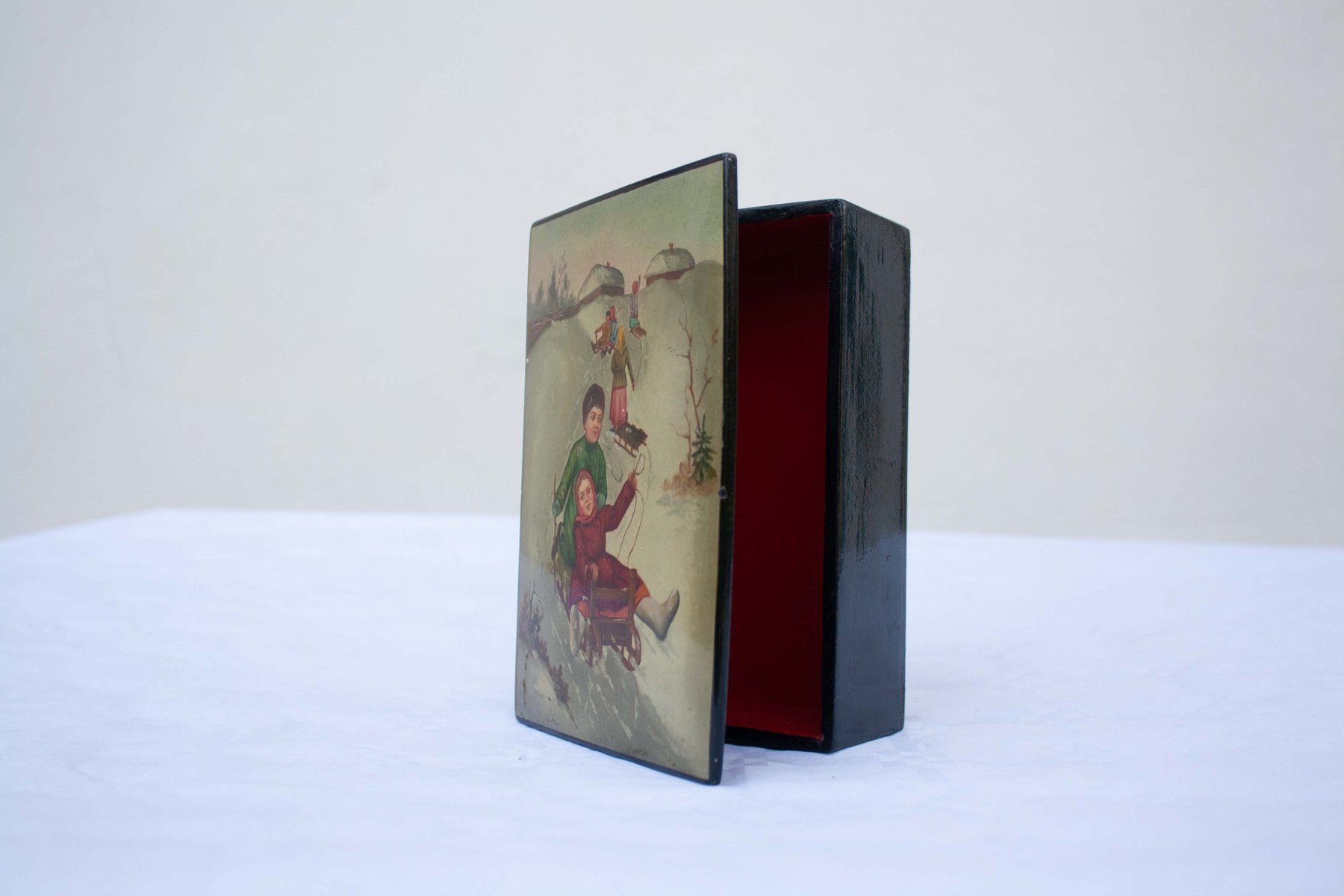 Scatola da bambino con effetto Palekh, anni '30