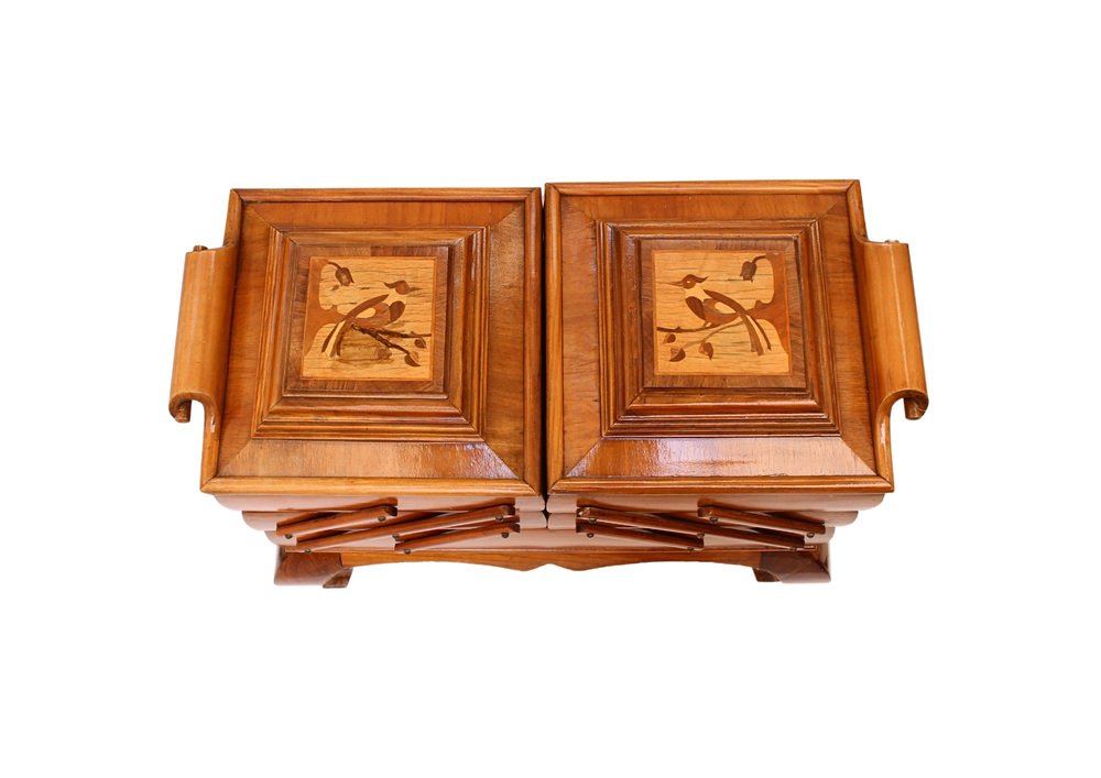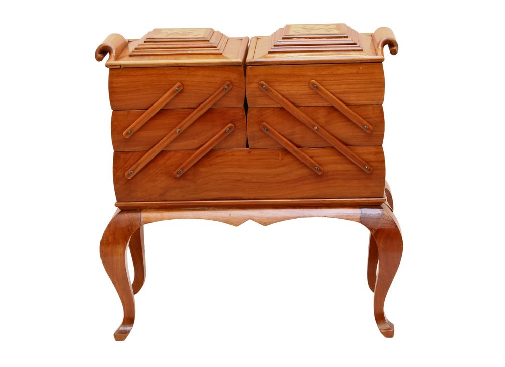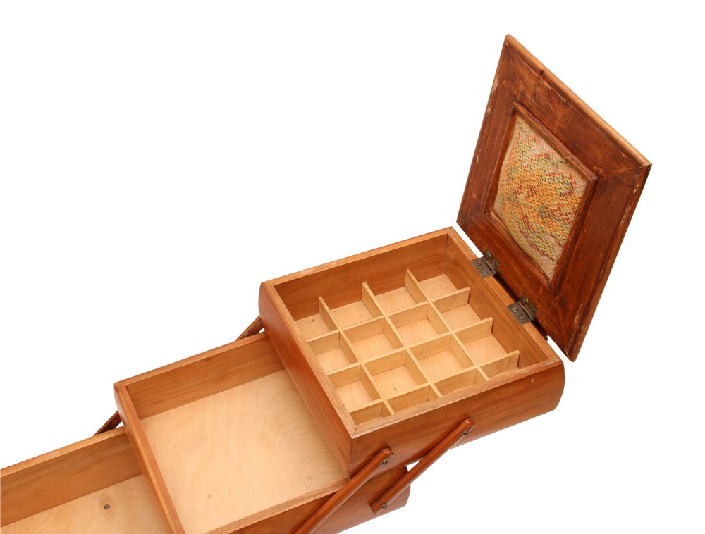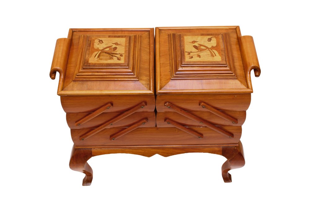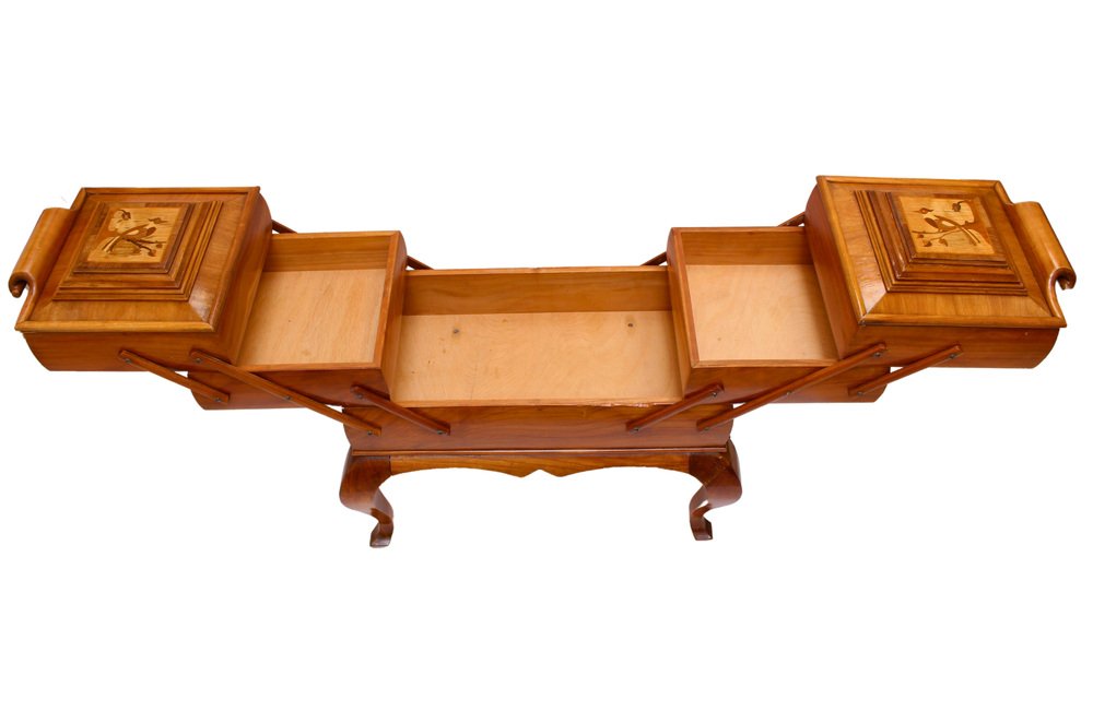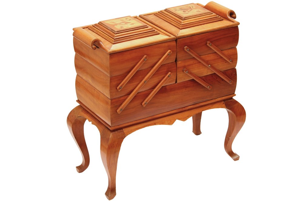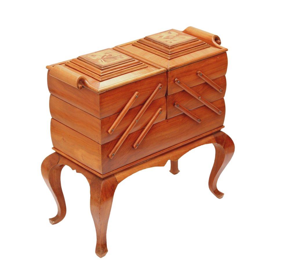 Scatola da cucito Art Deco in ciliegio