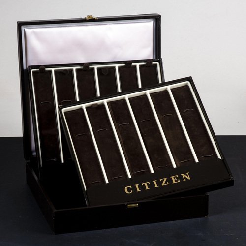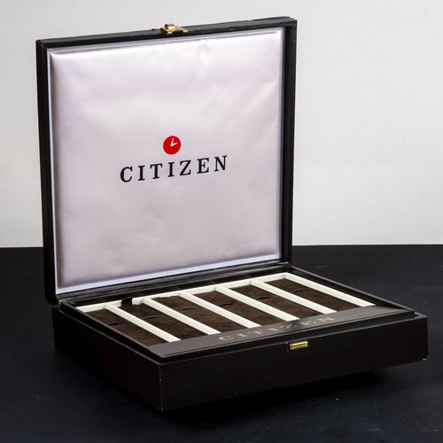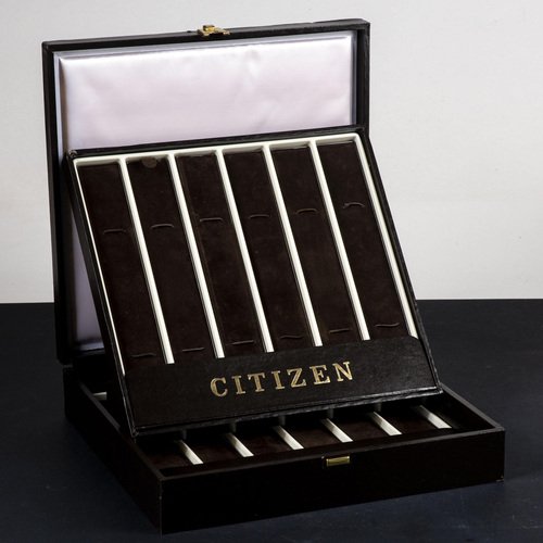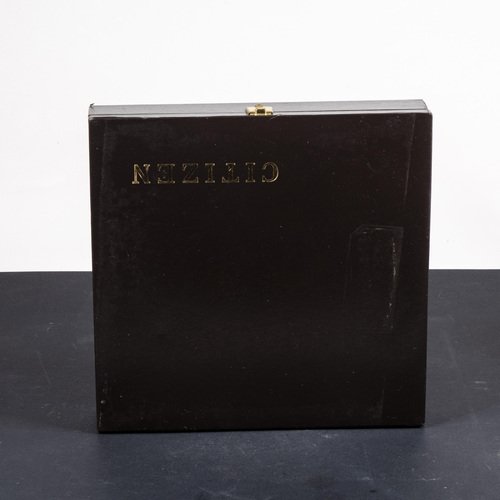 Scatola per orologi vintage in similpelle e tessuto di Citizen, anni '70