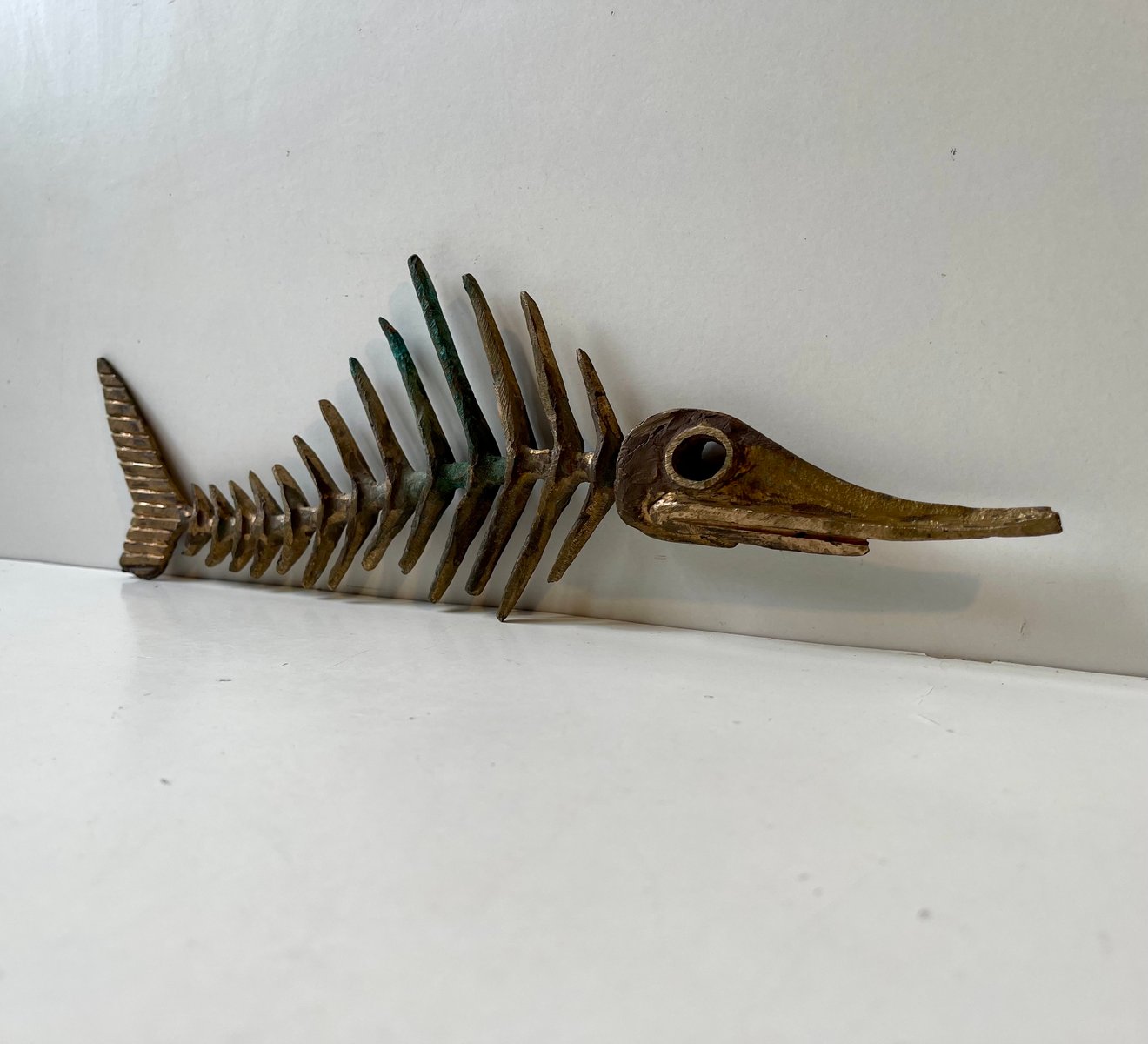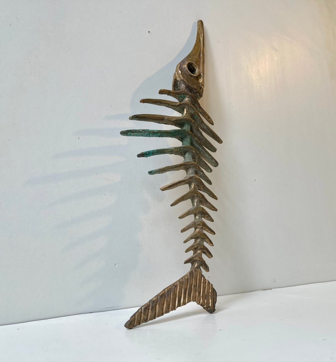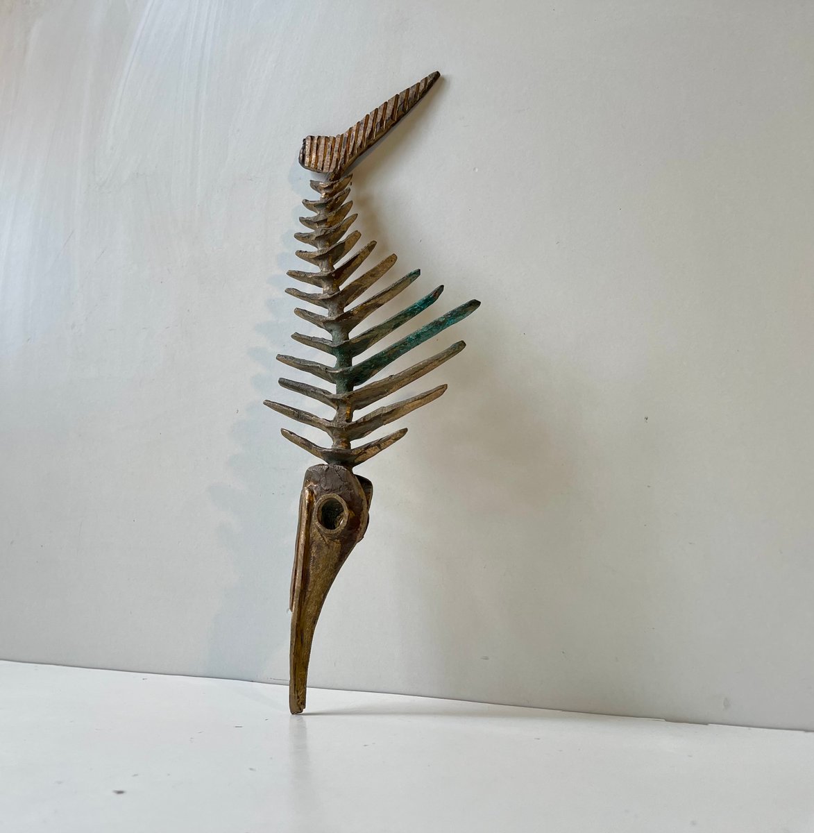 Scheletro brutalista di pesce spada in bronzo di Peder Evald Madsen, anni '80