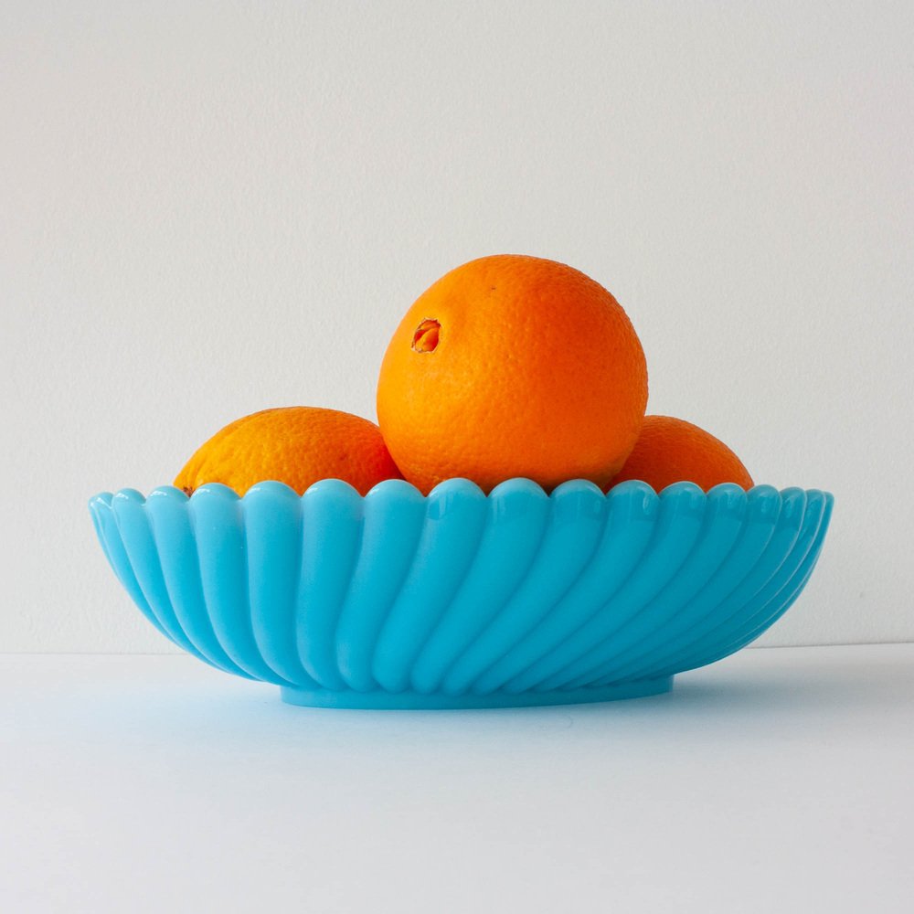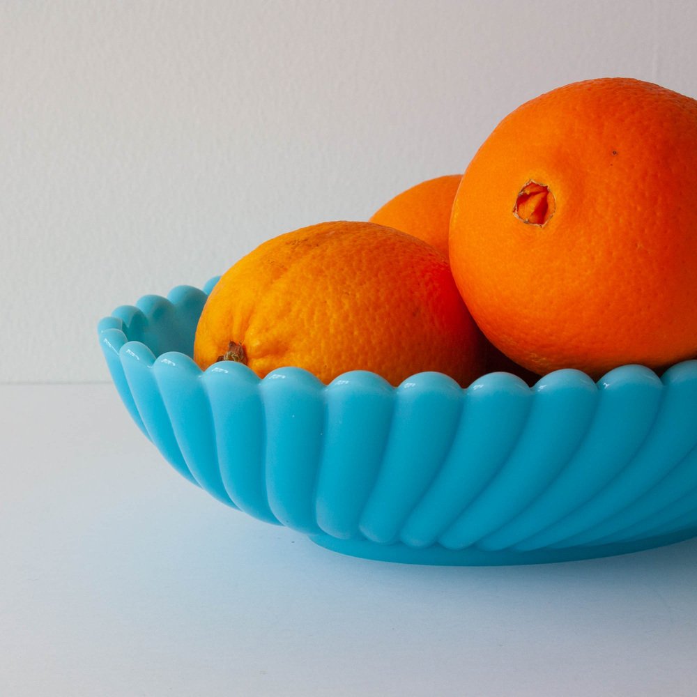 Valorizzate la vostra casa con un pezzo di storia del vetro portoghese: un'autentica ciotola opalina blu IVIMA degli anni '40 che unisce bellezza, patrimonio e artigianalità.