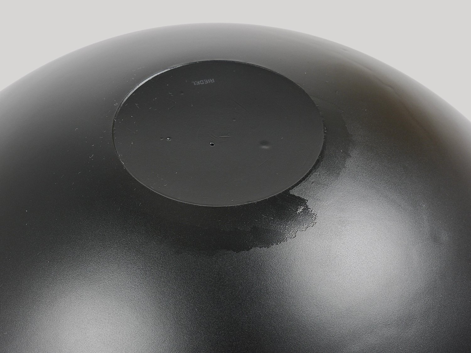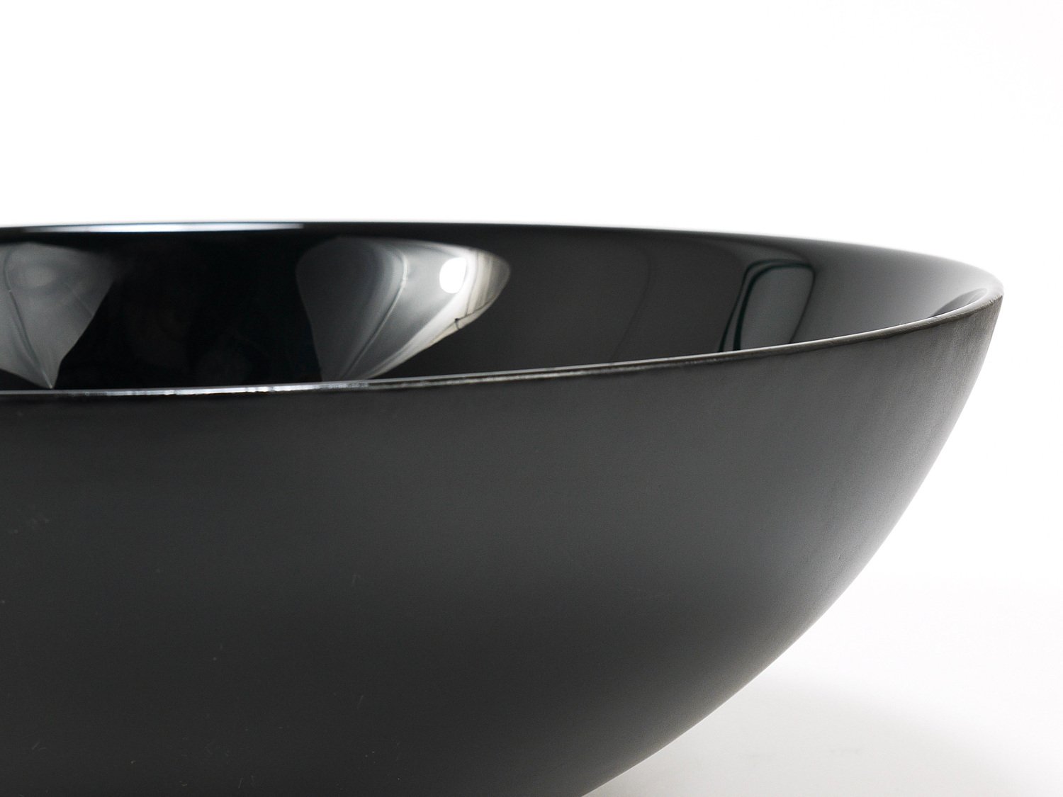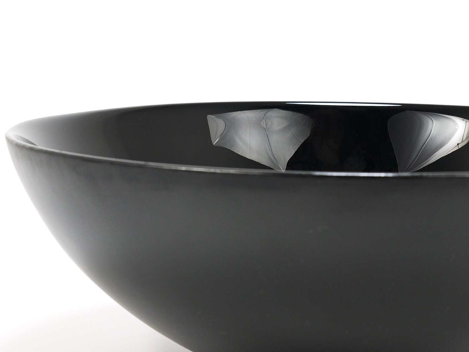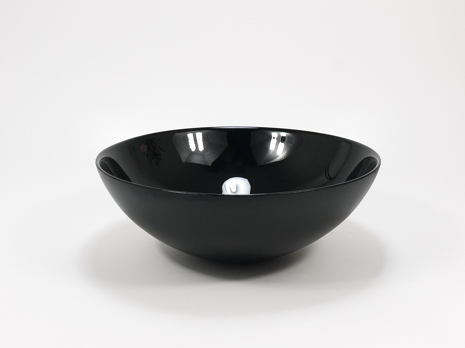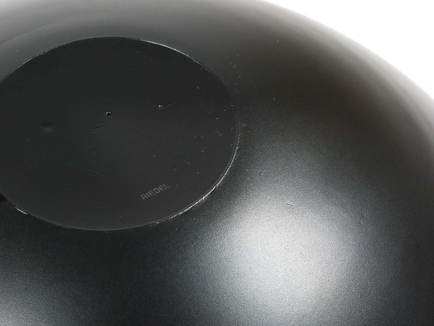 A straight and large, 14 inches diameter postmodern centerpiece glass bowl from the 1980s. Crafted from deep black glass, this bowl stands out with its reduced, elegant design, featuring a high-gloss interior and a matte exterior. It is part of the Riedel Mesa Collection, created through the collaboration between Claus Joseph Riedel (Austria) and Mesa Design (Italy) from 1986 to 1996. The bowl is very solid and in good condition with only minor signs of wear, like a few unavoidable fine scratches and light aging on its exterior . It is marked "Riedel" on the underside. This piece is not only highly decorative—ideal for display on a shelf or in a cabinet—but also makes an excellent fruit bowl. We currently offer more pieces from the Riedel Mesa Collection in our other listings. Mesa, founded in the 1980s, is a producer of handmade luxury home accessories. They collaborated with renowned designers such as Gio Ponti, Cetti Serbelloni and Bruno Munari.