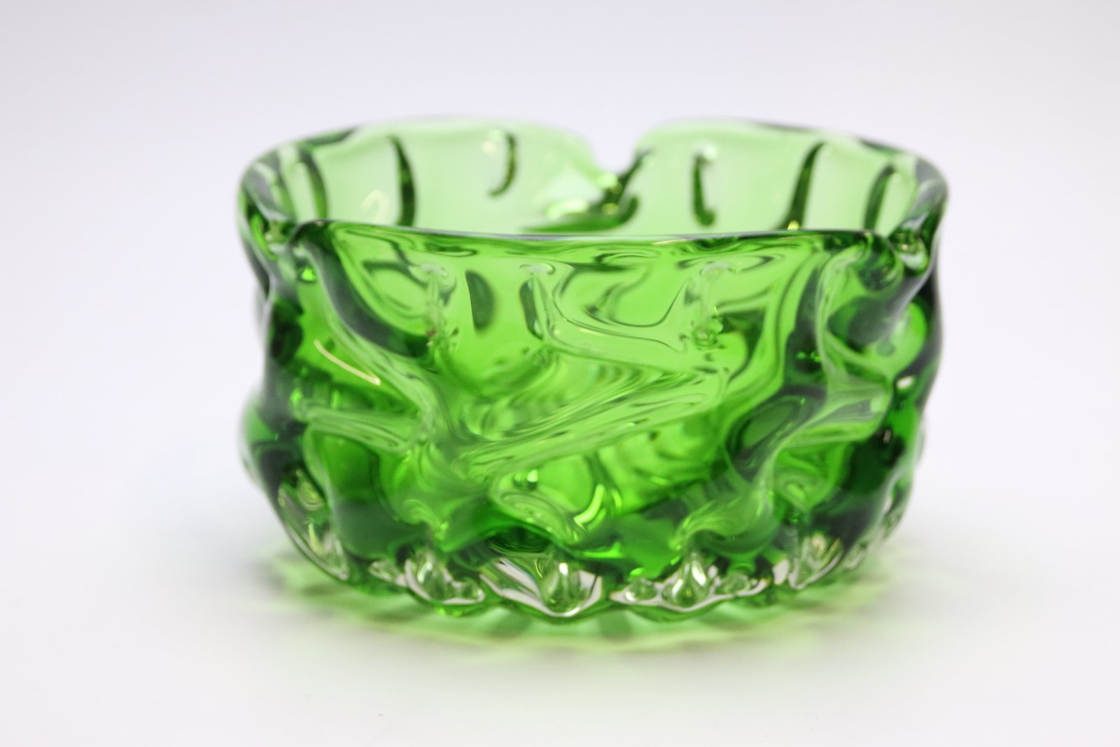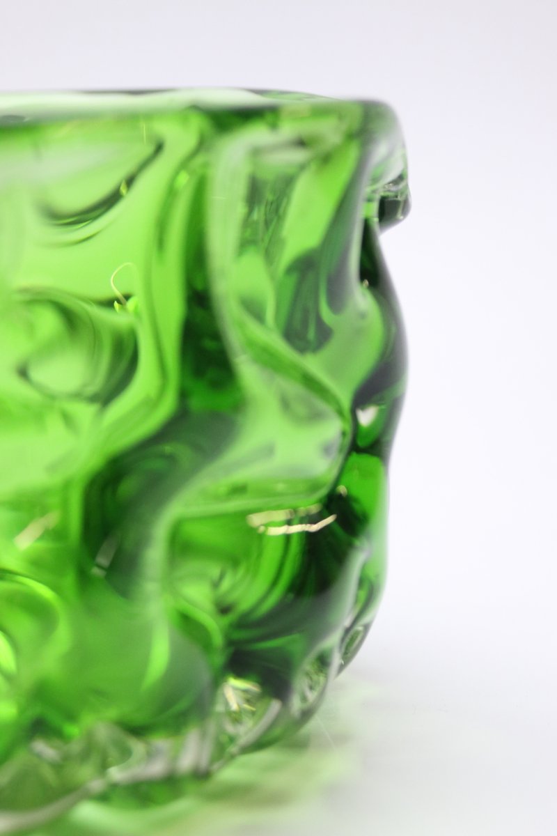 Scodella in vetro verde di Pavel Hlava per Crystalex Novy Bor, Repubblica Ceca, anni '60