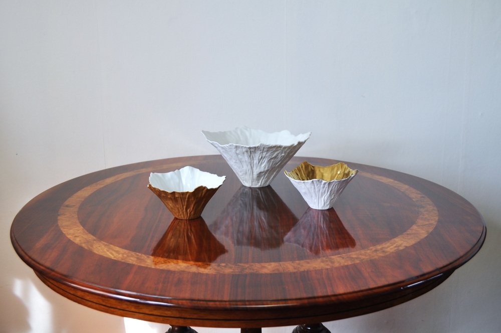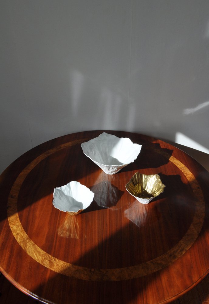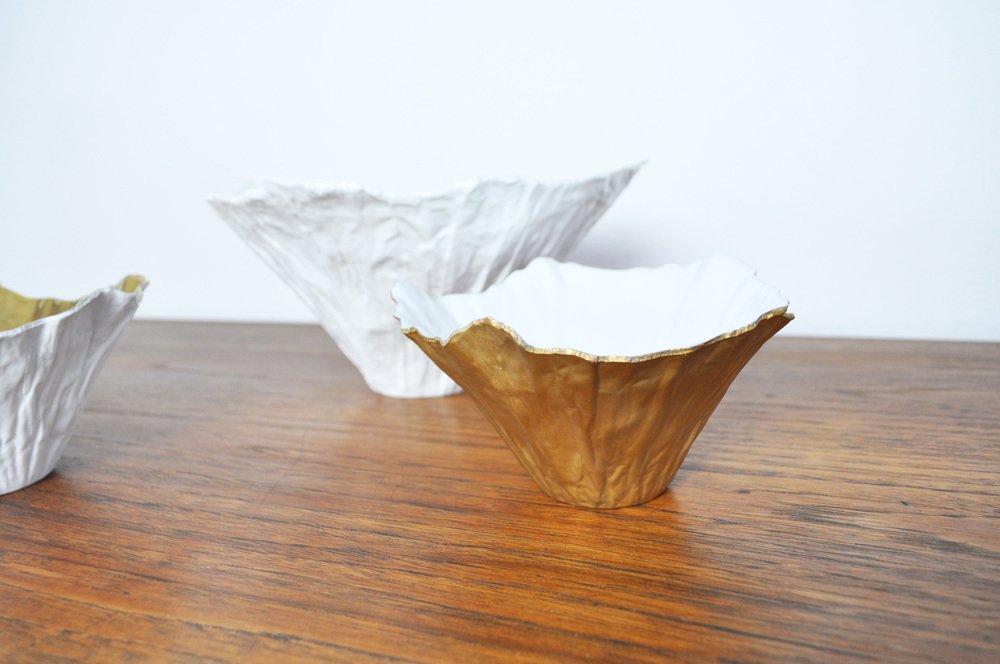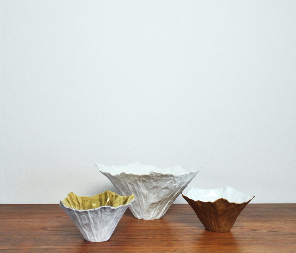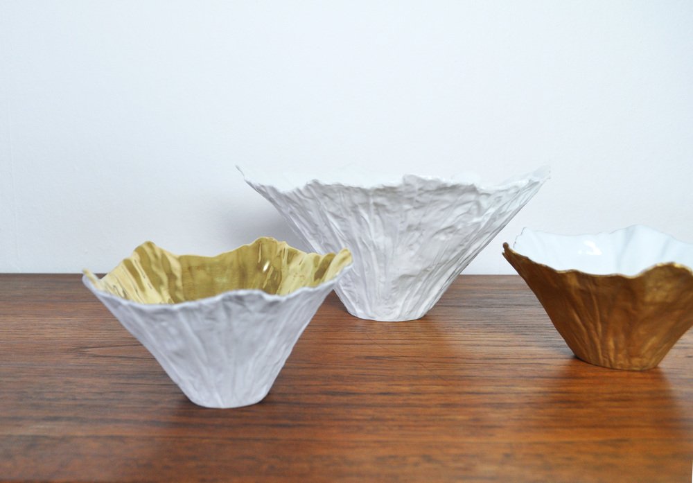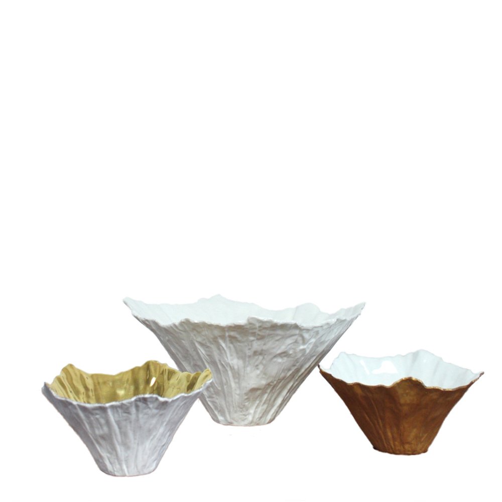 Scodelle dorate in porcellana bianca di Violase Lunn per Royal Copenhagen, set di 3