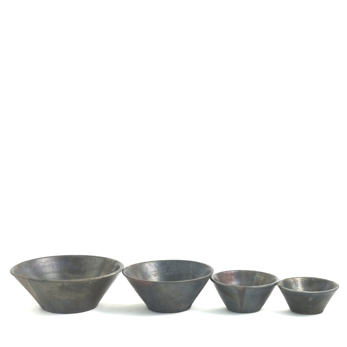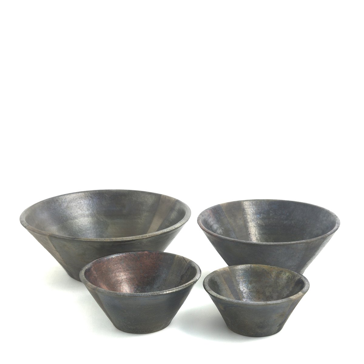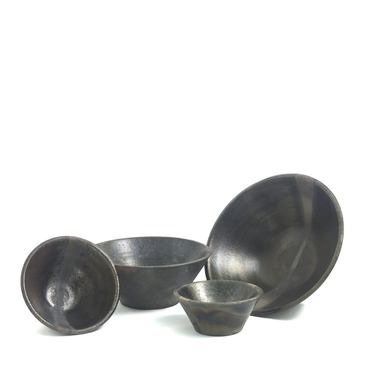 Scodelle Raku minimaliste in metallo nero e ceramica di Laab Milano, set di 4