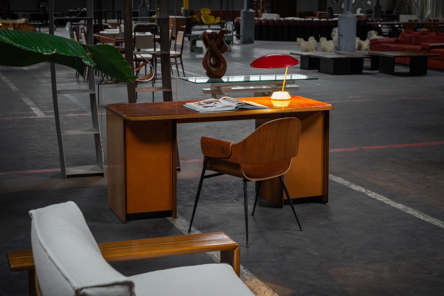 Bellissimo scrittoio modello 7737 della serie Artona, disegnato da Afra e Tobia Scarpa e prodotto da Maxalto in Italia nel 1975. Il piano è impiallacciato in radica e presenta un motivo ipnotico. Il fondo presenta scomparti impiallacciati in noce con ante rivestite in pelle e maniglie ad anello in pelle. I bordi presentano la tipica firma Artona con linee scure nel legno, leggermente angolate. Il caldo colore arancione/marrone del piano si abbina alla pelle marrone cognac e al legno di noce. La scrivania presenta un sottile cassetto al centro e uno spazio di archiviazione su entrambi i lati, con due ripiani a sinistra e uno a destra dietro le ante rivestite in pelle. Questa scrivania combina estetica e praticità, rendendola perfetta per lavorare con stile. Scrivania dal design molto curato e di qualità, in ottime condizioni originali. La sedia nelle foto non è inclusa ma può essere acquistata qui. La linea "Artona", realizzata dal duo Scarpa, ha un significato storico in quanto ha segnato l'inizio di Maxalto, un ramo specializzato di B&B Italia. Maxalto, fondata nel 1975, si dedicava alla produzione di mobili artigianali, prevalentemente in legno. La serie "Artona" è stato il loro primo progetto per Maxalto ed è servito anche come contrappunto alla tendenza prevalente di utilizzare la plastica nel design dei mobili durante il dopoguerra. Afra e Tobia Scarpa sono architetti e designer italiani postmoderni pluripremiati. Le loro opere si trovano in musei di tutti gli Stati Uniti e d'Europa, tra cui le collezioni del MoMa e del Museo del Louvre. Hanno collaborato con aziende come B&B Italia, San Lorenzo Silver, Molteni e Knoll International. Hanno vinto numerosi premi, come il Compasso d'Oro nel 1969 e l'International Forum Design nel 1992. Il loro lavoro di design consiste nell'architettura e negli oggetti di uso quotidiano, tra cui mobili, abbigliamento, design d'interni e vetro artistico. Nei loro progetti si sono concentrati sulle possibilità tecniche ed estetiche dei materiali. La coppia è stata fortemente influenzata dal padre di Tobia, Carlo Scarpa, architetto e designer veneziano. Per saperne di più..