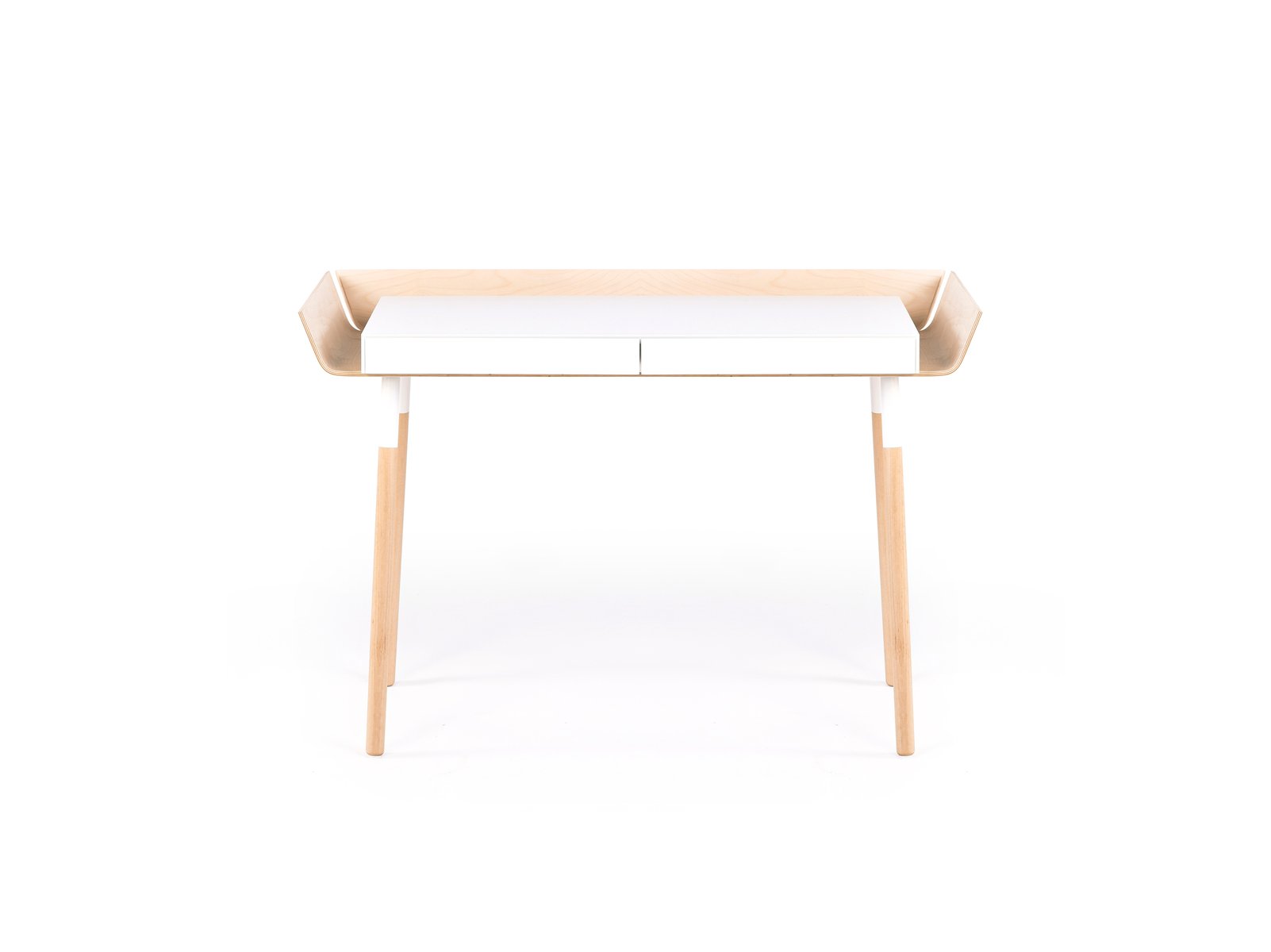 While developing the idea of the My Writing Desk (MWD), designer Inesa Malafej had a clear goal – to reduce the chaotic clutter that creative work brings to the table. The result is a desk which has its storage space organized around the table-top, where the objects are always in sight and easily accessible. This enlarges the desktop beyond its edges without the worry that things might fall down. Furthermore, any unnecessary objects can simply be pushed to the sides, for storage. The high edges of the desk isolate it in the room and create a positive microclimate where things 'feel good' in relation to the user. The wings are divided, leaving space for the electrical wires. MWD features two drawers, to store a laptop and other working tools. The legs of the table can be twisted off for easier transportation. For smaller, cozier spaces, a one drawer version was created. MWD is Inesa’s graduation project from the Vilnius Academy of Arts.