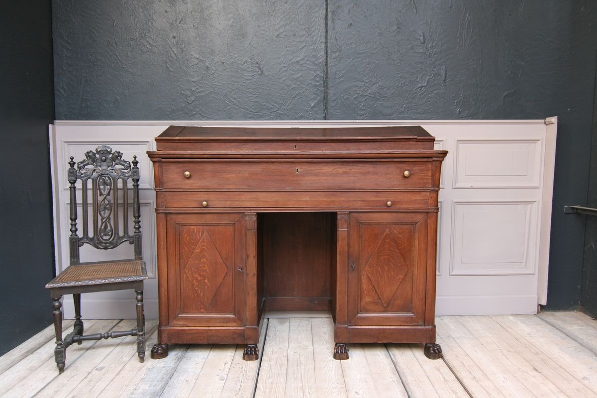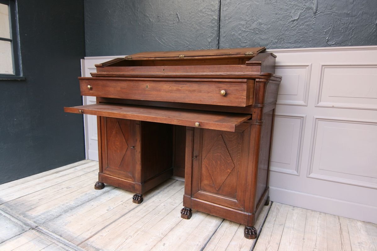 Scrivania notarile originale o mobile da scrittura del 19° secolo. Belga. Solidamente realizzato in quercia.