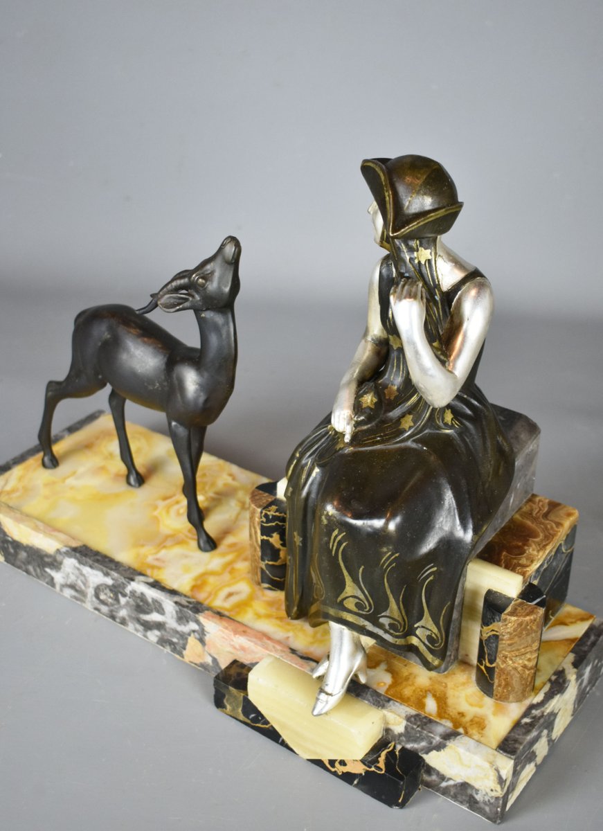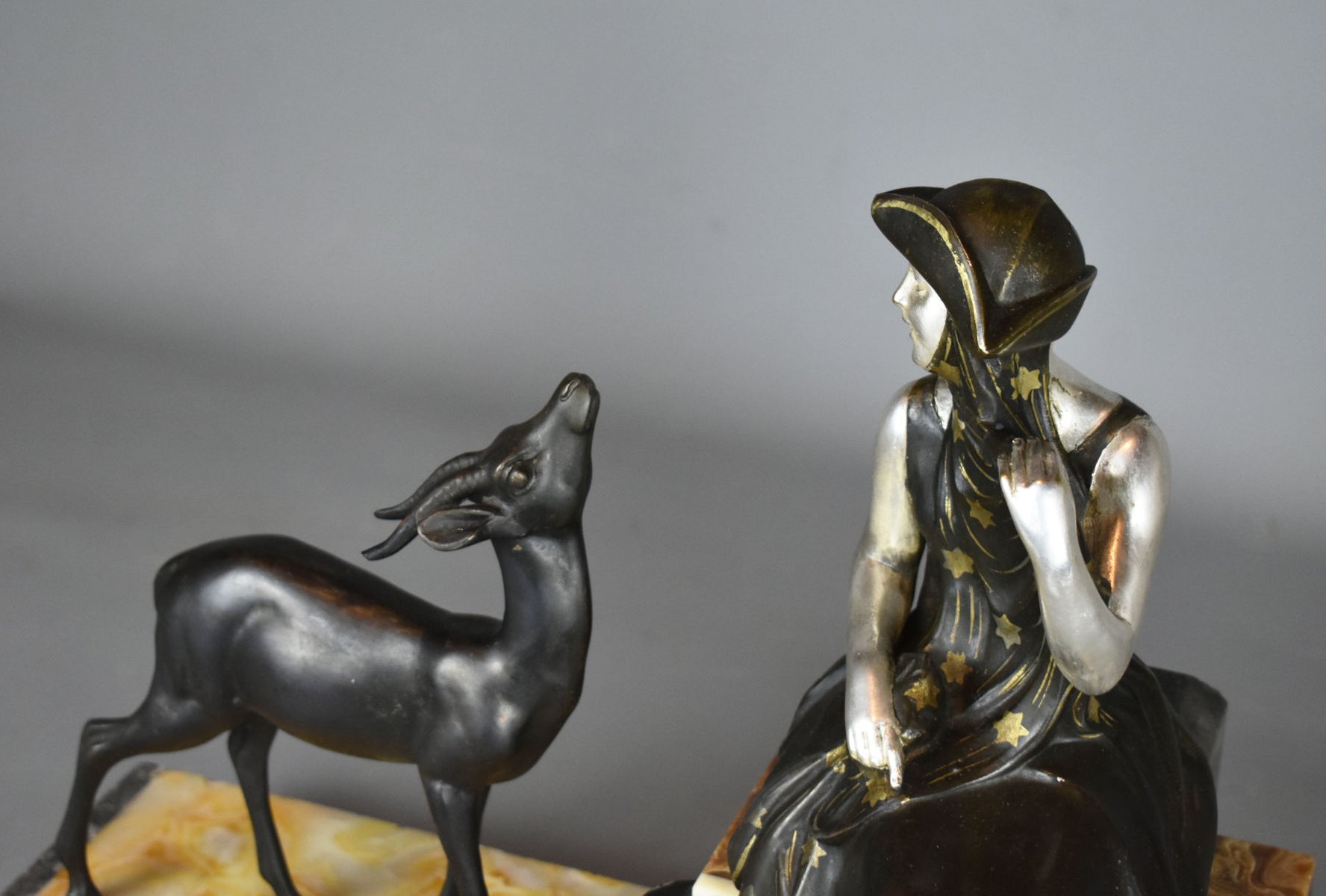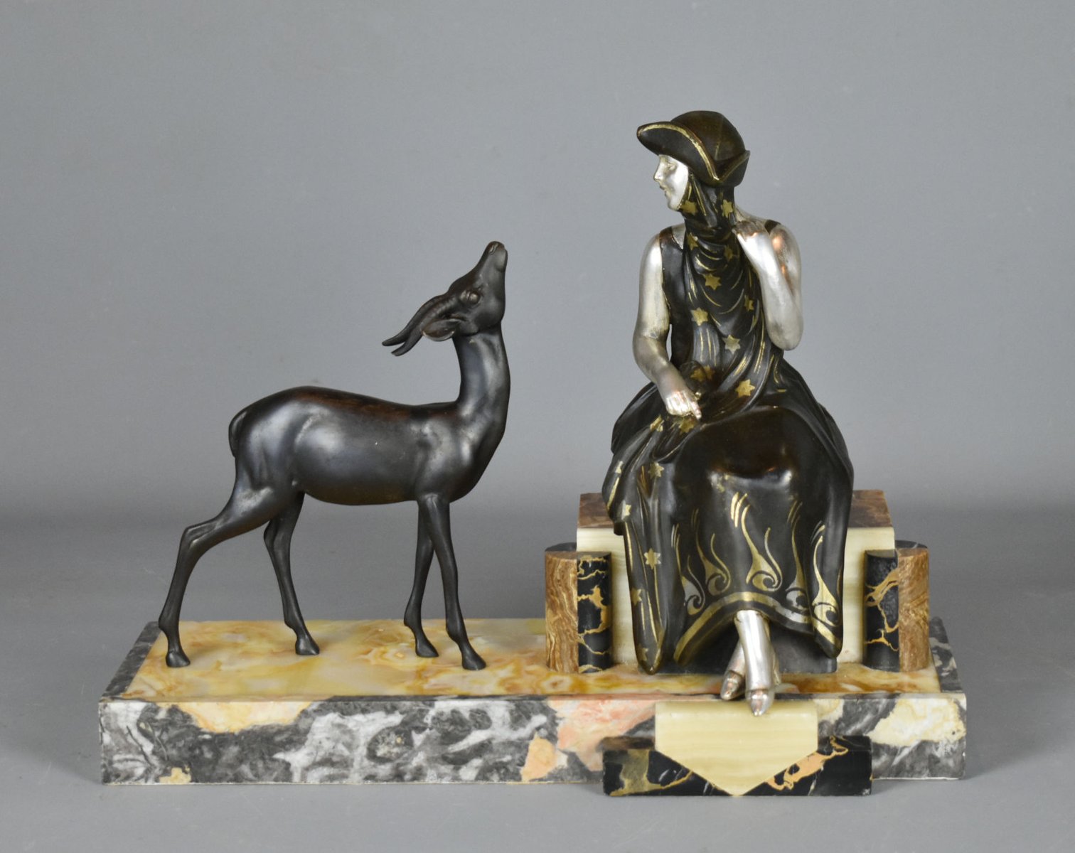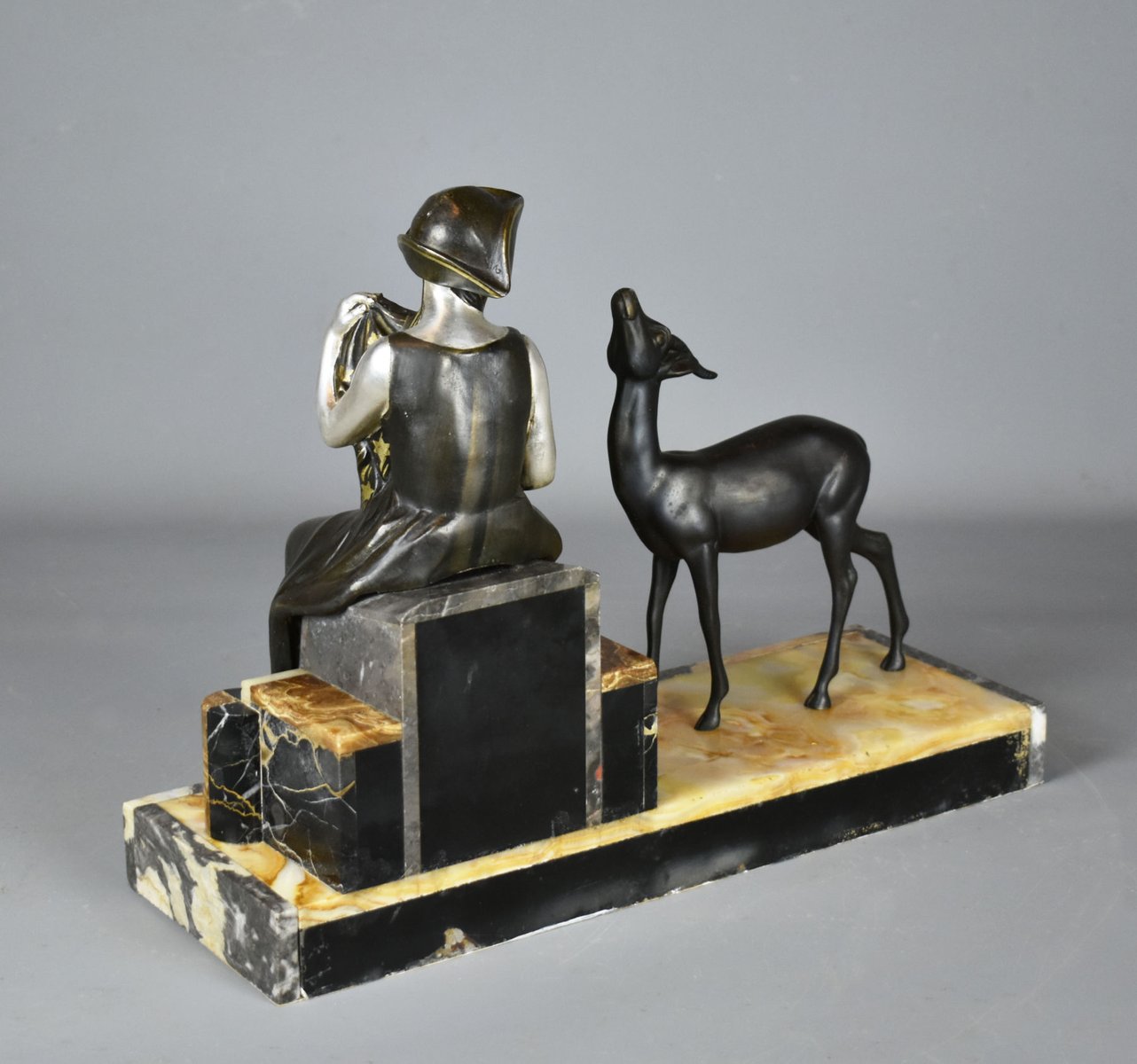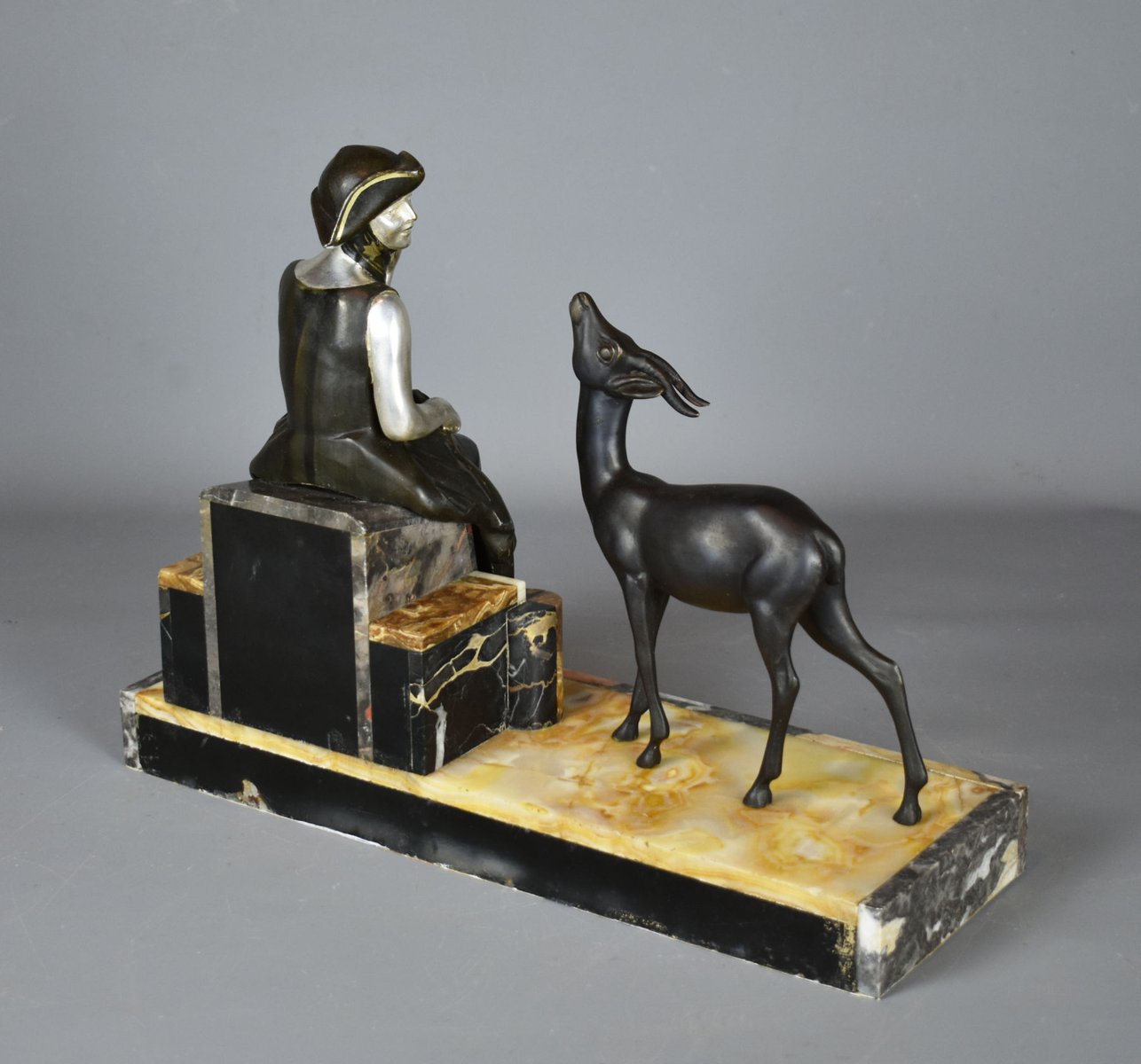 Scultura Art Déco di Dama e Gazzella, Francia, anni '30