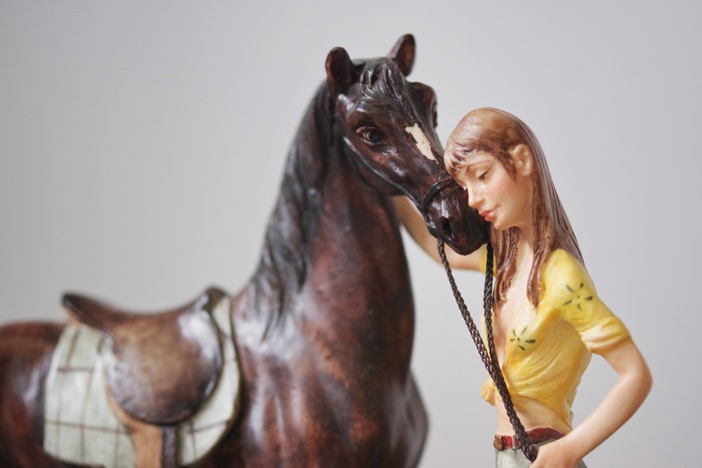 Fine Detailing: Meticulously detailed ceramic work, showcasing the intricate anatomy of the horse and the gentle expression of the woman.