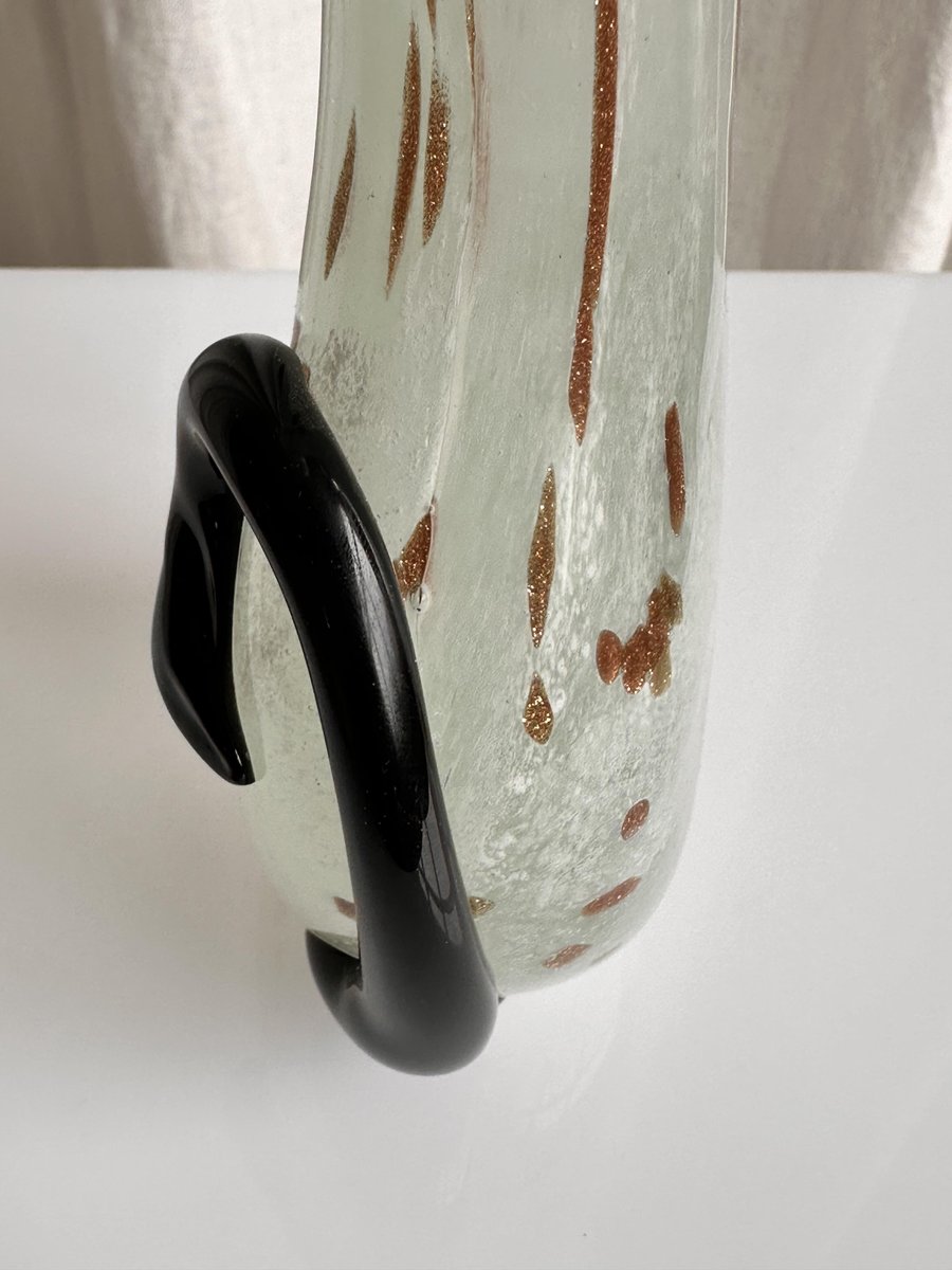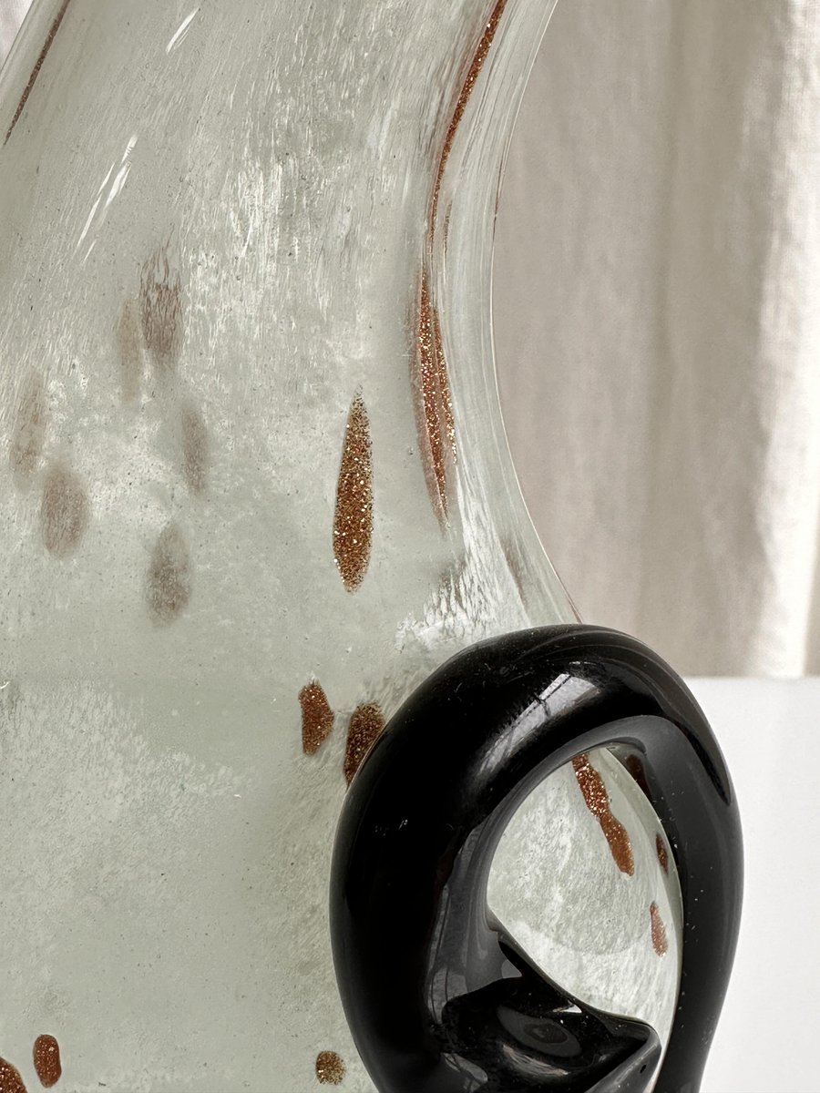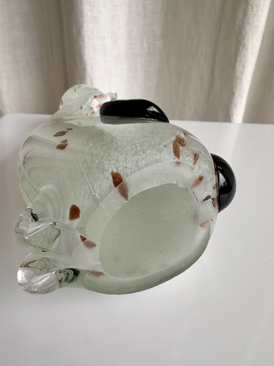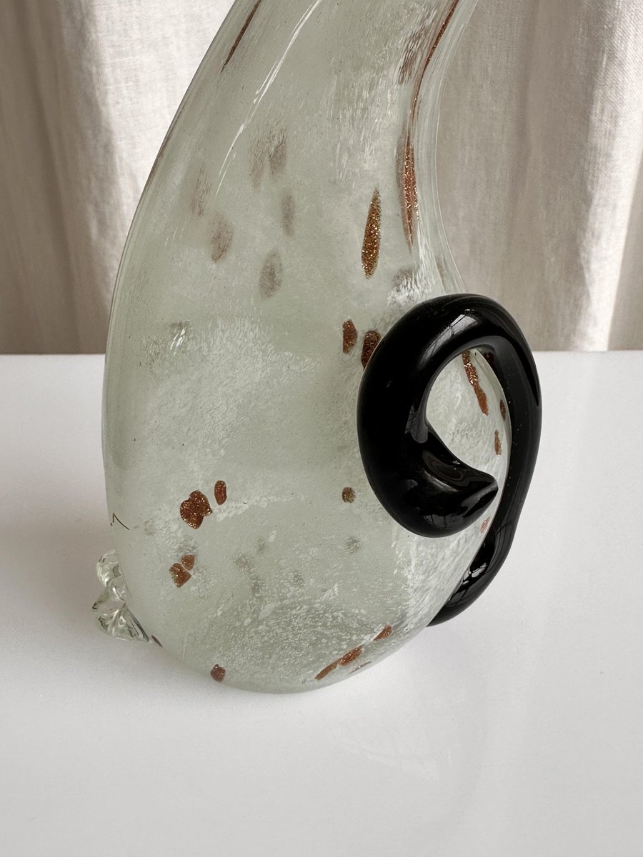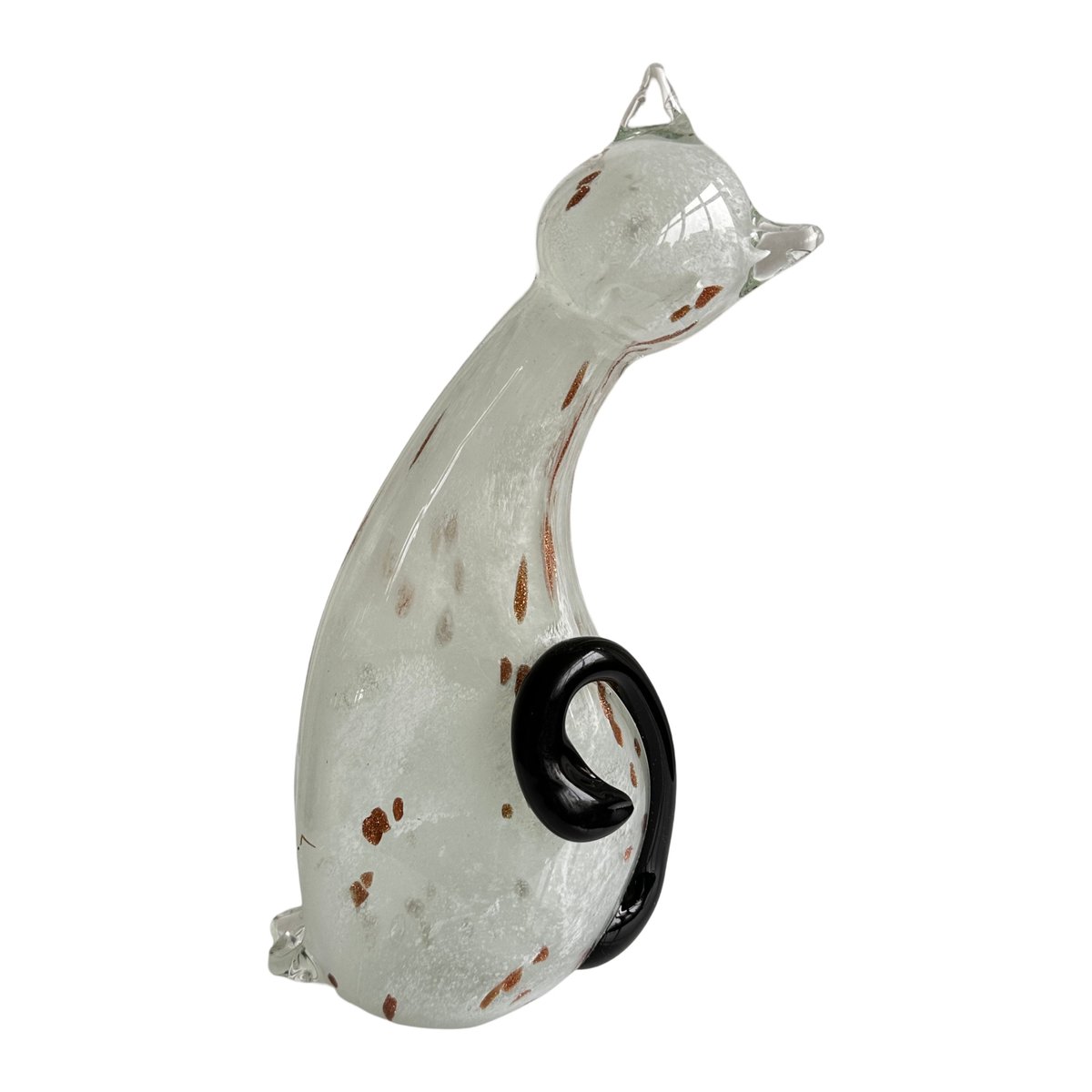 Graziosa statuetta di gatto in vetro di Murano di colore bianco avorio con rosette dorate. Graziosa figura, splendido colore avorio traslucido del gattino in vetro. Le rosette dorate aggiungono un tocco di eleganza, che corrisponde alla natura di un gatto reale. È il pezzo perfetto per ornare la credenza, la mensola o il tavolo, e non solo per gli appassionati di vetro di Murano! Non importa se siete amanti dei gatti o dei cani, questa bellezza diventerà sicuramente un elemento divertente ed esteticamente piacevole nella vostra casa.