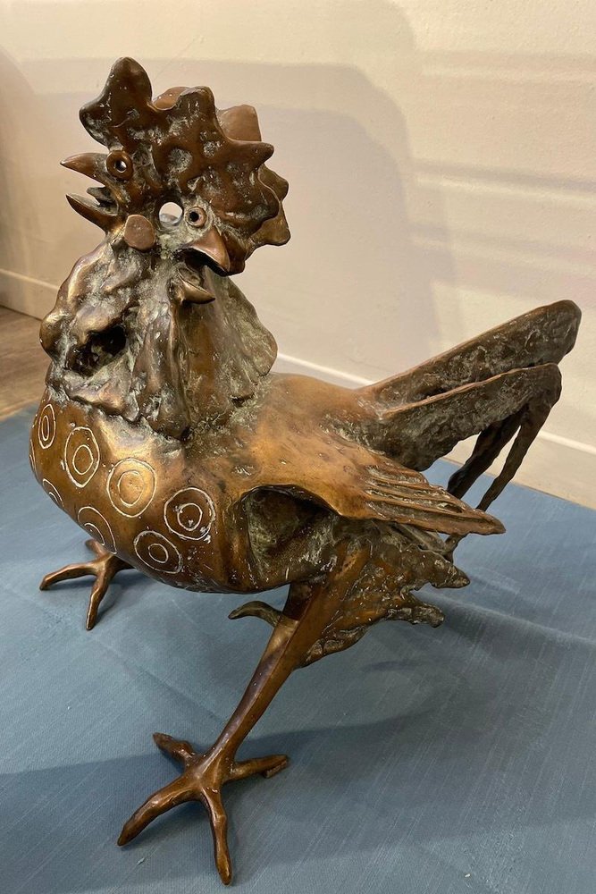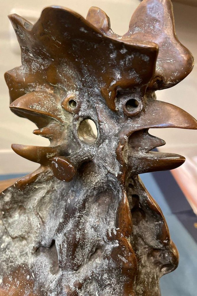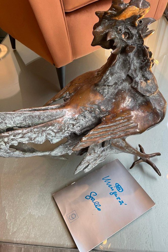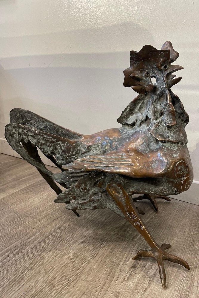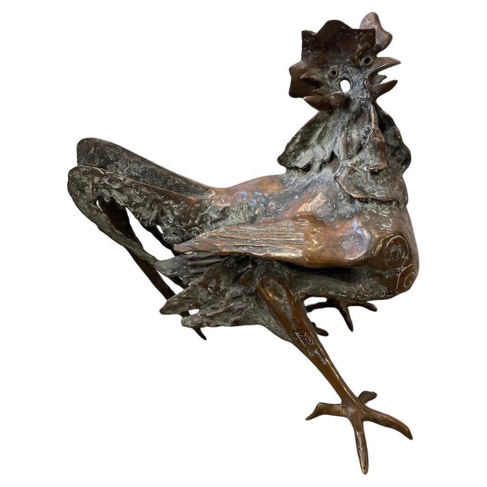Scultura Gallo Gallo in bronzo fuso a cera persa attribuita a Luciano Minguzzi, anni '70