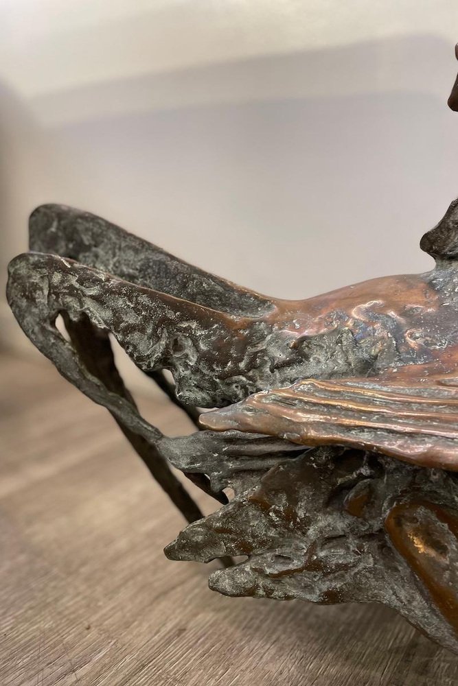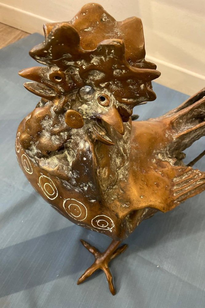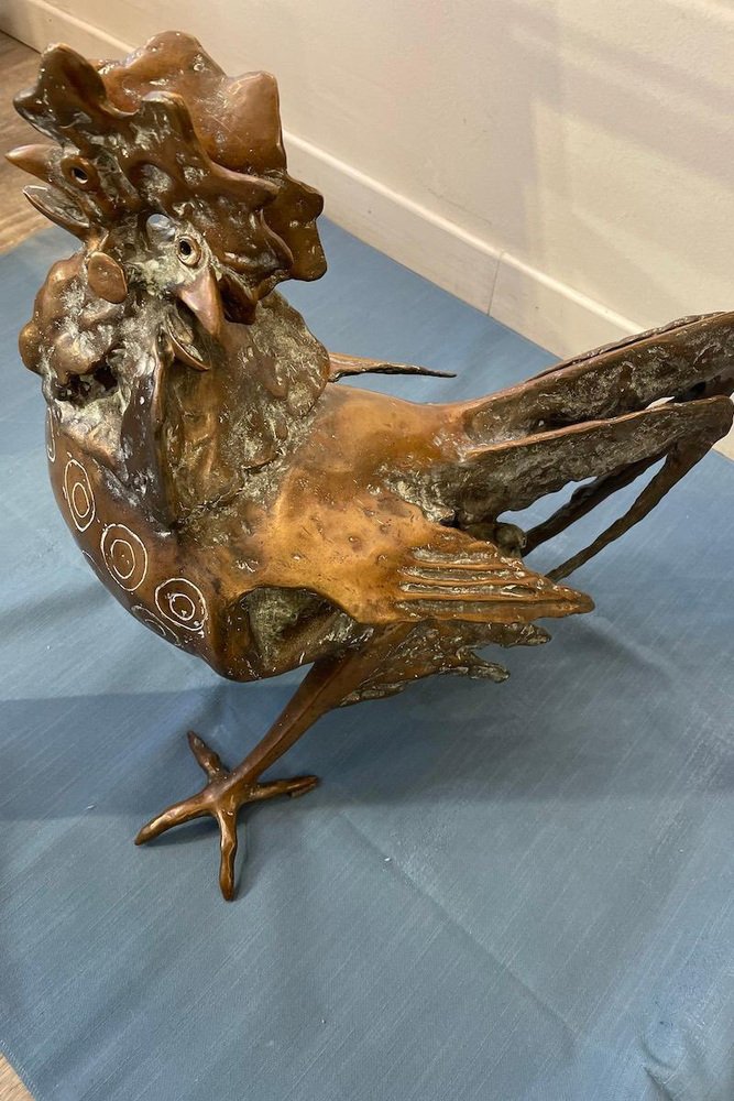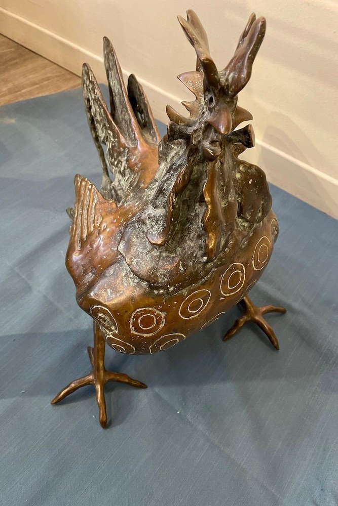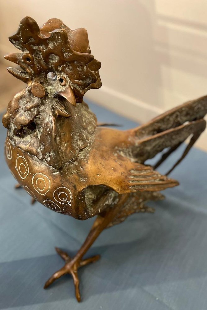 Scultura Gallo Gallo in bronzo fuso a cera persa attribuita a Luciano Minguzzi, anni '70