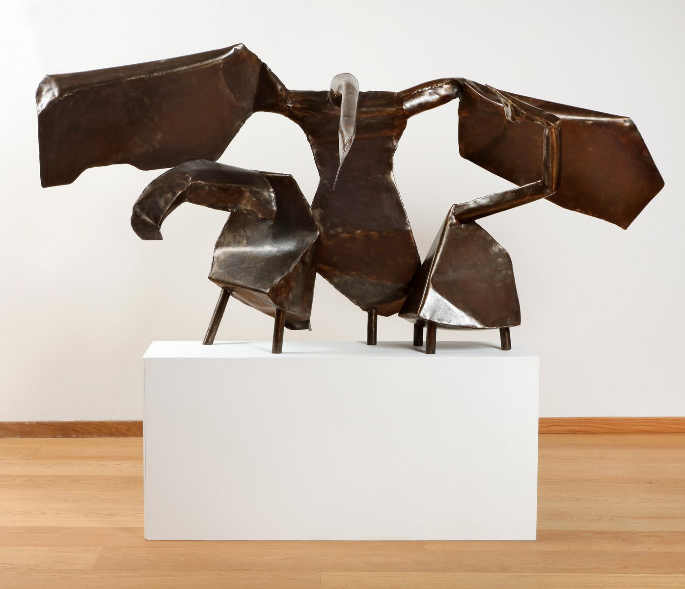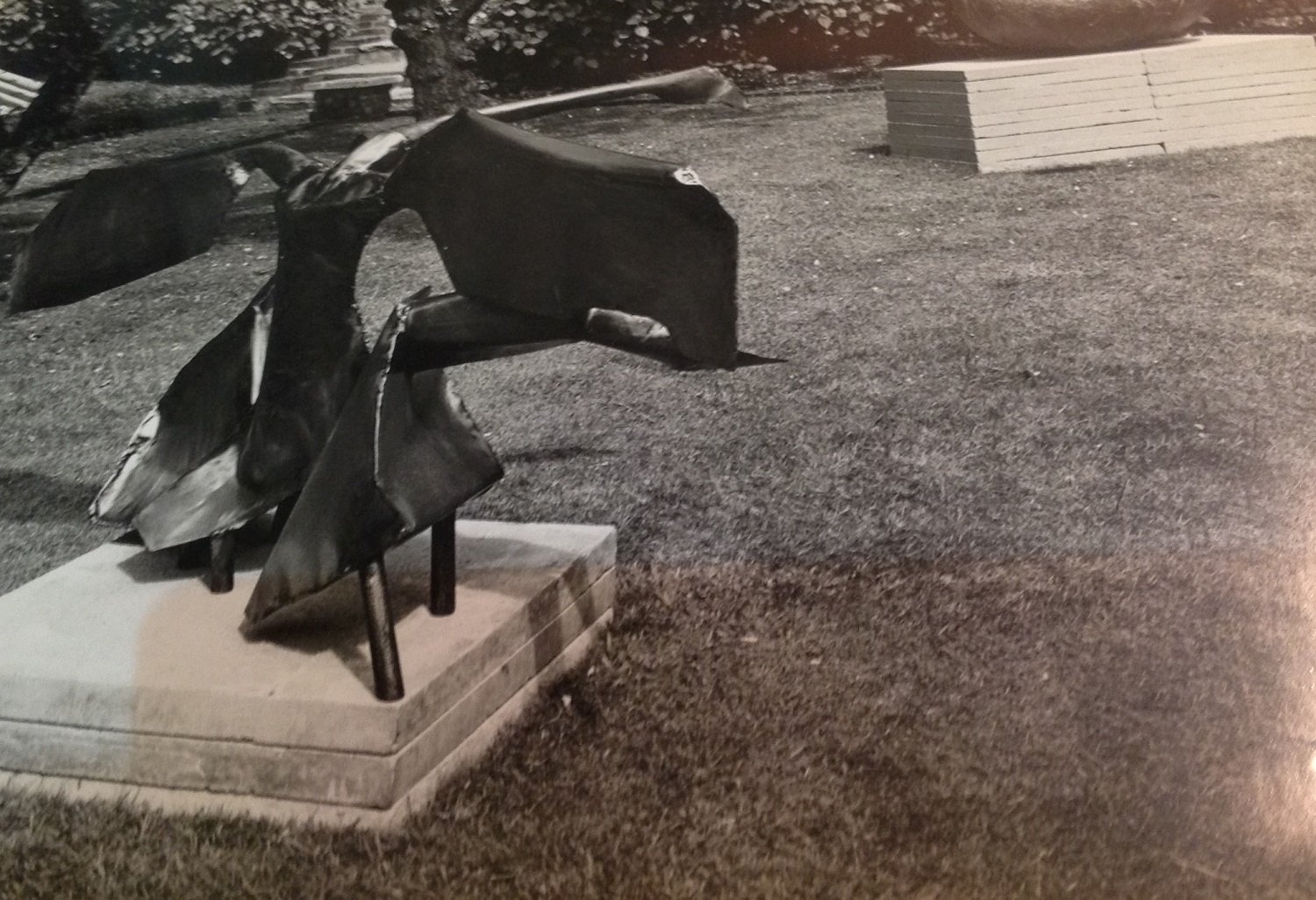 Scultura grande con tre cigni in ferro di Joan Augusta Munro Moore, anni '70