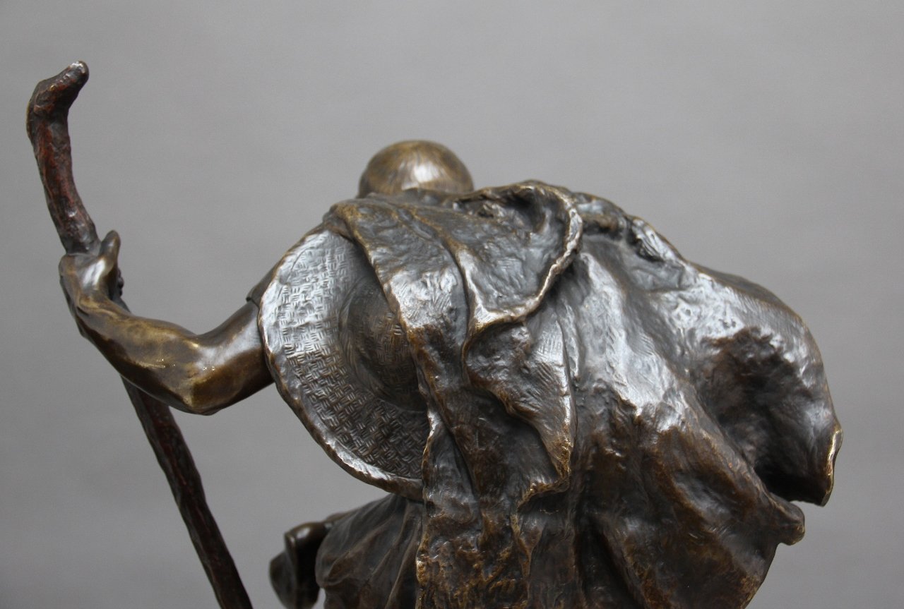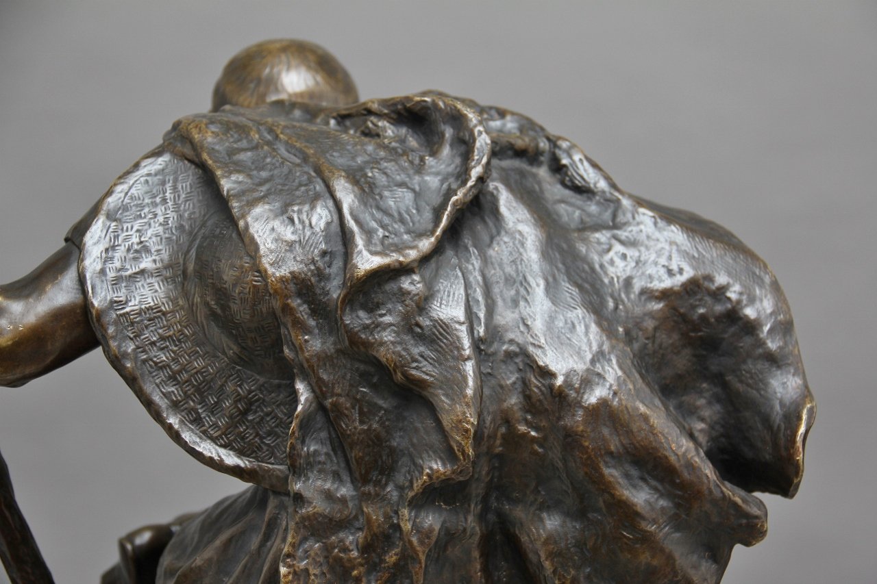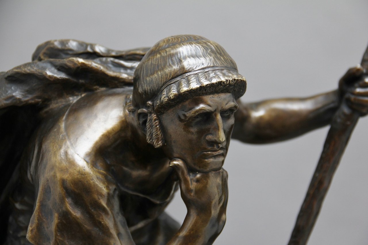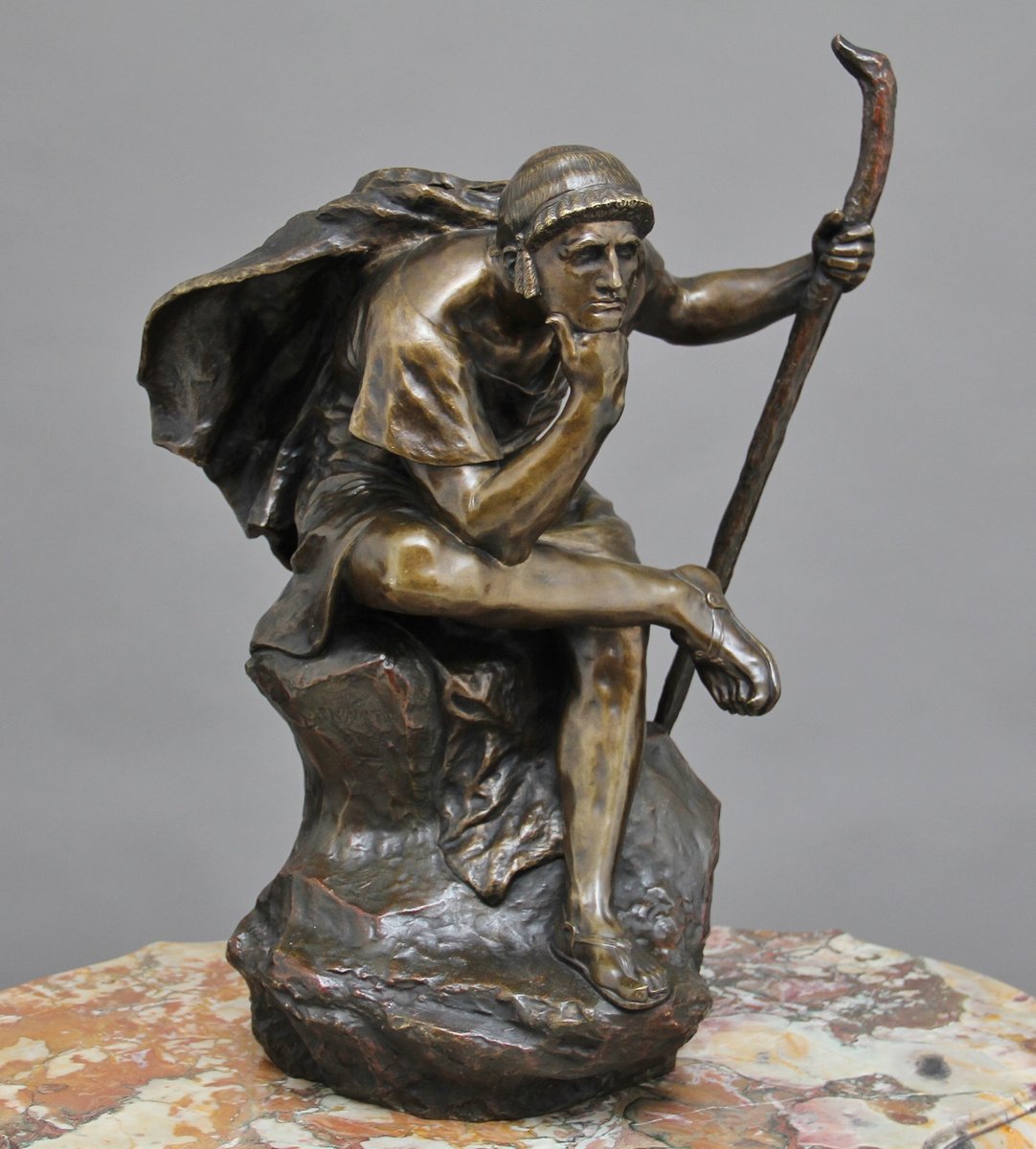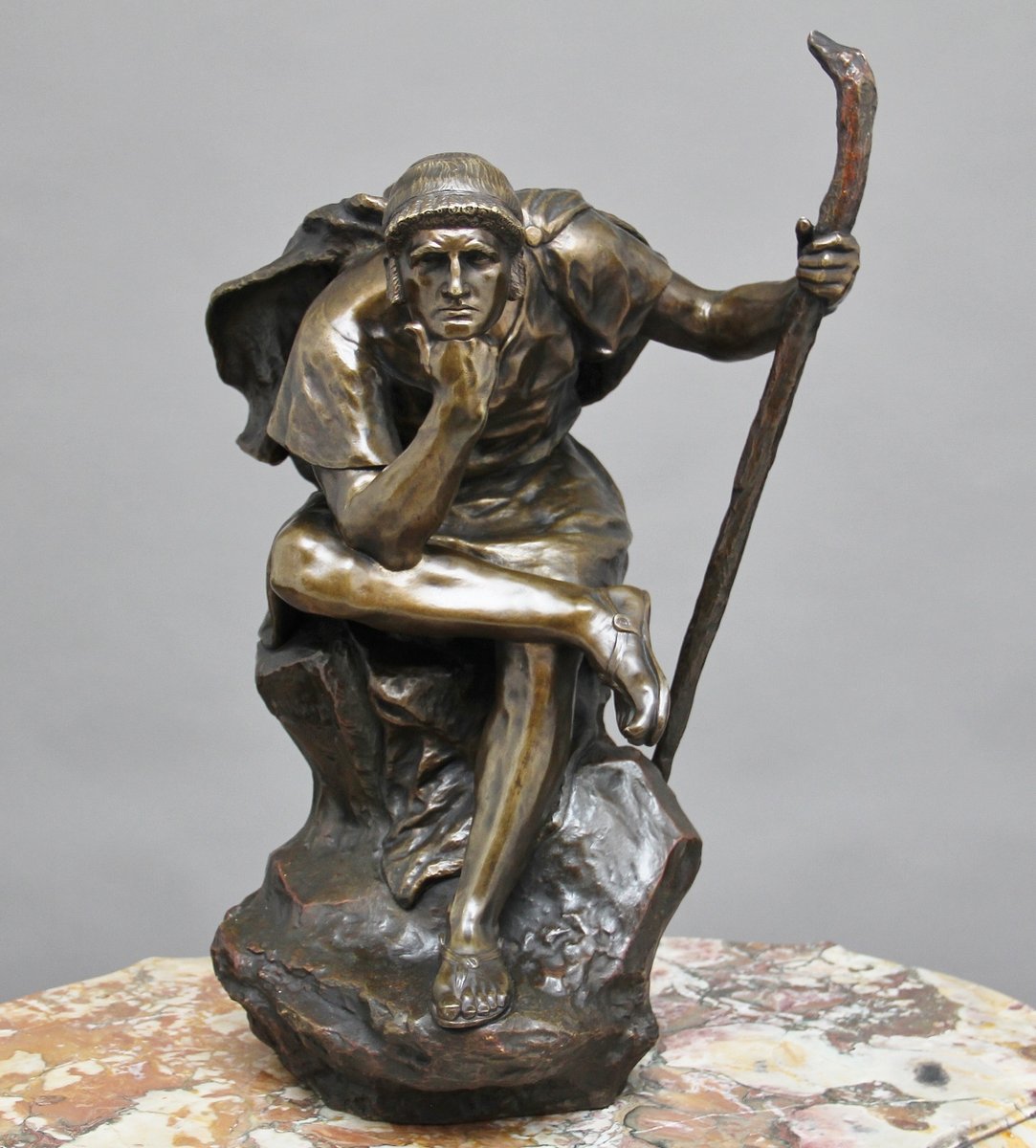 Scultura grande in bronzo di Edipo meditating di Henri Daniel Contenot, XIX secolo