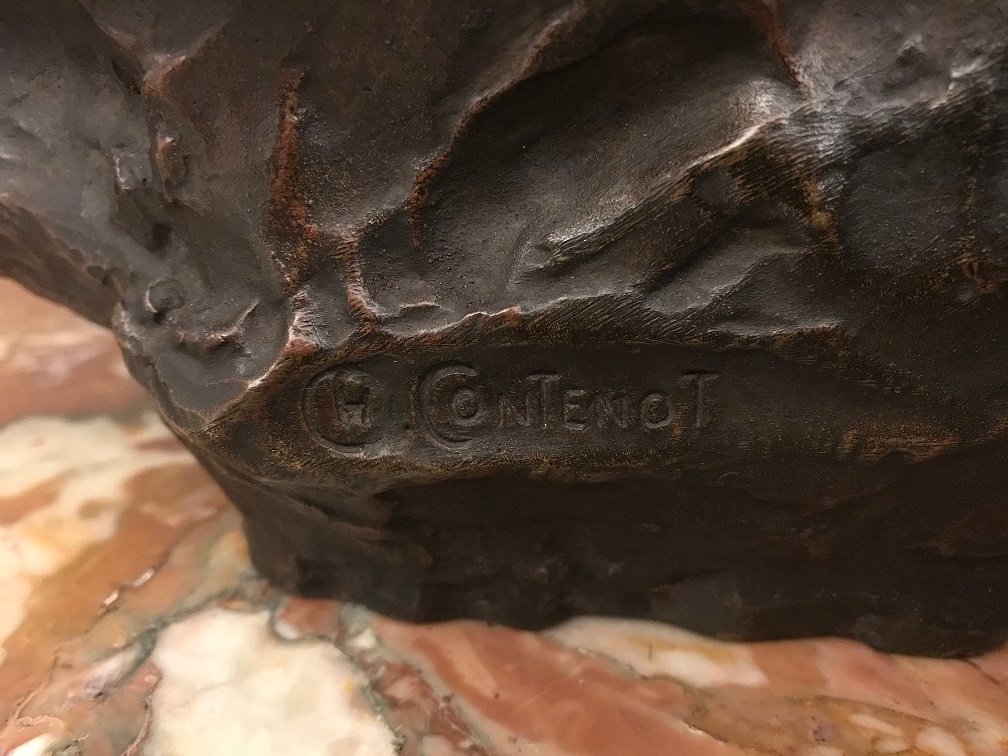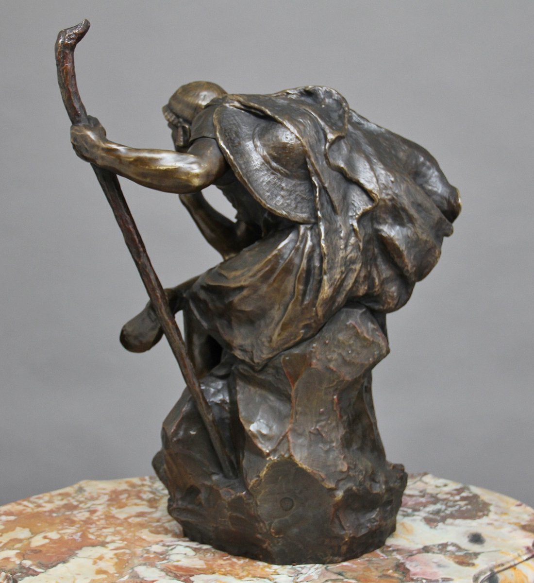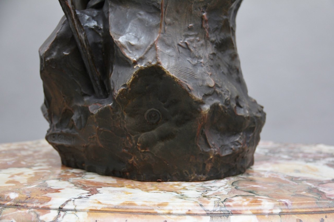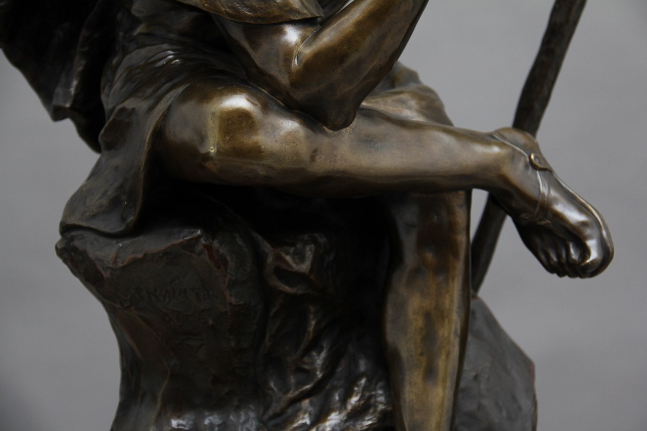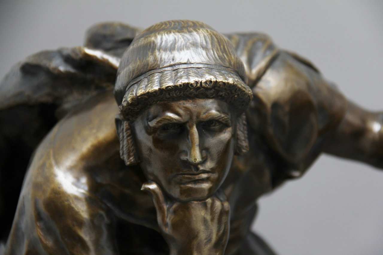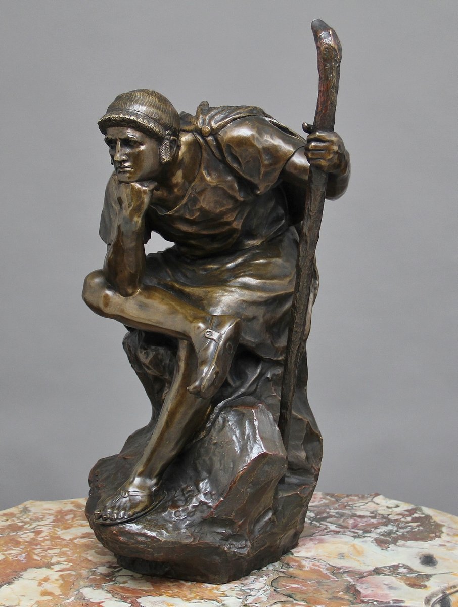 Scultura grande in bronzo di Edipo meditating di Henri Daniel Contenot, XIX secolo
