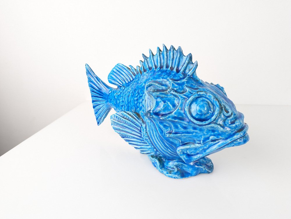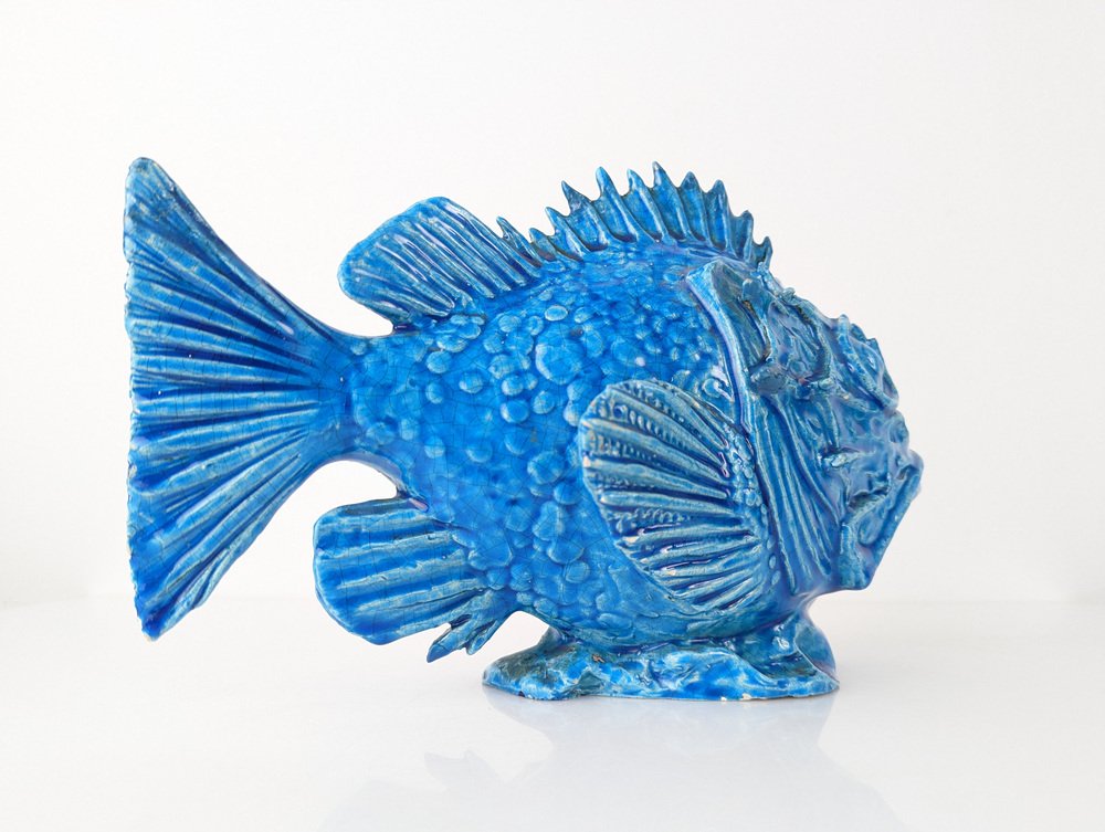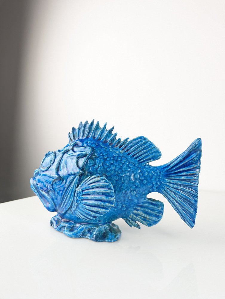 Scultura Pesce Scorfano in smalto blu di Guido Cacciapuoti, Italia, anni '30