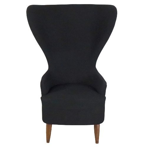 Spettacolare poltrona, con ampio schienale, nello stile di Tom Dixon. Sebbene non sia marcato, il design di questa poltrona molto speciale è molto vicino ai noti esemplari del top designer Tom Dixon. È quindi molto probabile che ci troviamo di fronte a una copia originale di questo classico del design contemporaneo! La poltrona Wingback di Tom Dixon si ispira ai tradizionali mobili a palloncino del XVII secolo dei club inglesi. Tra sei diversi prototipi, la Wingback è risultata vincente ed è stata lanciata nel 2007. Nel 2015, la sedia è stata modificata per garantire ulteriormente il suo sublime comfort e per migliorare la sua silhouette particolarmente appariscente. L'esemplare in offerta è stato presumibilmente realizzato dopo il primo progetto. Le ali della poltrona offrono una piacevole protezione acustica e una certa forma di sicurezza che permette di isolarsi dal mondo esterno per un po'. Il tessuto nero è molto morbido e ancora molto pulito; le tracce dell'uso si esprimono in alcuni segni d'impatto sulle gambe anteriori, causati dalle pulizie dell'hotel in cui questa poltrona è rimasta per la prima parte della sua vita. Un vero classico del design moderno e una poltrona per chi ha il coraggio di scegliere qualcosa di diverso!